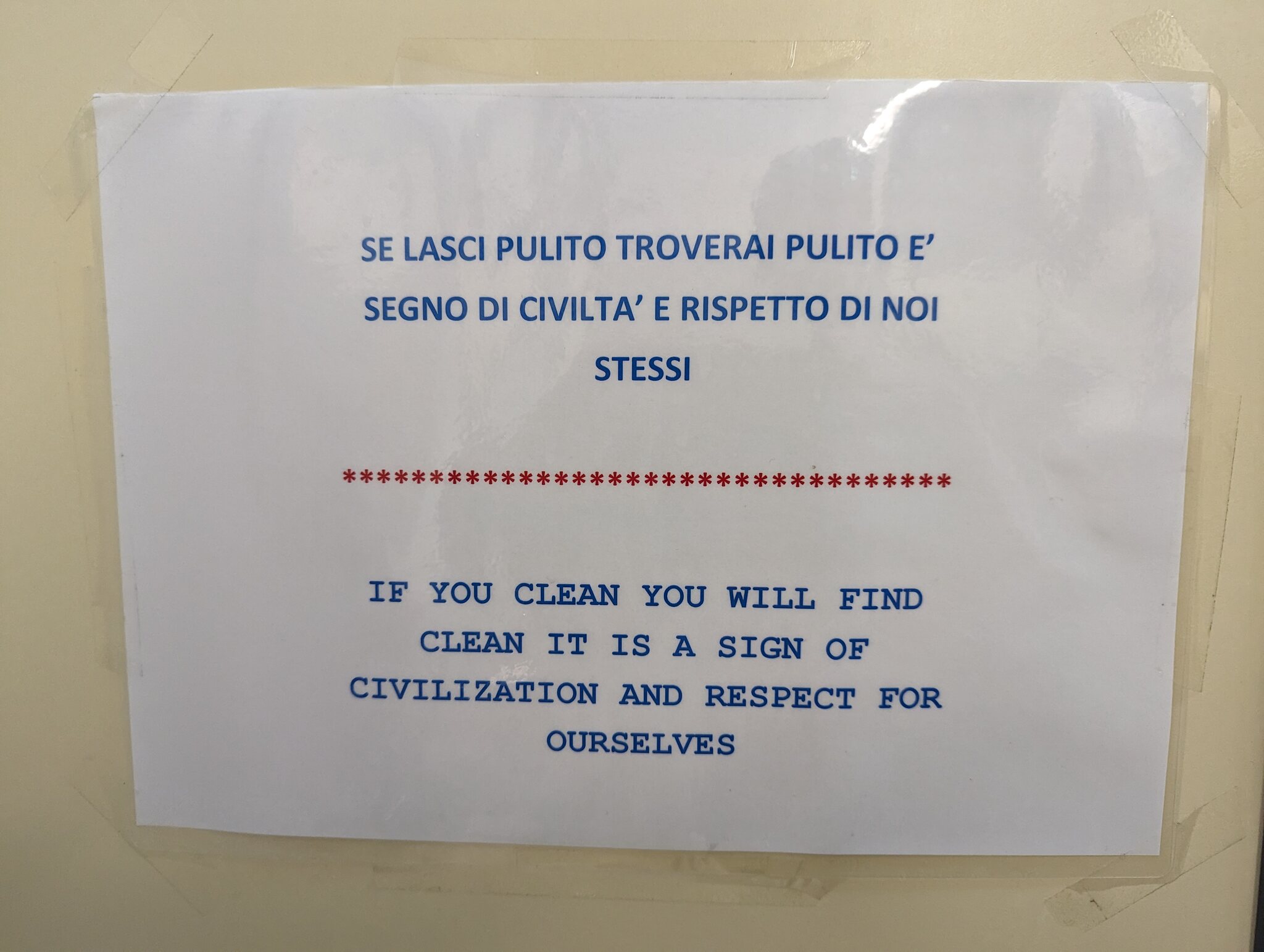 Btw, ich sollte noch mal mein "clean" Rätsel auflösen. Das war in Valtournenche an der Bergstation der Zubringerbahn, vor dem WC. Auf Italienisch ist es nicht ganz so komisch:
