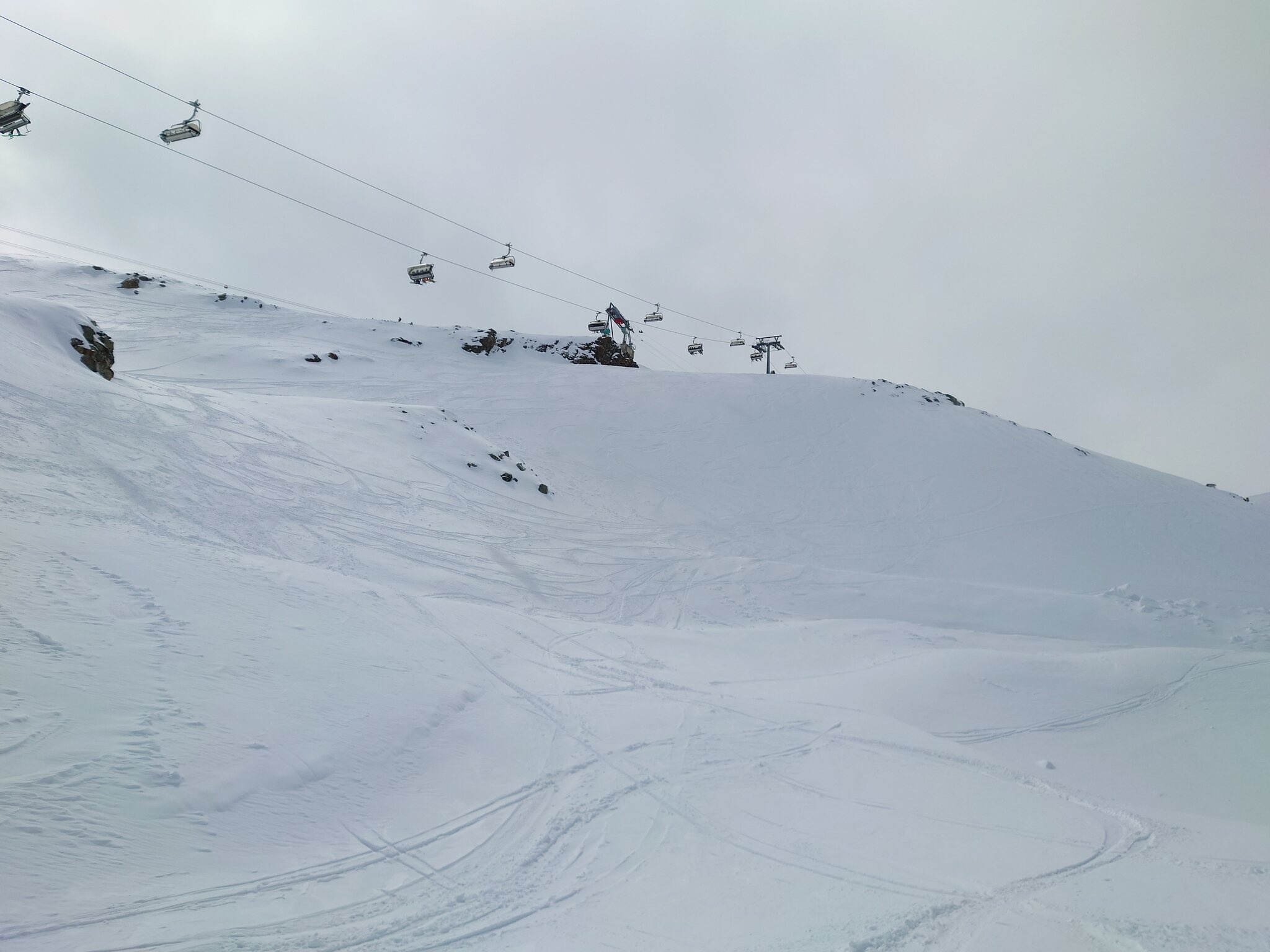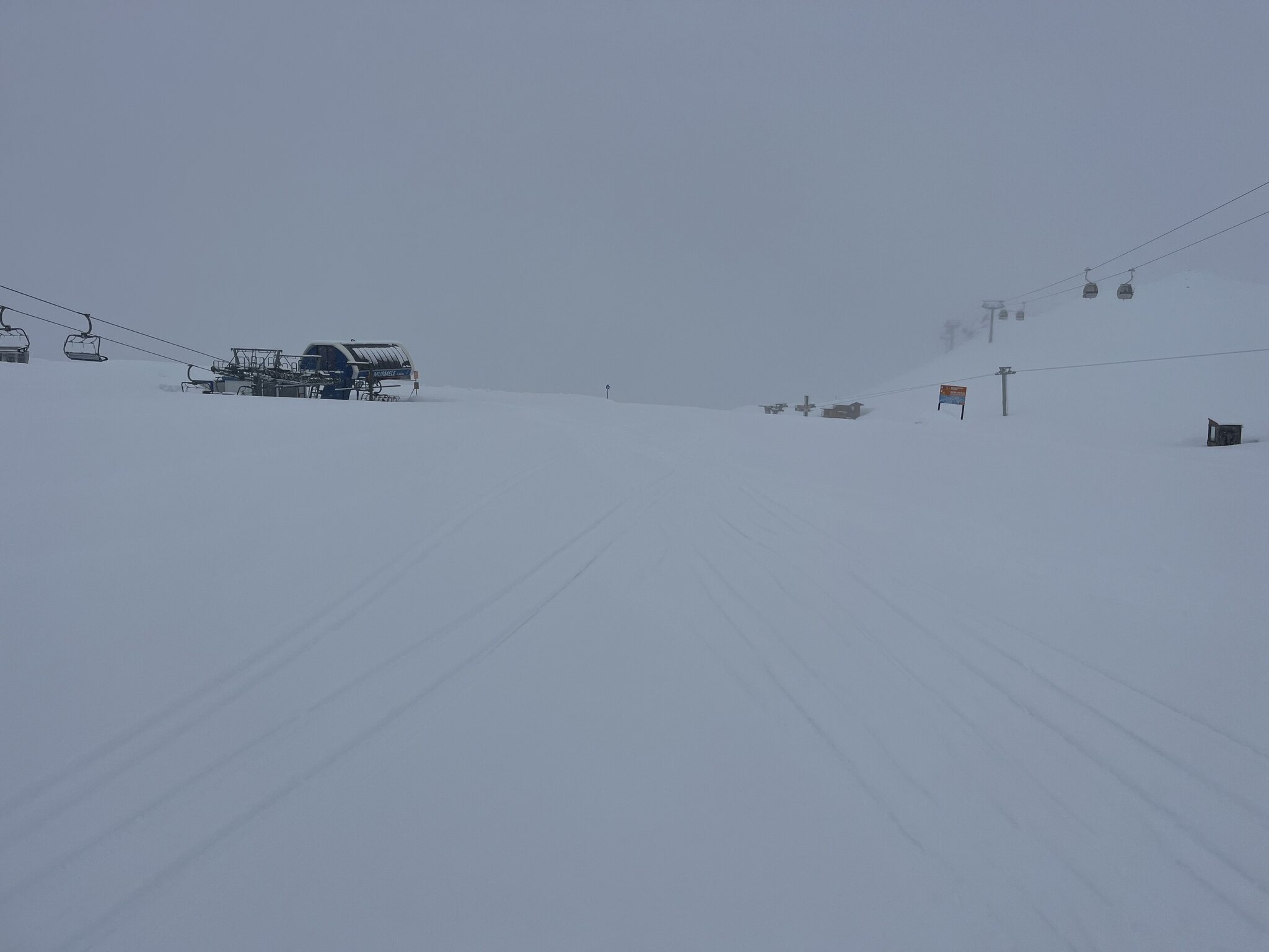 Heute Nachmittag waren die linker piste am Daunferner (noch mit Rillen) und die trasse der geschlossene SL noch schön zu fahren. Es war weinig los.