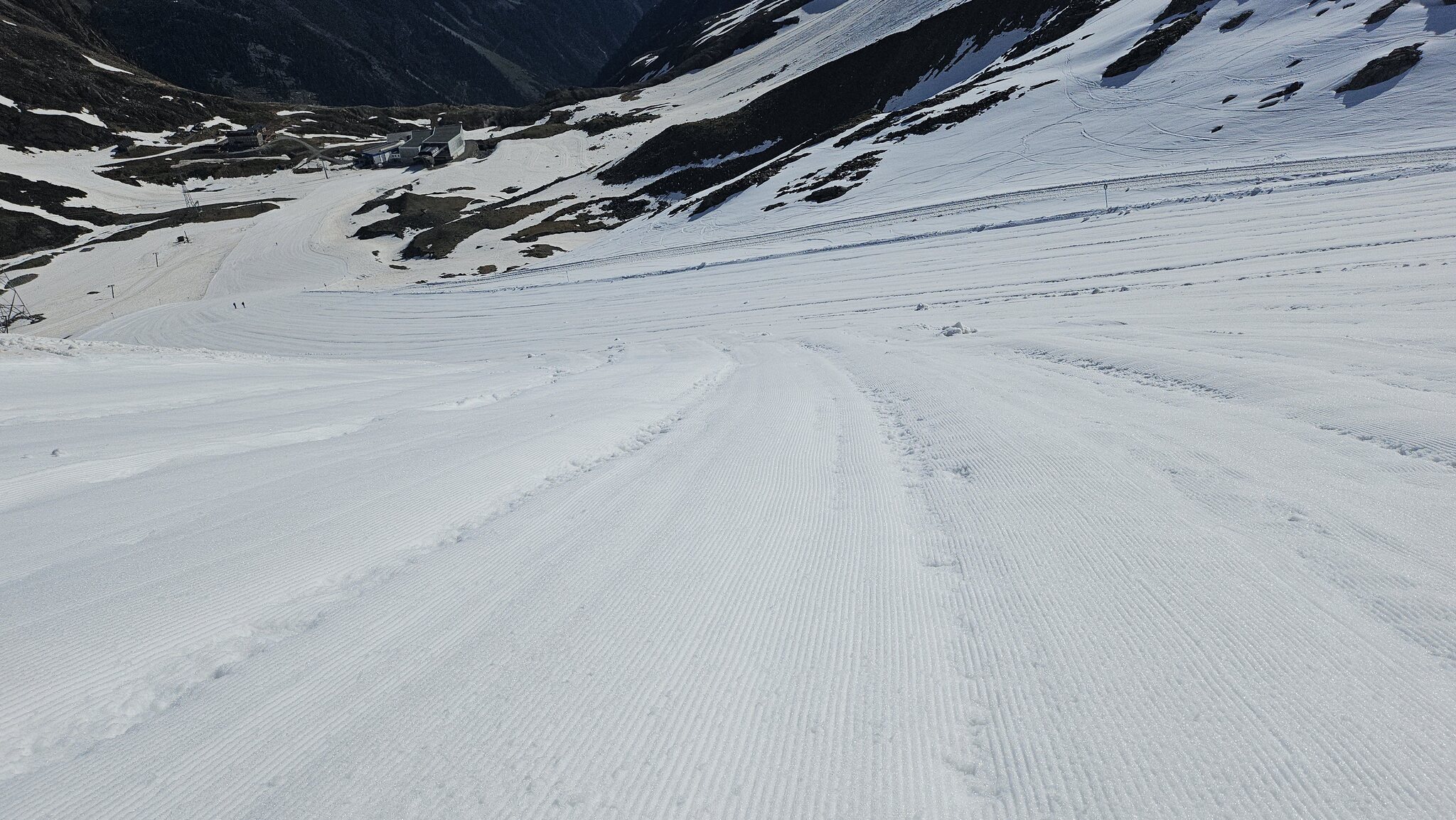 Mein Erstbesuch gleich ein Traumtag. Es liegt sehr viel Schnee. Pisten immer noch viele geöffnet bis Mittelstation. Alle sehr breit, die Flachen gut präpariert, die steileren temperaturbedingt vereinzelt mit übergänge und Löcher. Bis am Schluss wenig Haufenbildung. Kein Bremsschnee.