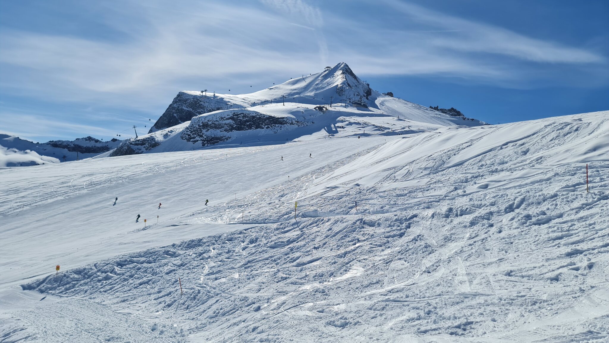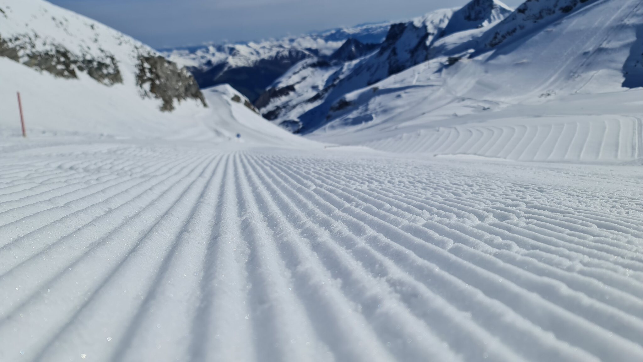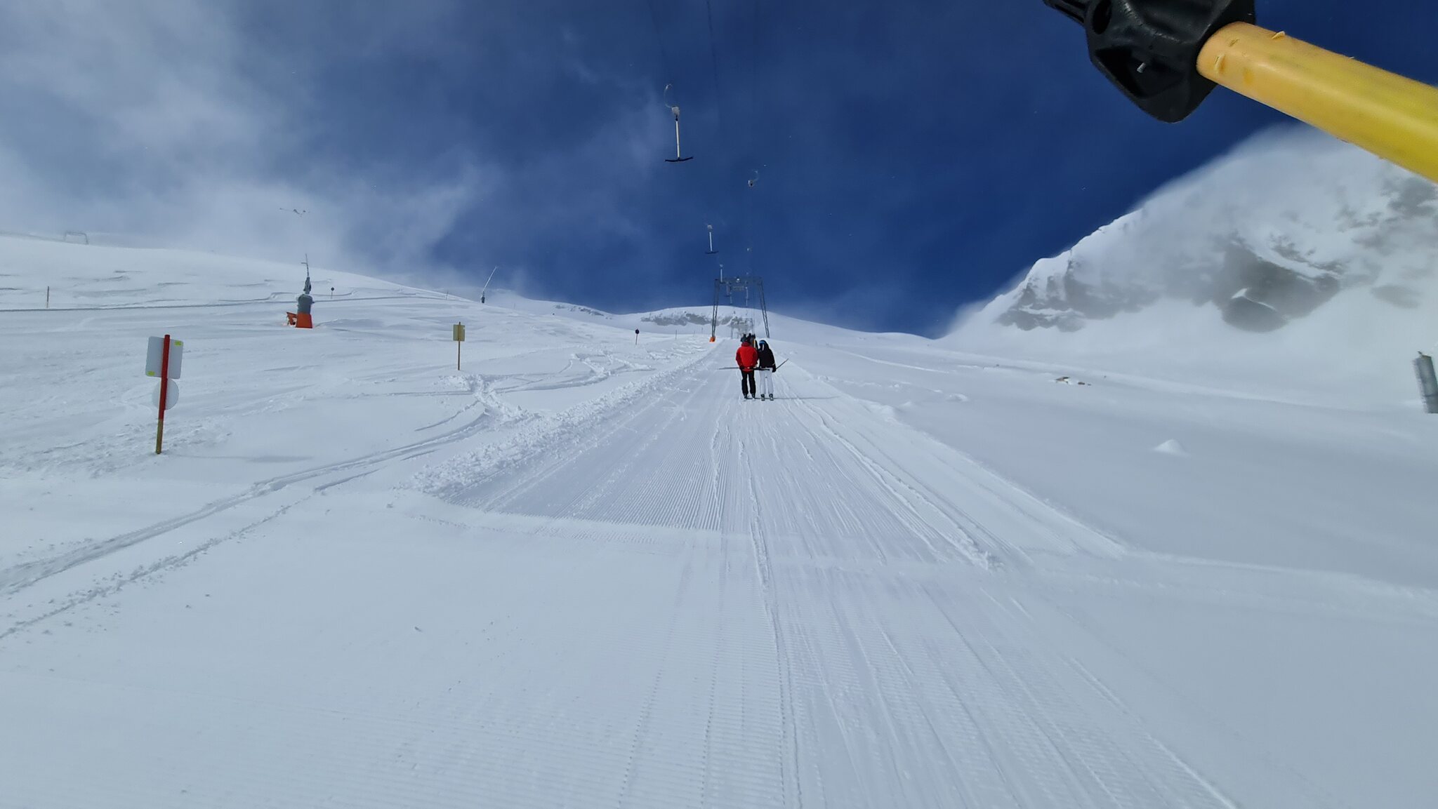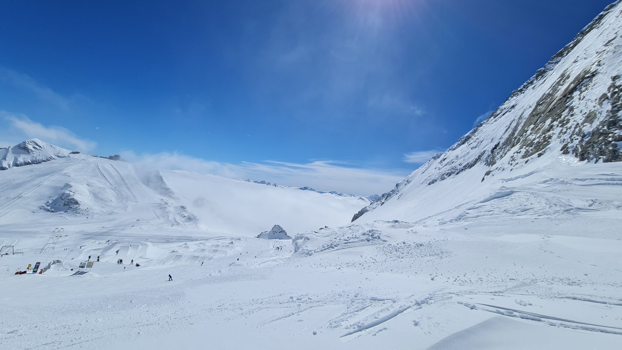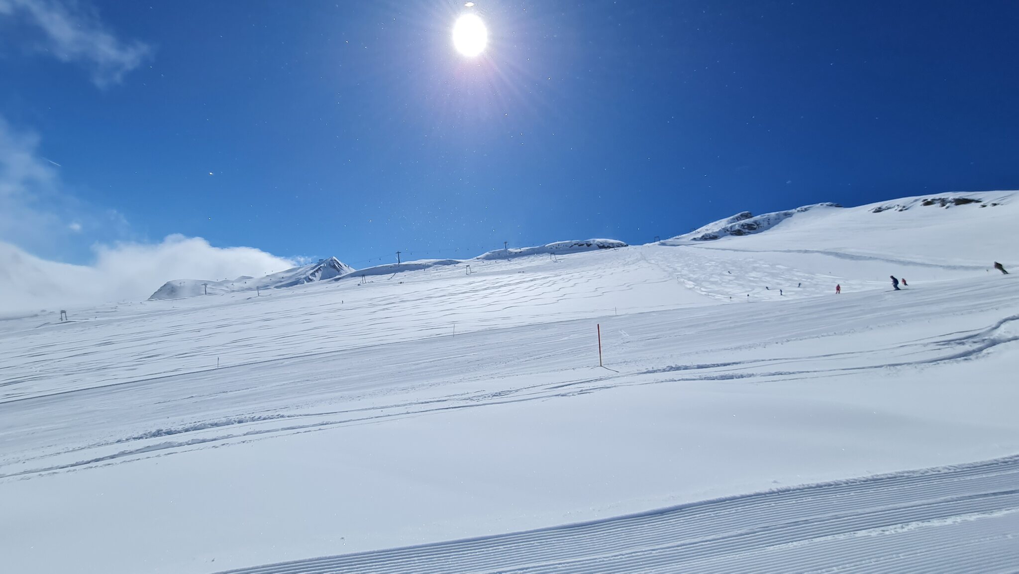 Bis zum Mittag waren die Pisten an der Gefrorenen Wand, Lärmstange 2 und Kaserer 2 alle sehr gut. Am Kaserer 2 hat auch jemand die Schikane an der Talstation weiter aufgemacht, die war gestern ziemlich nervig: