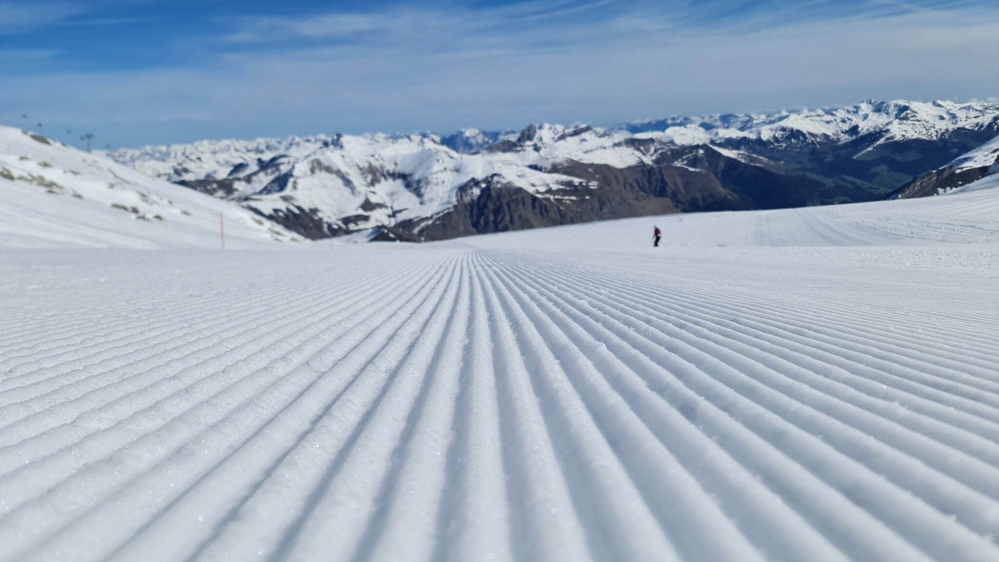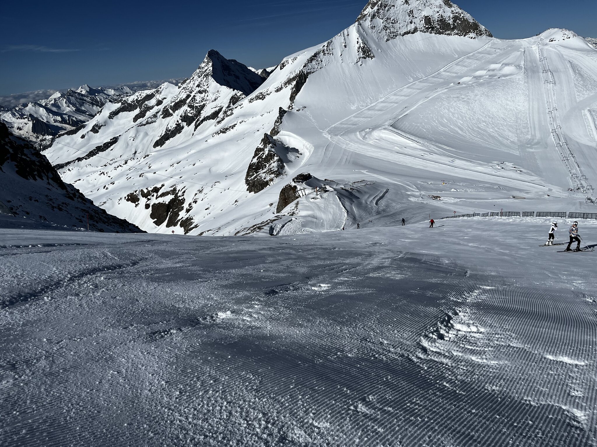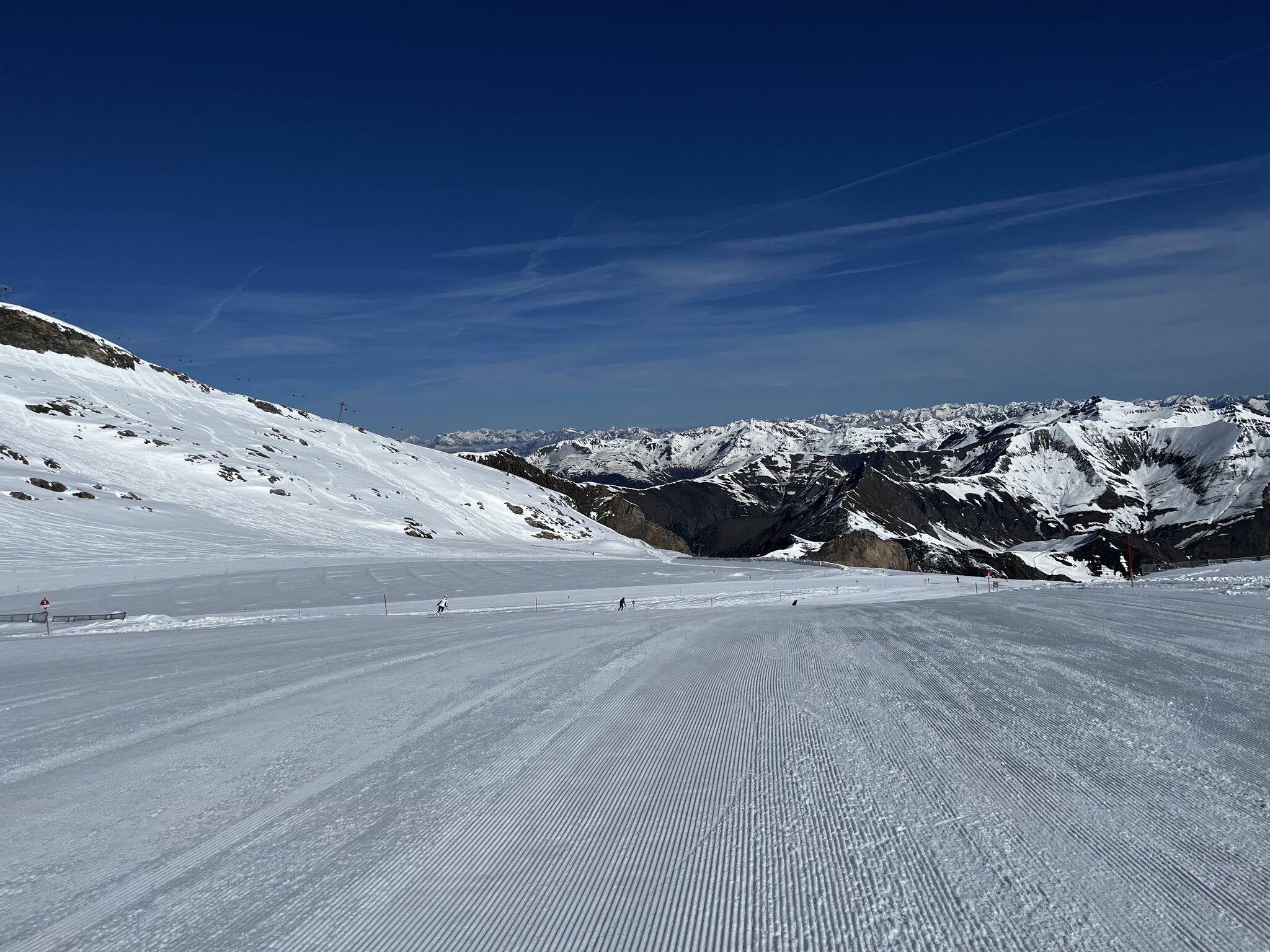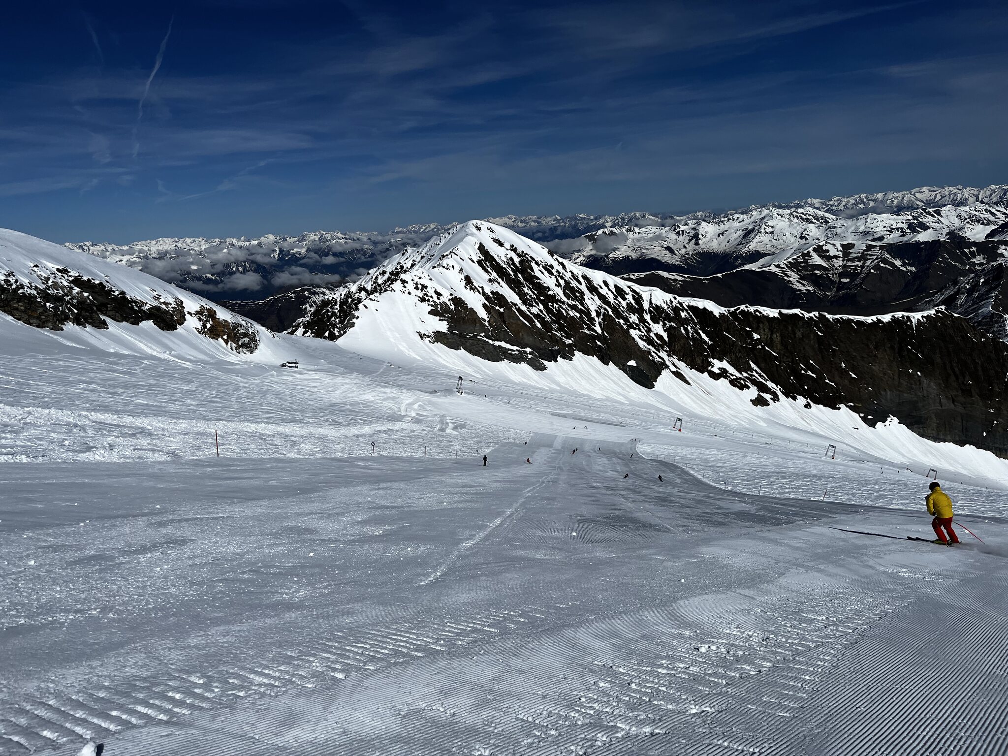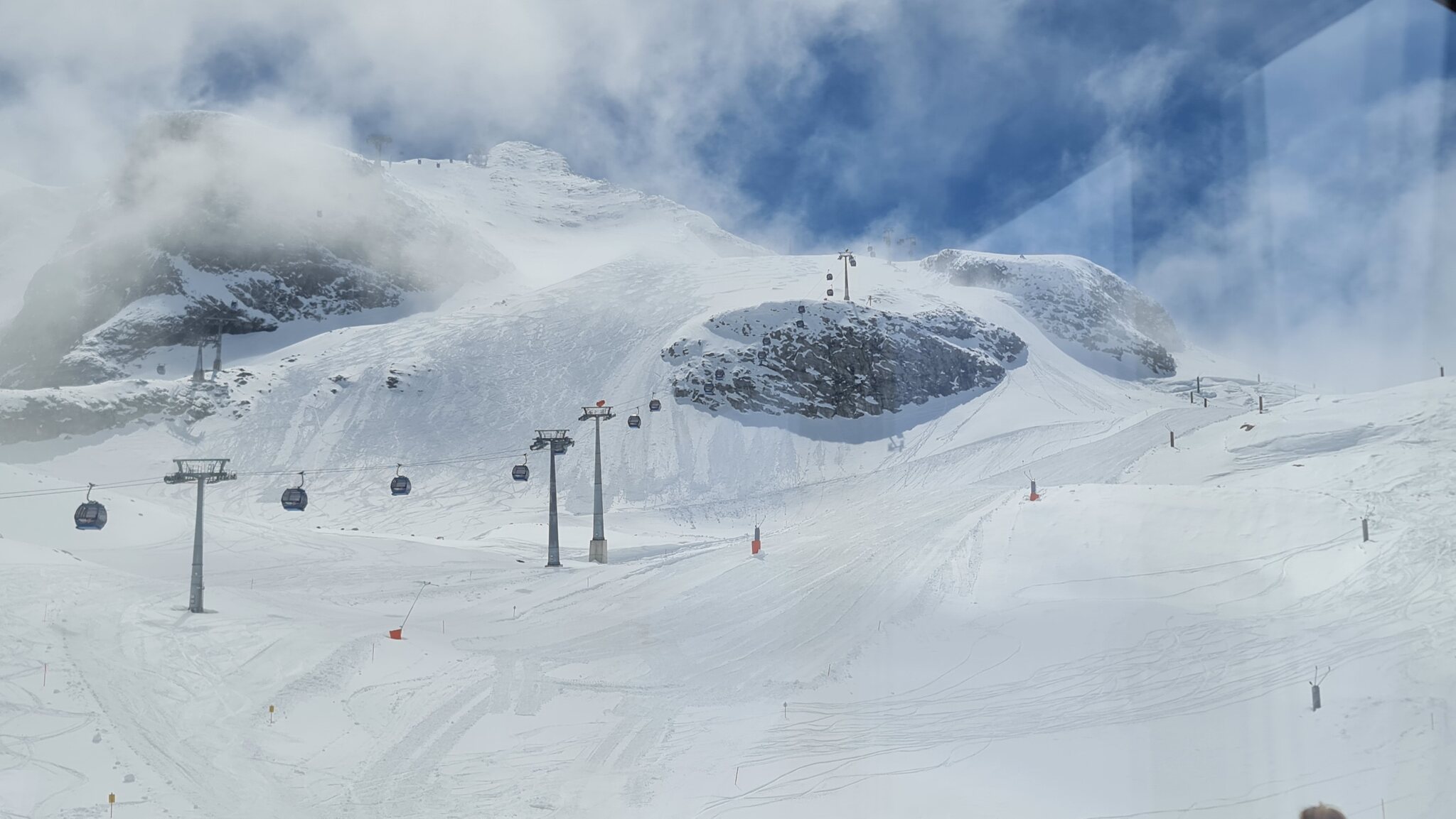 Ab TFH war es sehr windig, GB3 hatte Probleme und fuhr sehr langsam. Oben angekommen war zunächst alles geschlossen, nach und nach öffneten dann die Schlepper und Lärmstange 2. die Pisten am Kaserer wurden noch präpariert, die Lifte dort waren beide bereits geschlossen. Am K2 wurde ordentlich verschoben. Pisten oben gut, Sommerberg wird langsam enger vor allem in der ersten Kurve unten und am Zieher unten raus. Wenn man es will würde ich tippen, dass dort bis 20.5. offenbleibt. Ansonsten den ganzen Tag immer alleine in allen Liften und Gondeln, auf den Pisten nichts los. Präparierung in Ordnung ausser am Sommerberg. Oben liegt noch sehr viel Schnee, deutlich mehr als die letzten 2 Jahre.