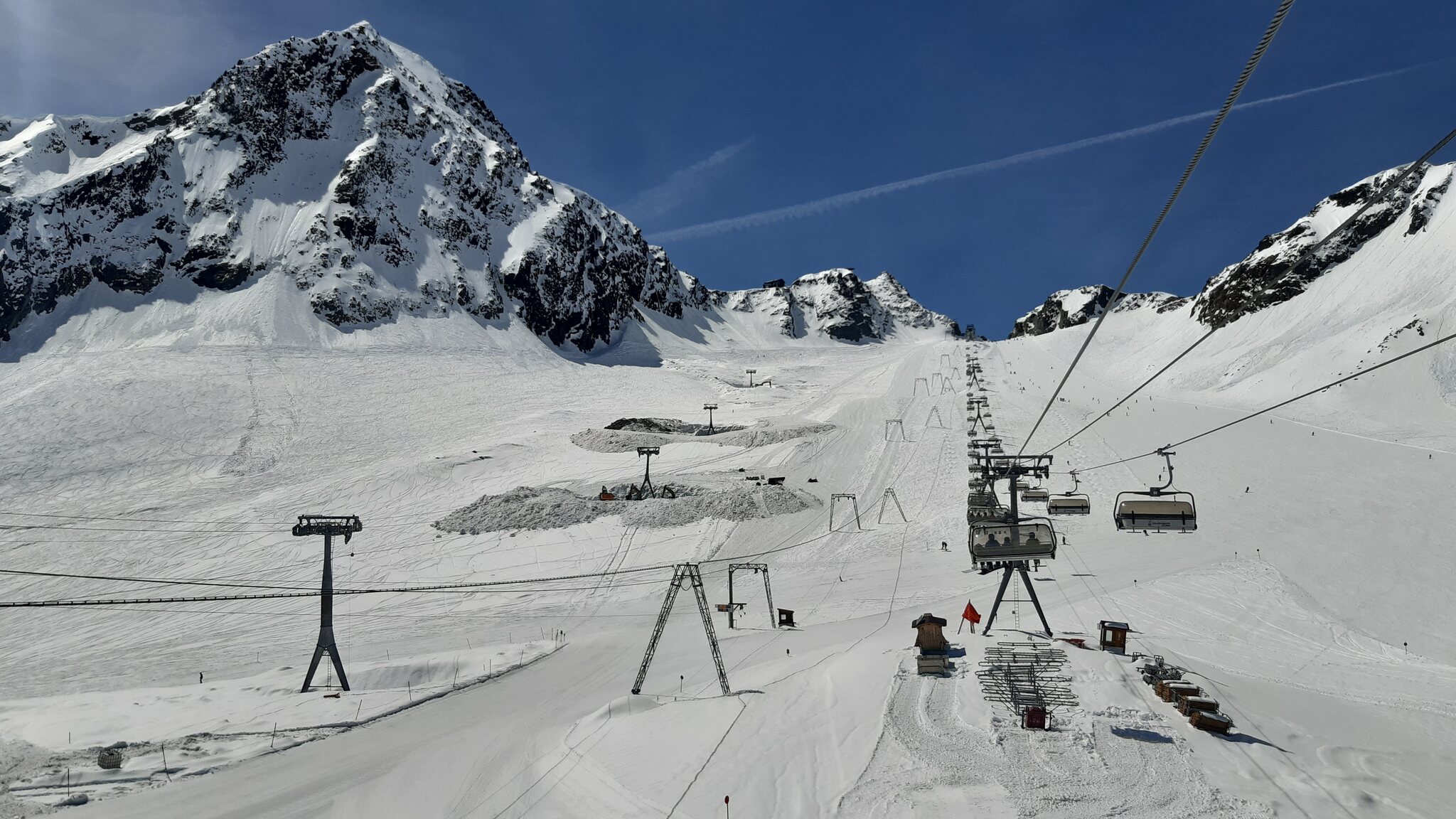 Blick von der Rotadl-Bergstation in Richtung Eisgrat. So verlassen kenne ich die ansonsten sehr beschäftigte Station gar nicht. Der Gletscherschwund seit meinem letzten Besuch vor vielen Jahren ist aber leider schon eindrücklich