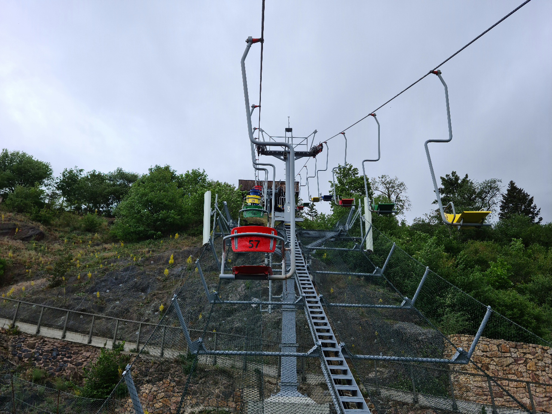 #16- Weiter in der Mitte der Trasse kommt die unten hohe Trassierung gan gut rüber. Auffallend ist auch, dass die Sessel sehr fabenfroh sind.