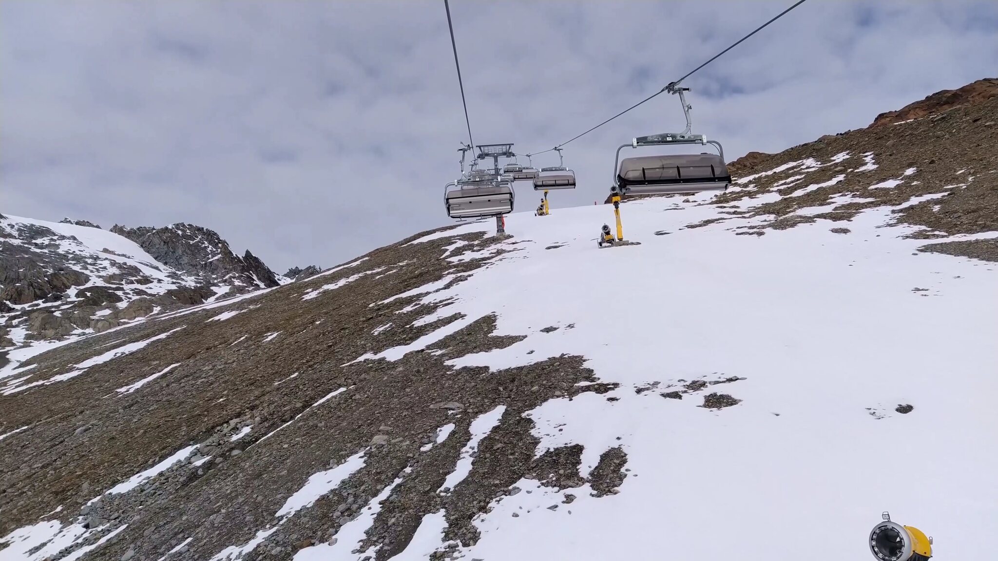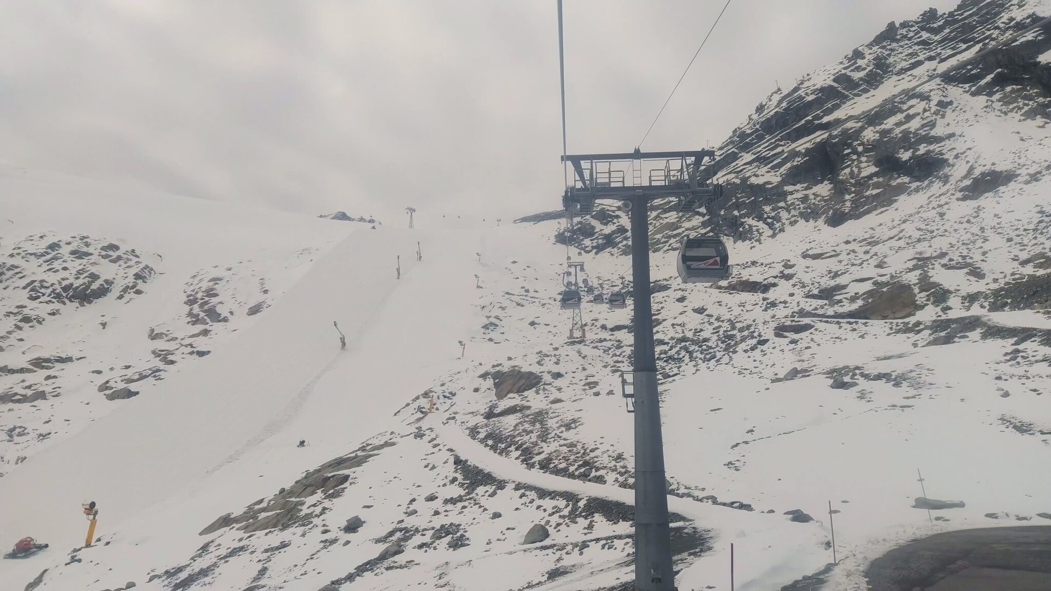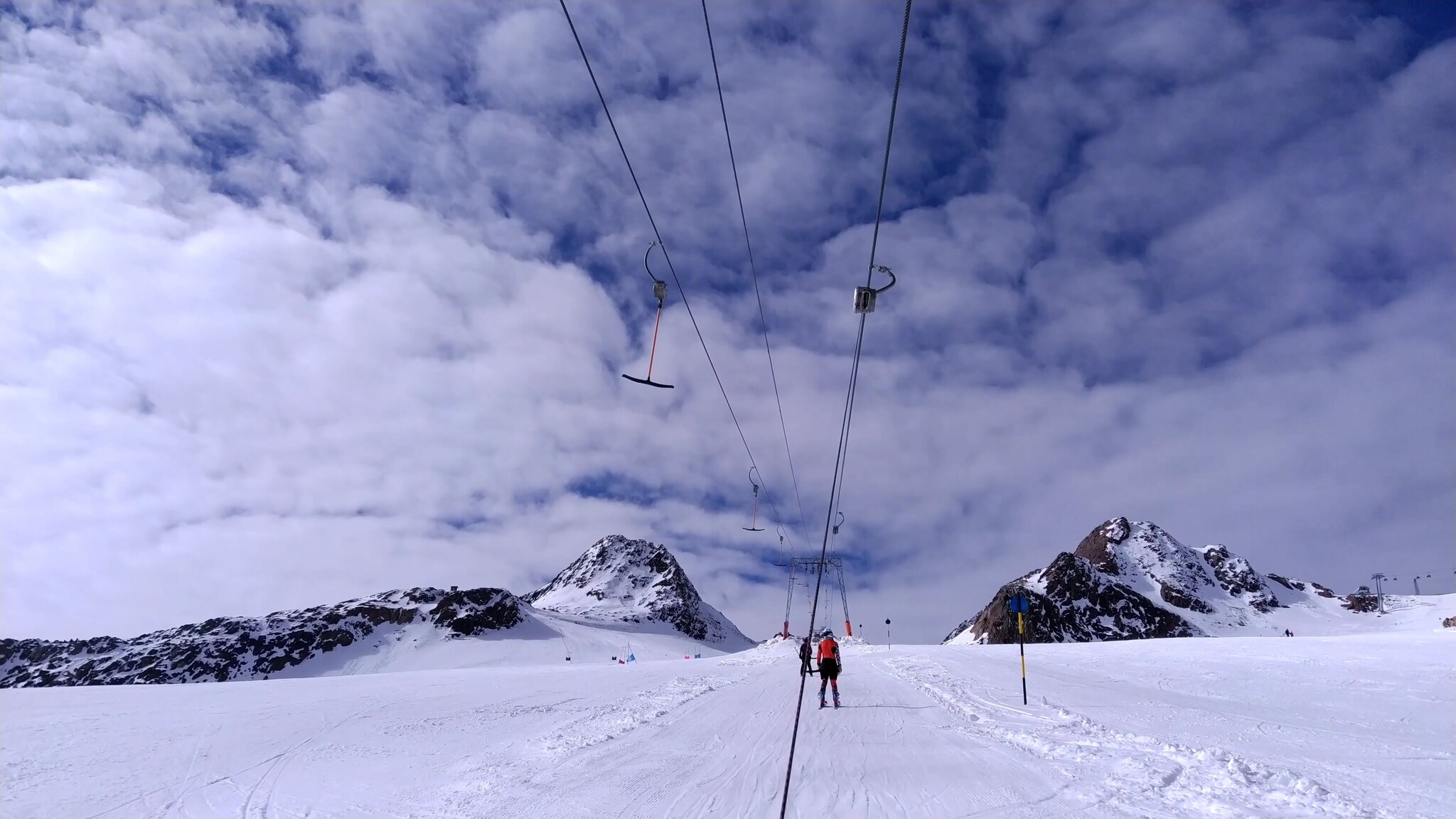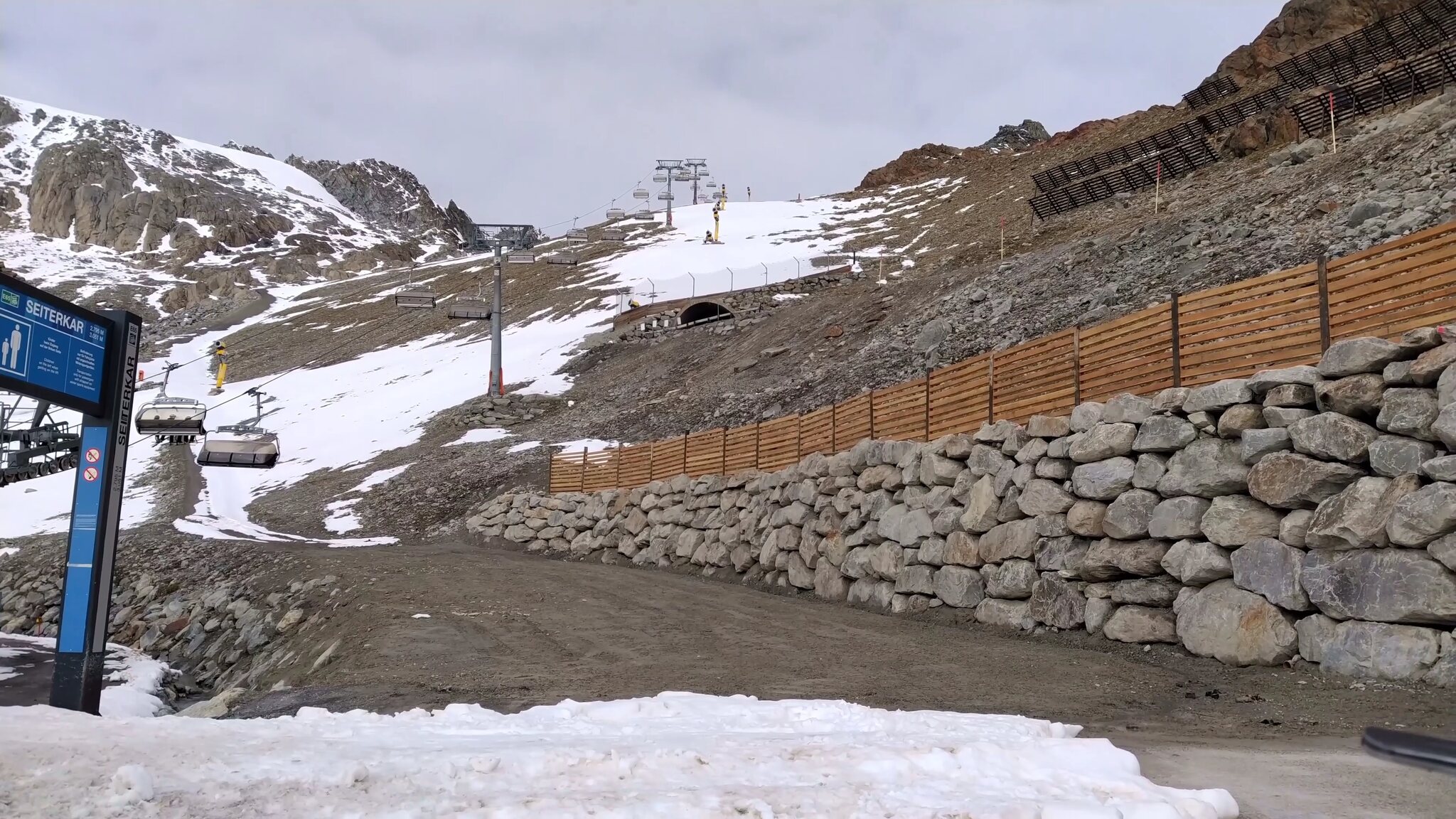 :( Seiterkarbahn im Schleichtempo und langsames Förderband am.Rettenbachferner