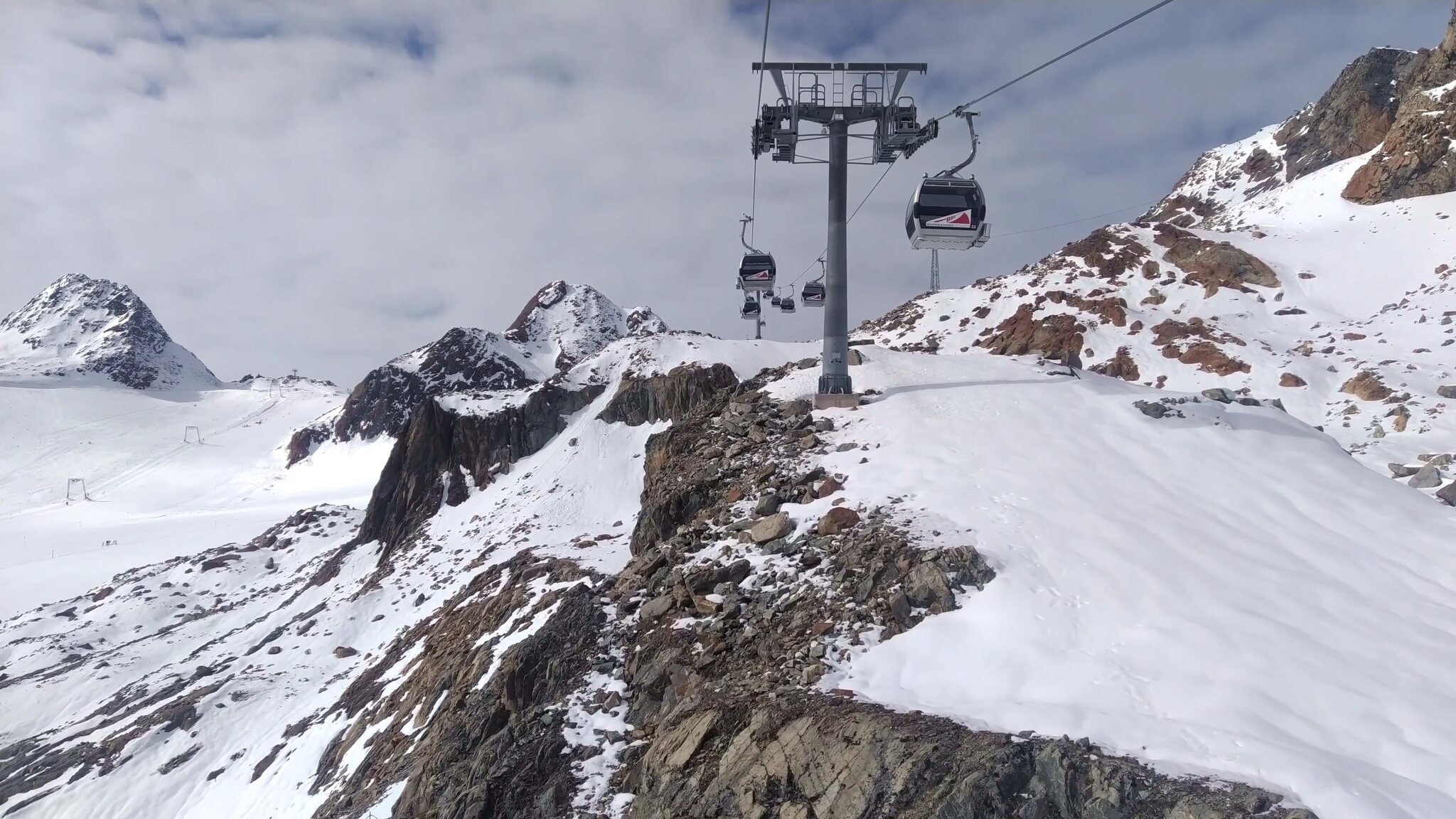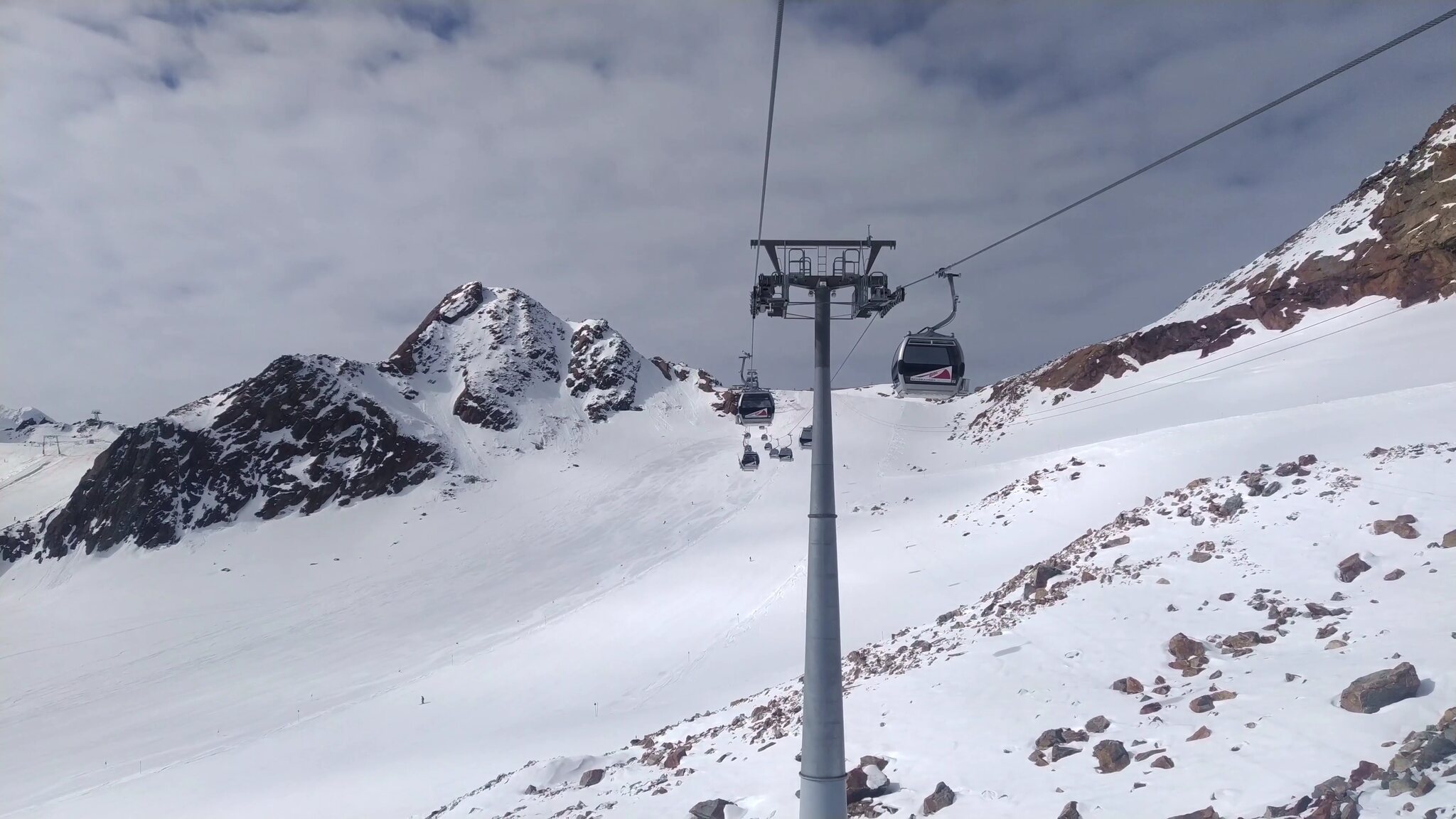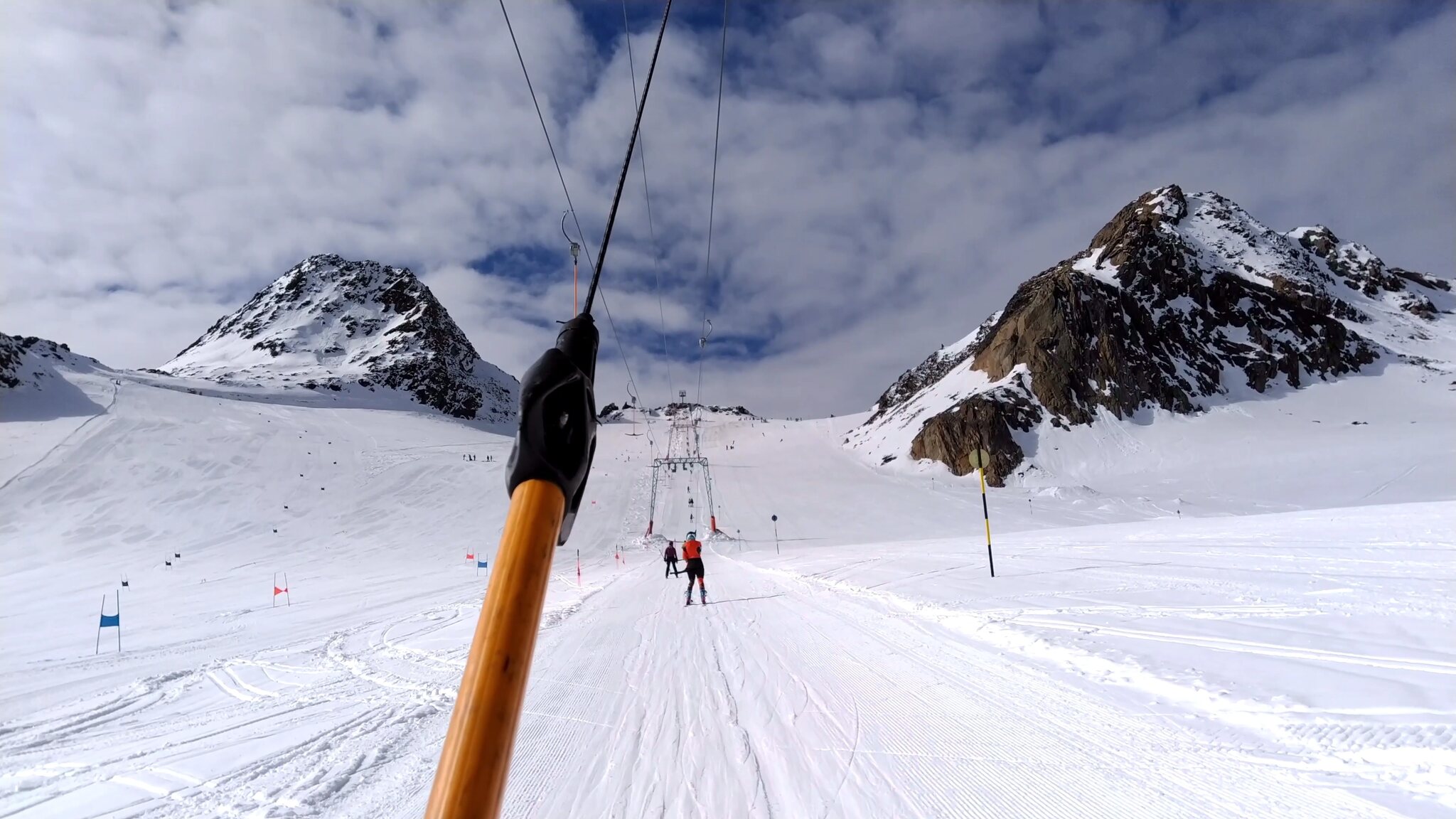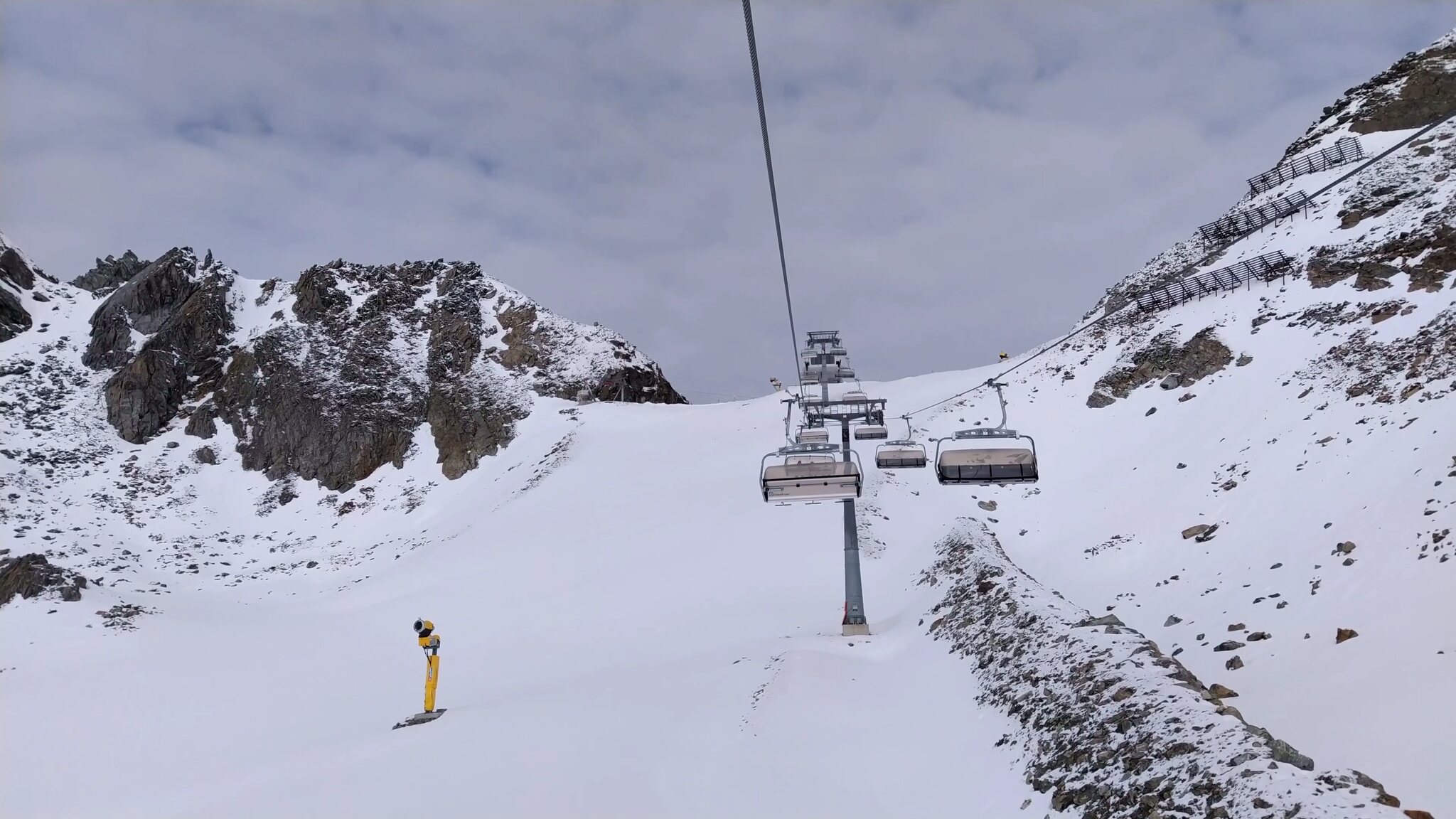 :( Seiterkarbahn im Schleichtempo und langsames Förderband am.Rettenbachferner