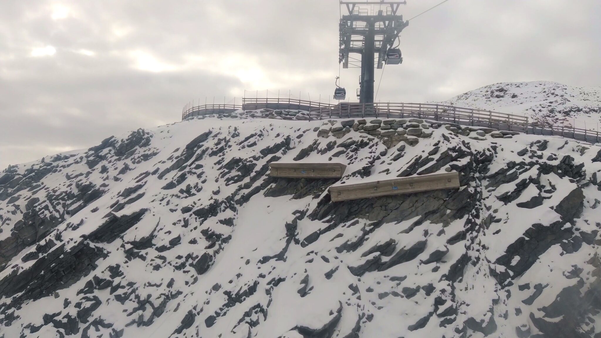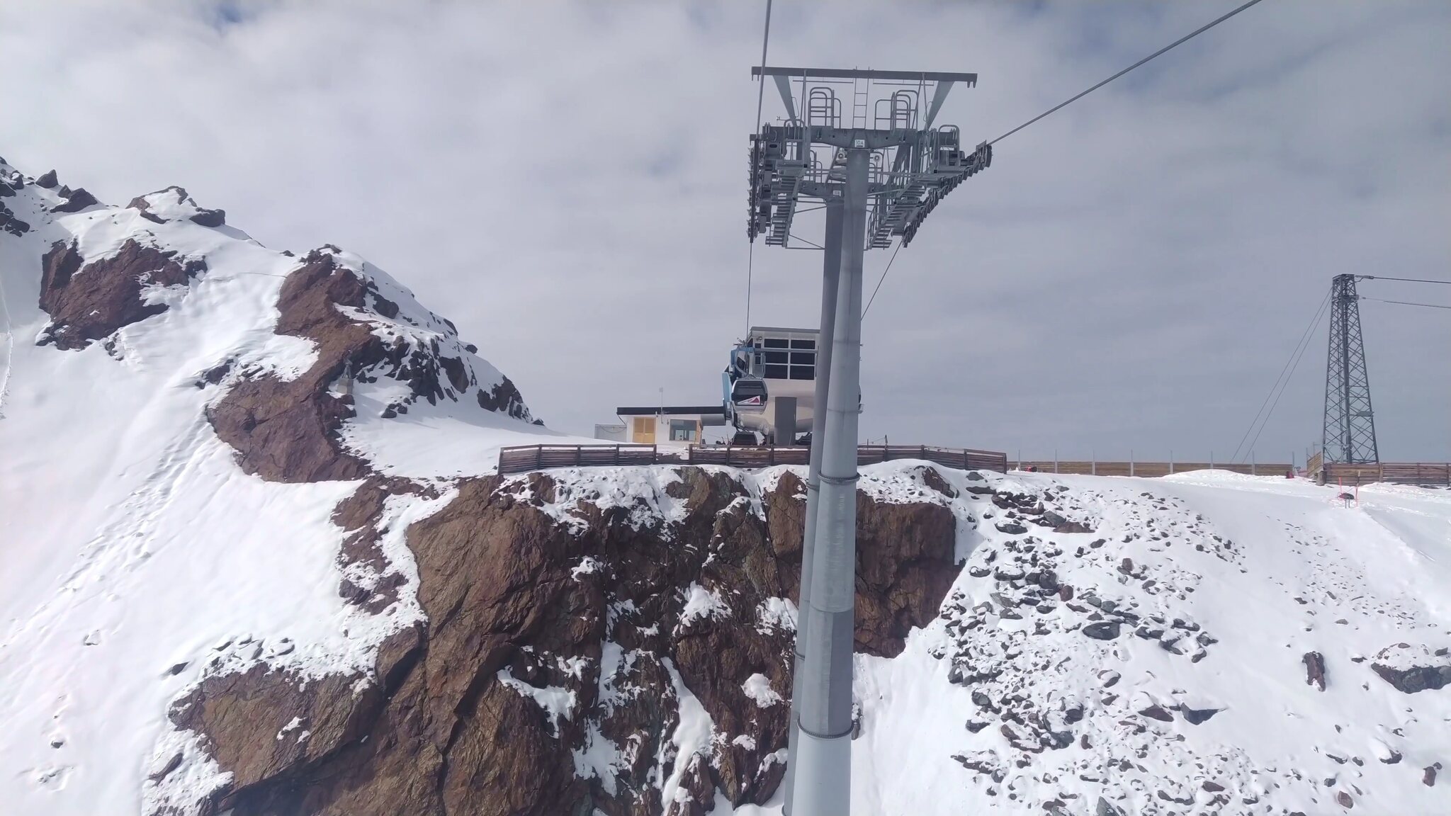 #4- Schnell ist die Zwischenstation und damit das Ende der steilen, ersten Sektion erreicht. Die Vorgängerbahn der ersten Sektion, eine 4KSB von Doppelmayr, war noch einige Jahre als Verstärkung in Betrieb, ist aber letzten Endes doch nach ein paar Jahren stillgelegt worden.