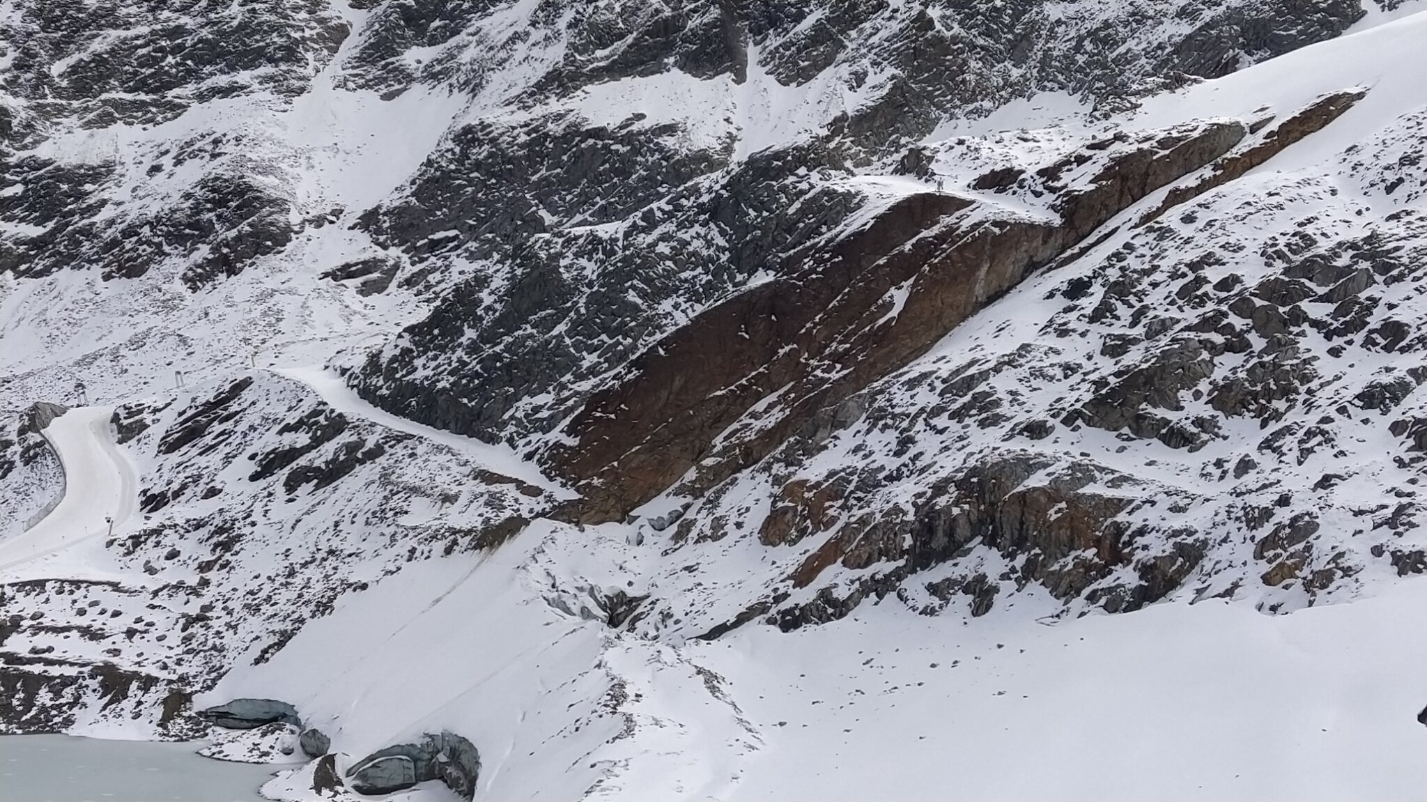 #5- In der 2. Sektion, welche weitaus spektakulärer trassiert ist als die erste. Unten sieht man den Sl Karleskogel, bei dem ich angesichts des Gletscherrückgangs gespannt bin, wie lange die jetzige Trasse unten noch gehalten werden kann.