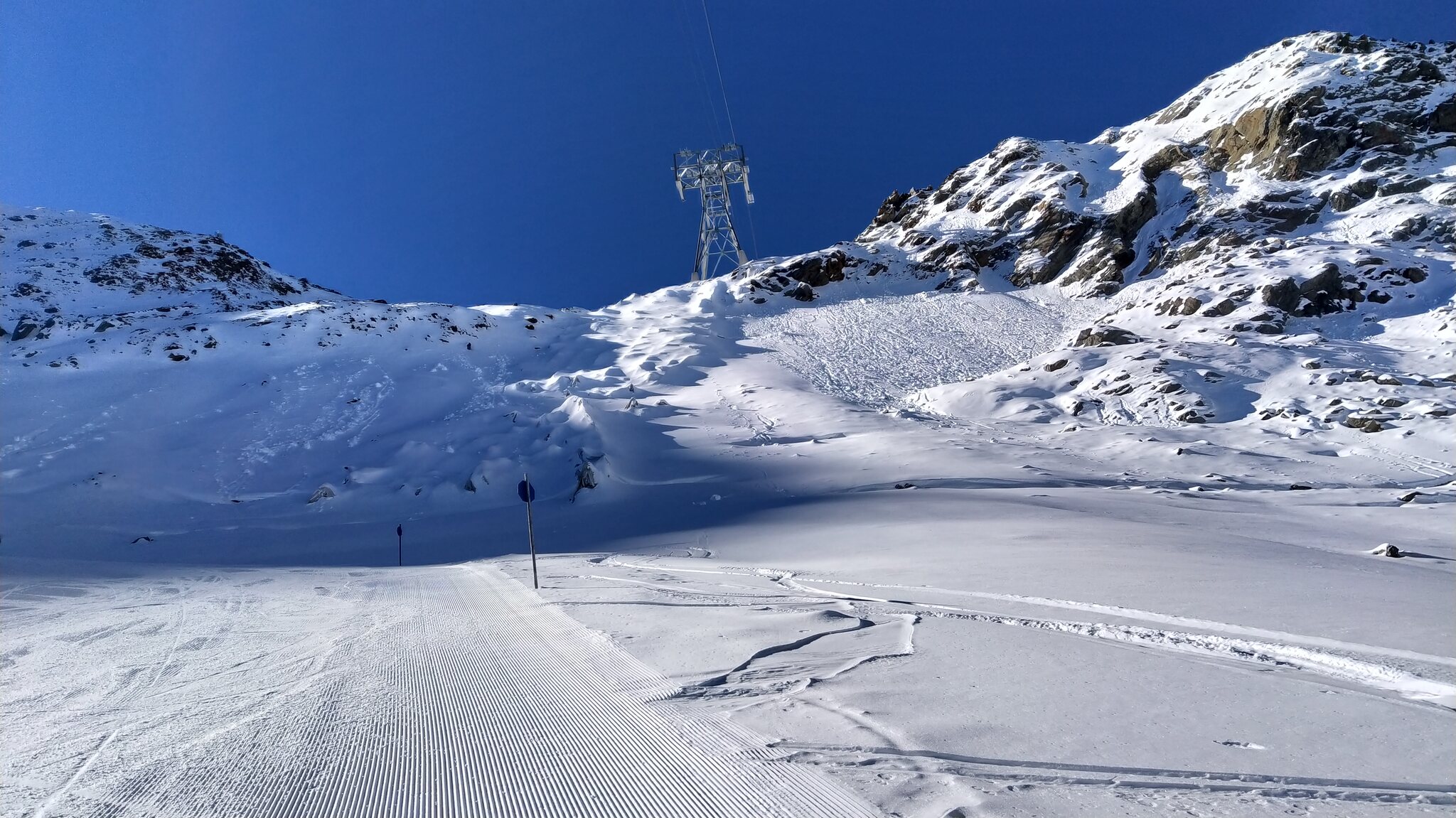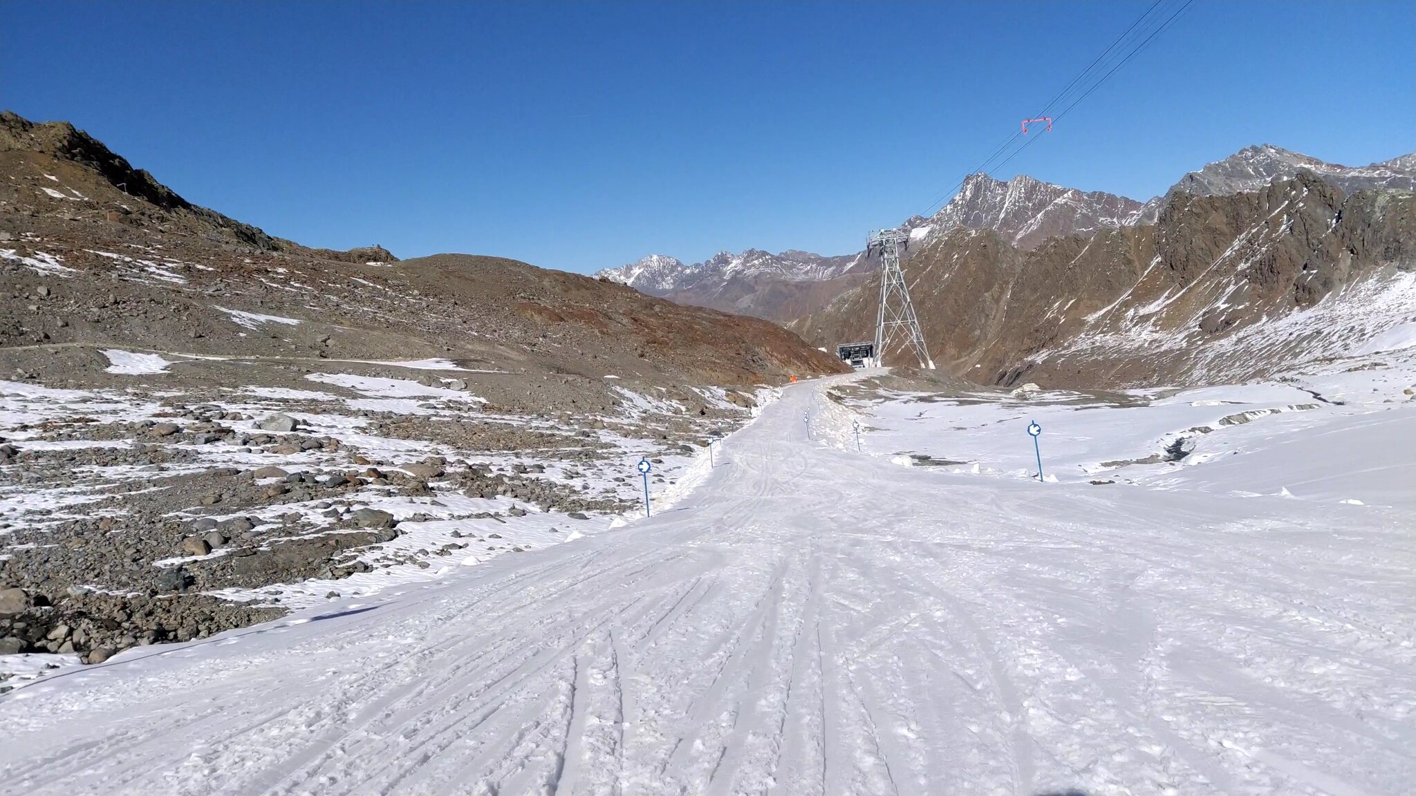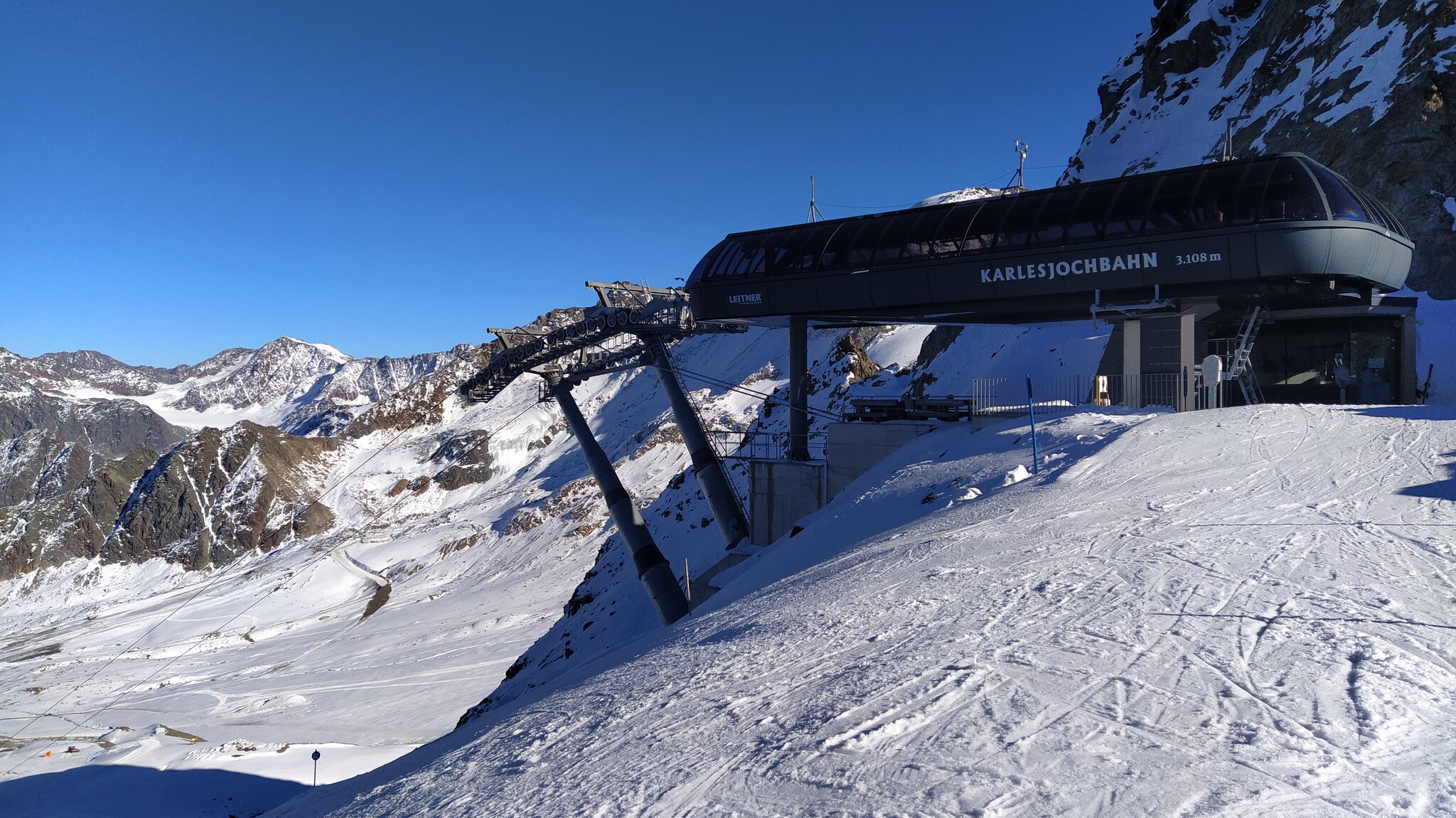 Bilder: #1- Bei der Fahrt bereitete sich die Weißseejochbahn auf den Winter vor. #2- Dann ging es auch los. Der Funifor ist mit Baujahr 2019 noch ziemlich neu und hat nicht einmal ein Viertel der Kapazität seiner Vorgängerlifte. Doch auch die heutigen 600 p/h reichen meist aus, sodass der Ausbau auf zwei Fahrspuren noch länger auf sich warten lassen wird. #3- Nach wenigen Minuten flacher Fahrt dann oben angekommen. Obwohl die Bahn kontinuierlich flach ist, erschließt sie eine kurze schwarze Piste, die Black Ibex, welche zu den steilsten lsterreichs zählt. Leider war sie nicht geöffnet, sie braucht recht viel Schnee. #4- Rillenfoto um halb 11! #5- Auf dem hier sichtbaren Steilhang ist die angesprochene Black Ibex. #6- Anschließend ging es zum Fernerlift. Von ihm war ich positiv überrascht, er ist landschaftlich schön gelegen und die Piste ist zwar eher flach, aber bei Weitem kein Ziehweg. #7- Weiter geht es zur dritten geöffneten Bahn, der Karlesjochbahn. Sie endet 5 Höhenmeter unter dem Funifor und erschließt 2 nette Abfahrten. #8- Etwas weiter oben in der leider sehr langsam fahrenden Karlesjochbahn. Links ist an der Piste gut zu sehen, wie gut sie Snowfarming beherrschen. Trotz der mauen Naturschneelage lag abgesehen von einer 100m langen Ausnahme (Ein Bild folgt später) auf allen Pisten genug Schnee! #9- Blick ins grüne Vinschgau. #10- Runter geht es aber in die andere Richtung.