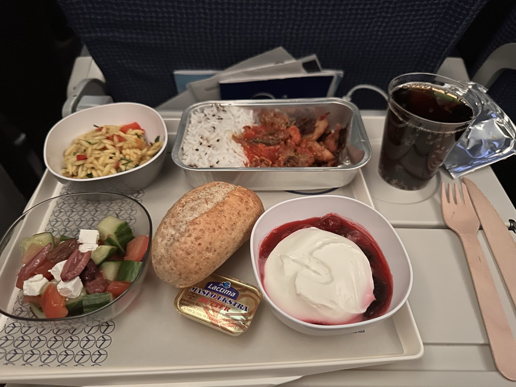 danach wird das Abendessen serviert, so gut habe ich in einen Flugzeug glaube ich noch nie gegessen.
