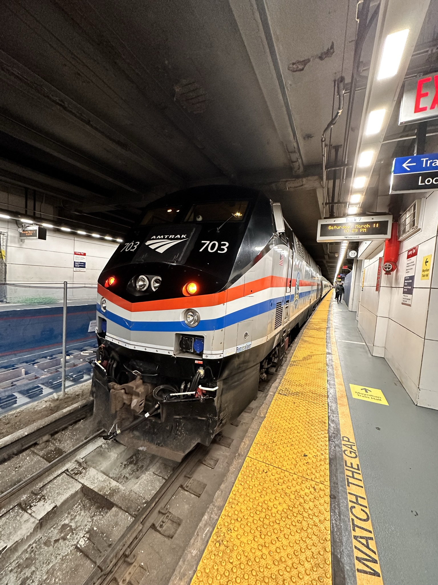 Im unterirdischen Bahnhof Penn Station komme ich an und steige aus.