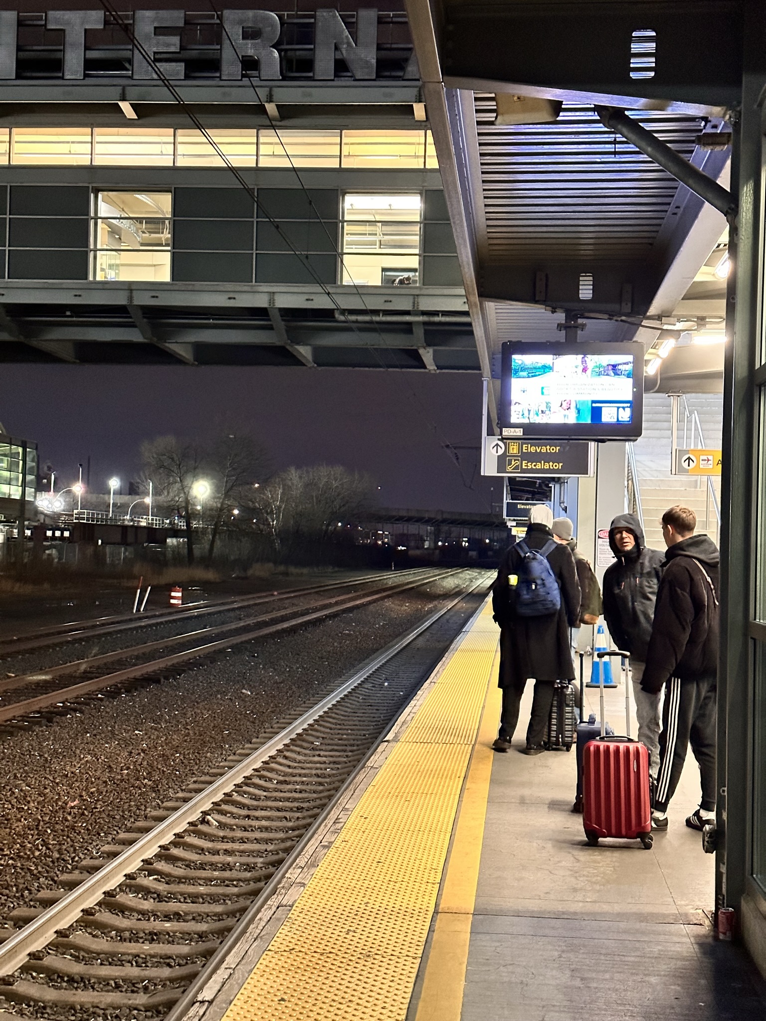 ich warte auf den Zug, der nach etwa 10 Minuten schon kommt. Und mich in weniger als 25 Minuten in die Innenstadt Manhattans bringt