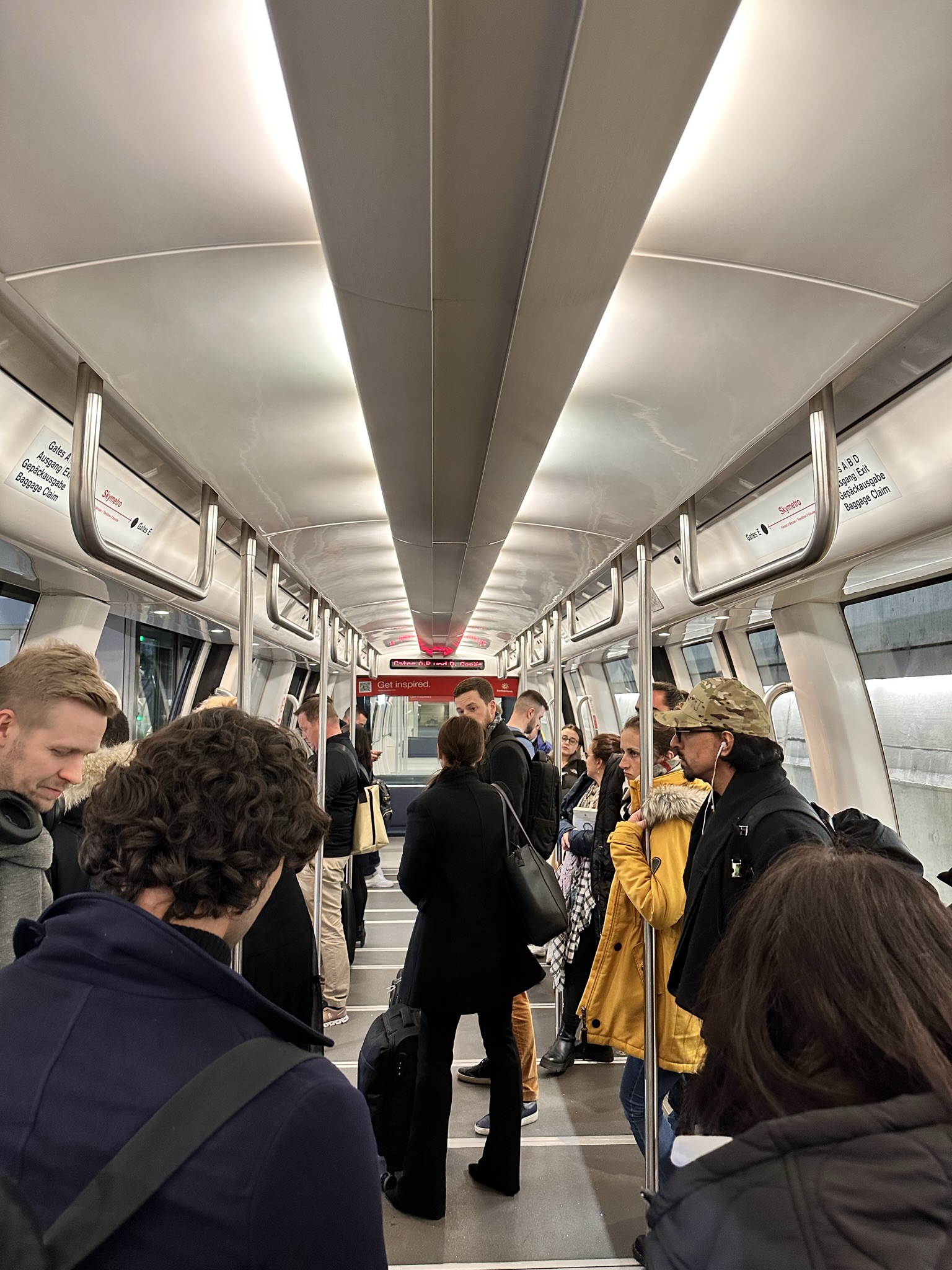 Mit dem Skytrain, hier ein Monorail, fahre ich vom Terminal zum Bahnhof.