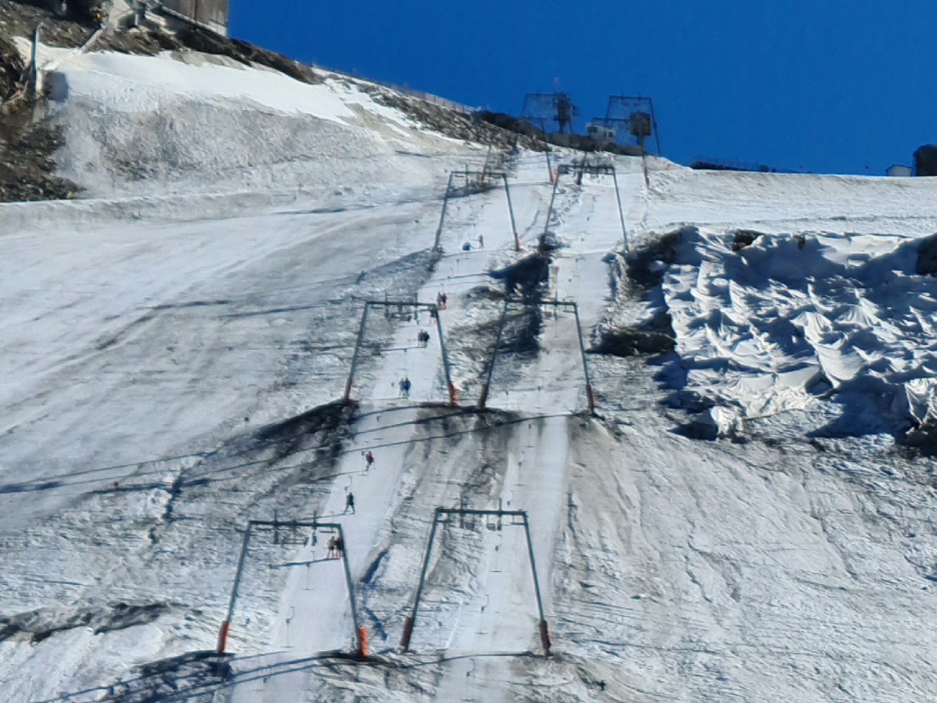 Wobei das nur geht, wenn der restliche Gletscher an den Sl sehr dünn ist, was ich mir kaum vorstellen kann. Ich befürchte eher, dass der Fels immer mehr aus dem Gletscher herausragen und dadurch die Lifttrasse kaum befahrbar machen wird. Außer, man macht es wie im Pitztal und macht den Felsen in der Lifttrasse so glatt, dass da nicht mehr Depotschnee gebraucht wird, als es jetzt der Fall ist.