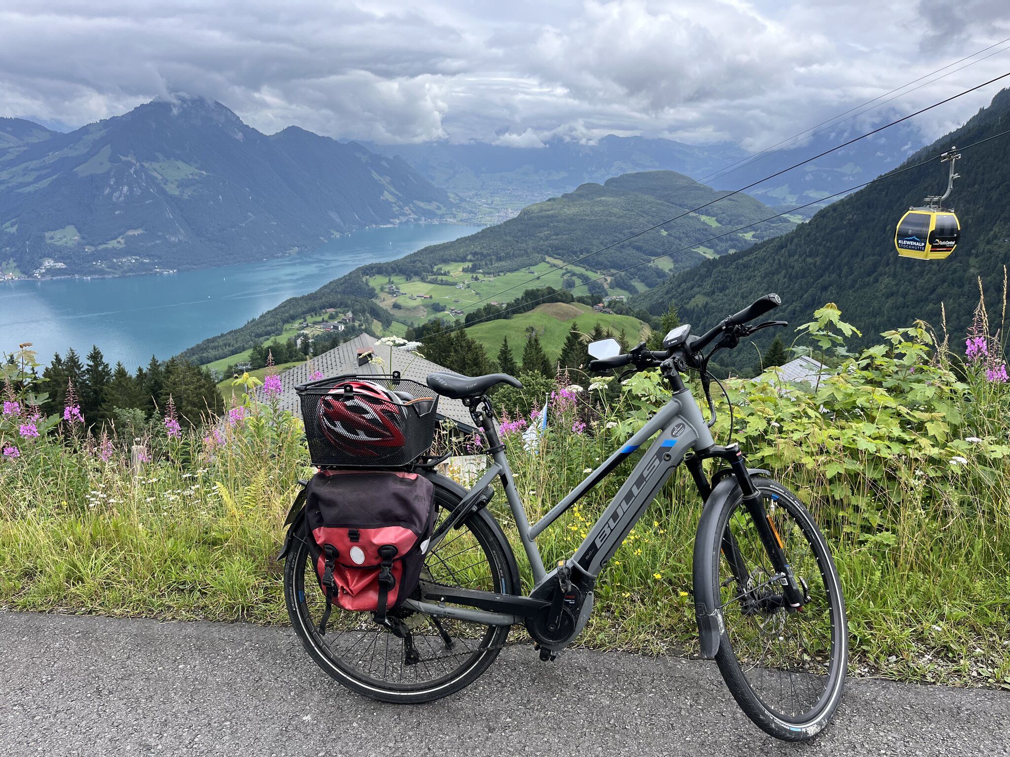 Mit dem City-E-Bike meines Sohnes (er hat es von seiner verstorbenen Mutter geerbt), geht es um 11.30 Uhr von zuhause aus...