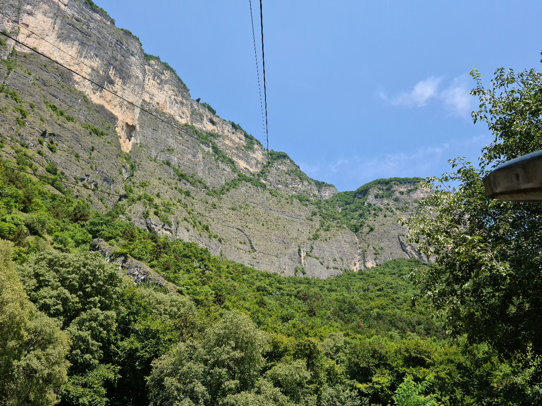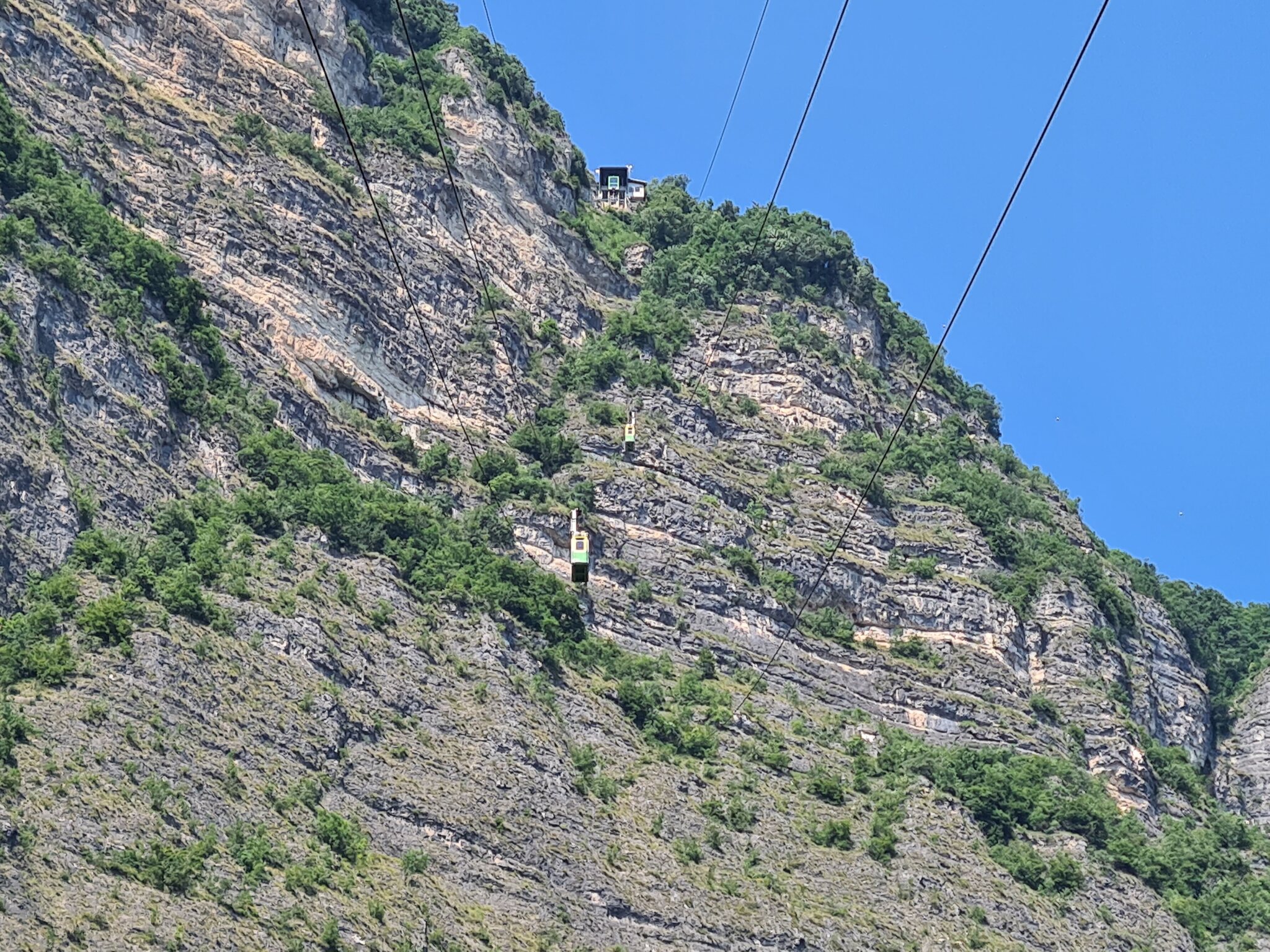 #1- Kabine 2. Die Kabinen gewinnen ab der Talstation schnell Höhe, was für eine solche Durchschnittssteigung auch nötig ist. Auffallend ist ihre Filigranität.