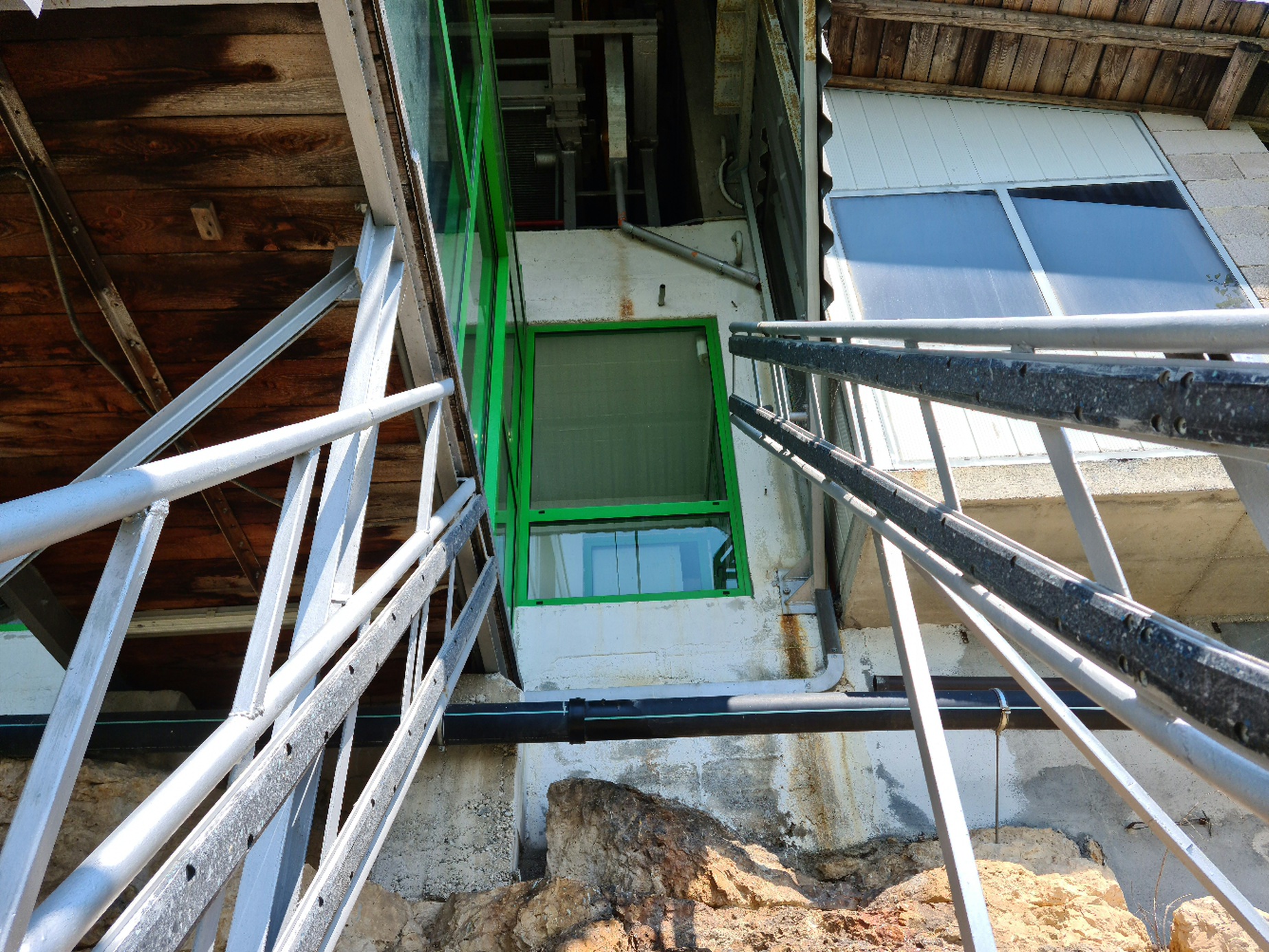 #3- Blick durch das geöffnete Fenster nach hinten. Dass die Fenster geöffnet sind, ist nicht nur wegen der sonst mit mehreren Personen schnell schlechten Lift gut. Gerade bei einer so steilen Bahn ist es sonst meist schwierig, ohne Spiegelung nach oben zu fotografieren. Nur nicht fallenlassen, lautet die Devise hier. ;) Die Aussicht wird jede Sekunde spektakulärer.
