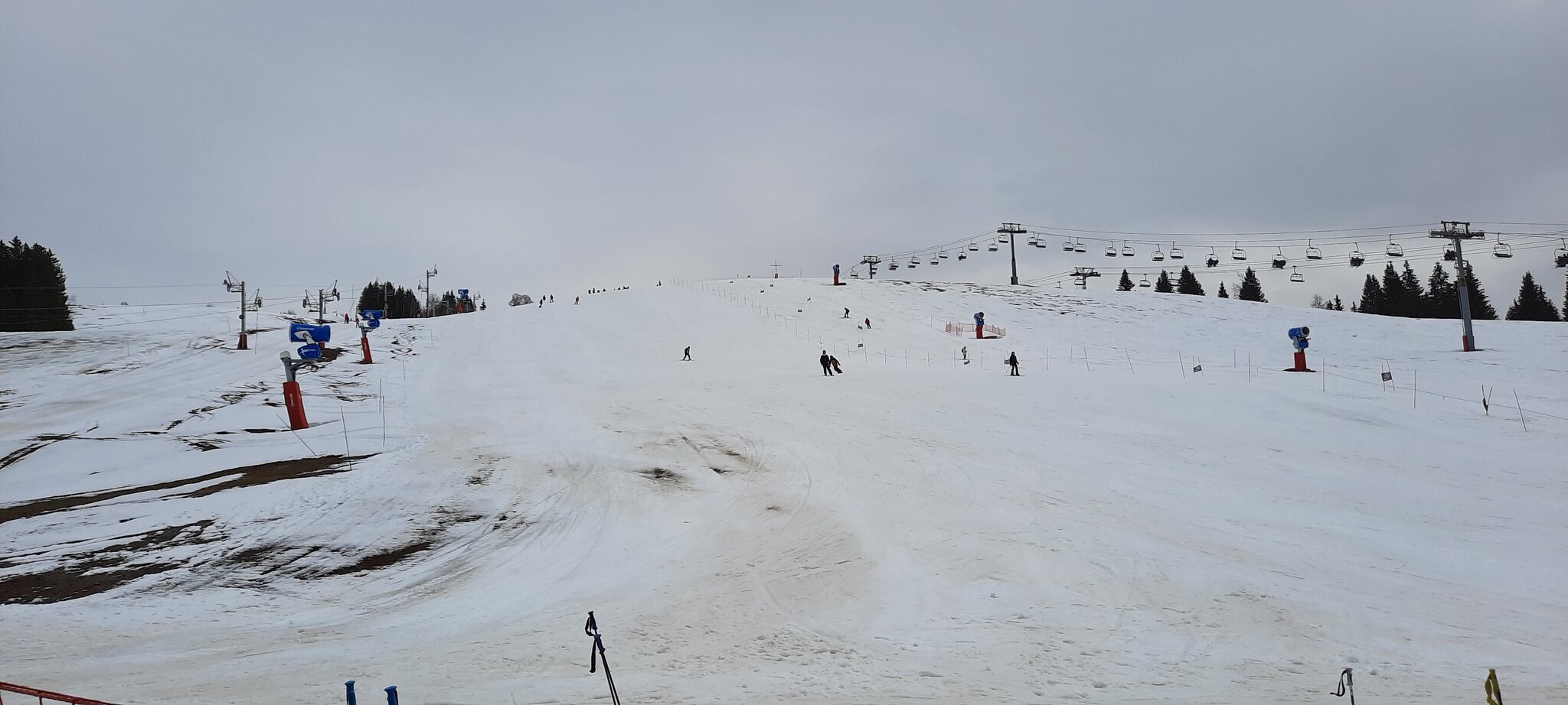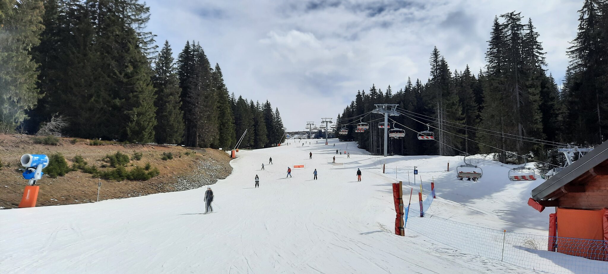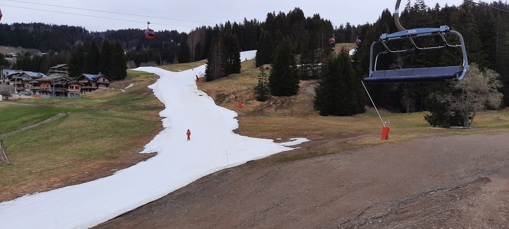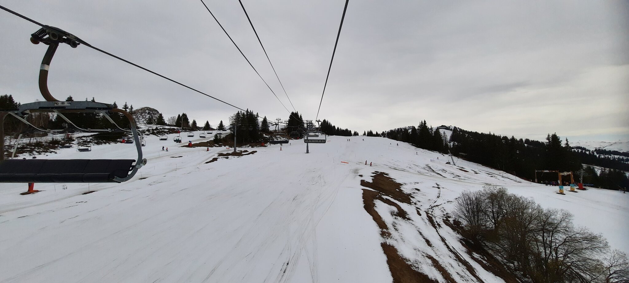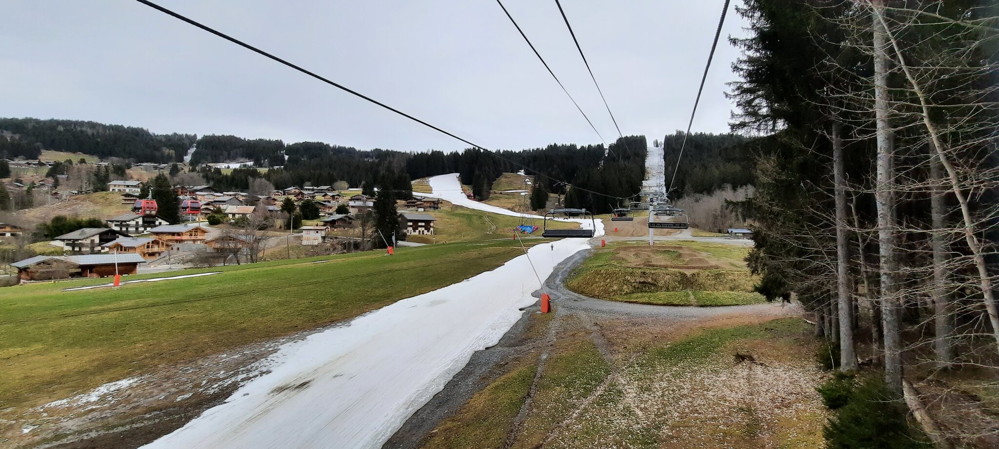 So oder so haben wir etwas gefunden, und laut unserer Planung sind wir am Karfreitag richtig früh losgefahren und waren gegen 11:00 Uhr in Les Gets. Ich hatte eine Übernachtung in einem „Schicki-Micki“-Hotel gebucht (wie mein Sohn gesagt hat), und nach Absprache konnten wir dort parken und den Skikeller benutzen, um ein bisschen in Les Gets Ski zu fahren. Les Gets sieht mehr aus wie ein Skidorf in Österreich, genau das Gegenteil von den meisten „purpose-built“ französischen Skigebieten. Ich vermute, man kann dort richtig gut skifahren, solange genug Schnee liegt. Bei uns war es jedoch ein bisschen ein „Flop“: zu warm, zu bremsig usw. Aber okay, für 2-3 Stunden hat es gereicht.