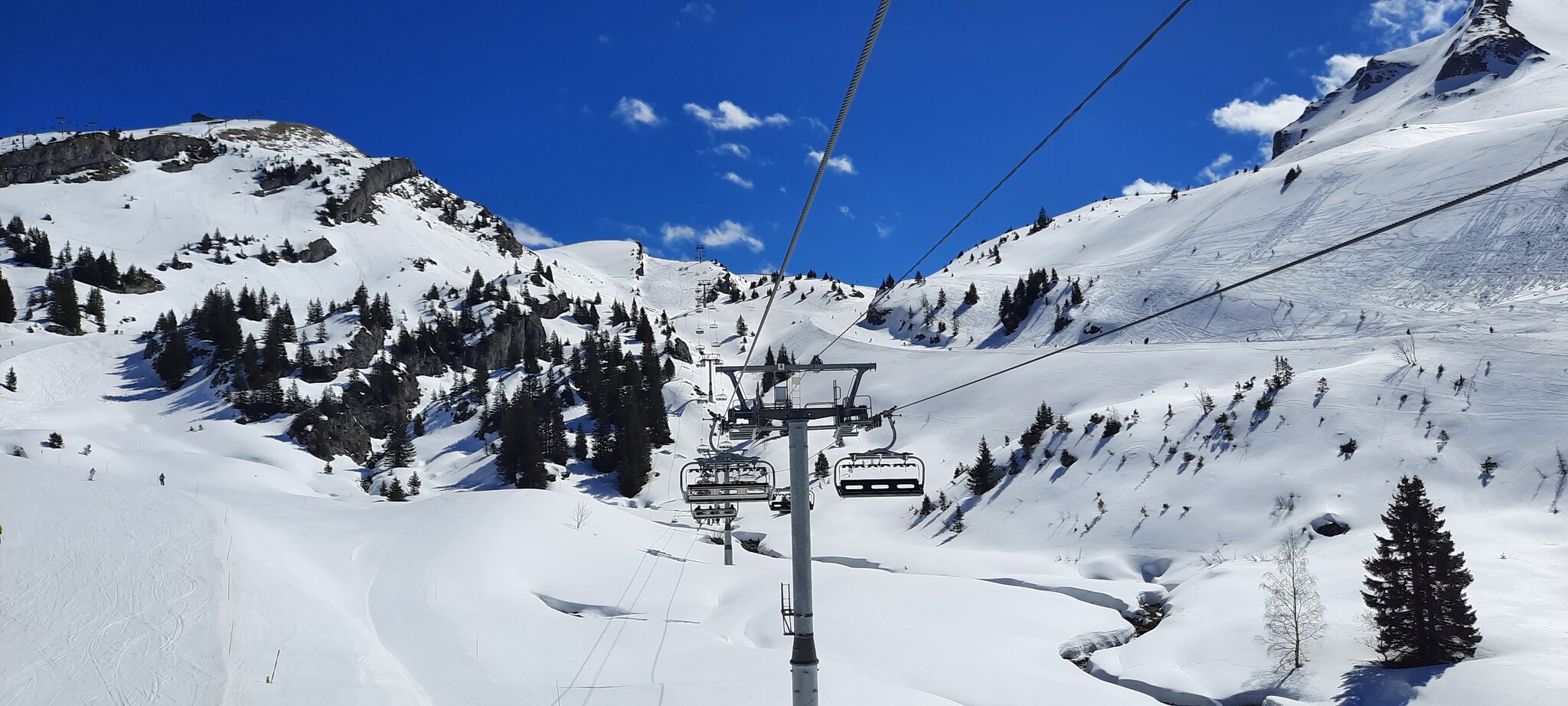 Plötzlich, bevor ich etwas buchen konnte, kam eine E-Mail von Avoriaz. Darin wurde mitgeteilt, dass ab dem 30. März Kinder kostenlos skifahren könnten, solange die Eltern auch Skipässe kauften. Das bedeutete, dass wir für sieben Tage Skifahren für zwei Erwachsene und zwei Kinder nur 640 Euro zahlen würden. Normalerweise finde ich Avoriaz richtig teuer, besonders wenn man schulpflichtige Kinder hat, da es dann in den Schulferien noch teurer ist. Trotzdem hat uns dieses Angebot ein bisschen „Luft“ gegeben, um eine schöne Unterkunft zu finden und zu buchen.