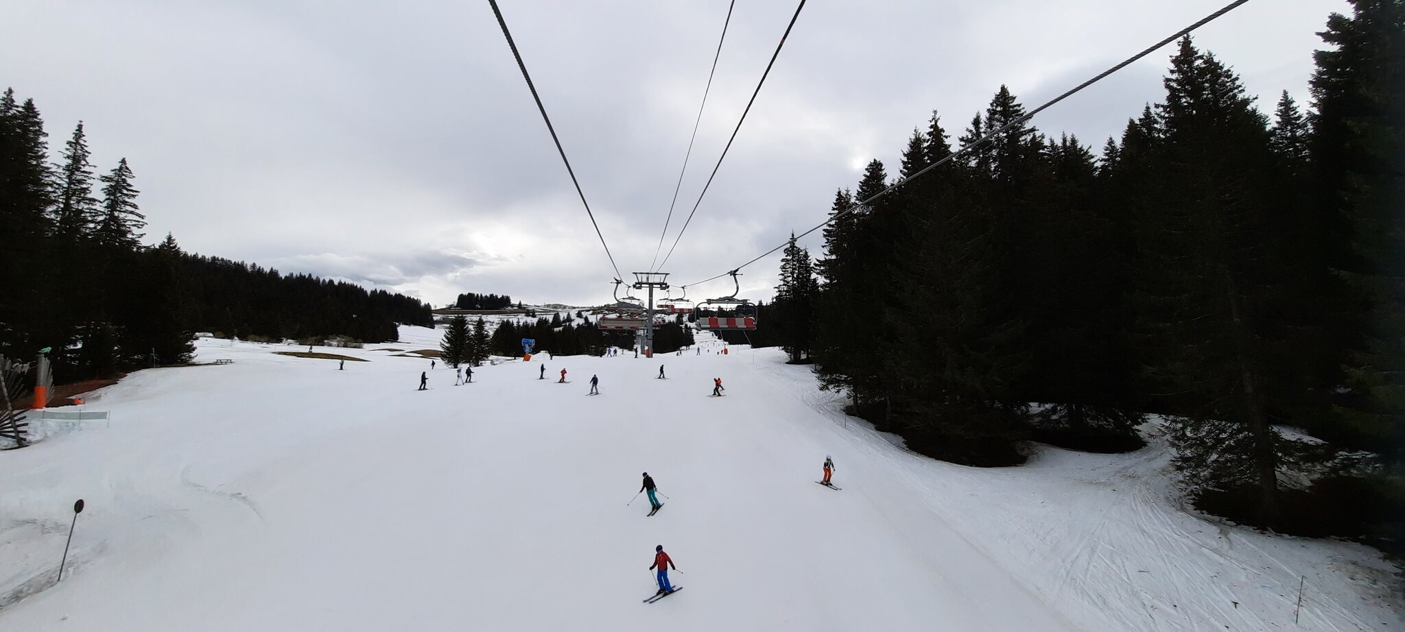 Bezüglich Avoriaz: Skifahrerisch bin ich nicht so begeistert. Auf einer Skala von 1 bis 10 bekommt Avoriaz von mir eine 7,5. Die Pisten sind in Ordnung, aber sie sind immer voll. Ich möchte gar nicht wissen, wie es in der Faschingswoche oder in den Weihnachtsferien aussieht. Auf jeden Fall ist es vielleicht besser, wenn das gesamte Portes du Soleil offen ist, aber ich glaube, alle wollen nach Avoriaz. Von Morzine, Les Gets, von der Schweiz – alle wollen einfach nach Avoriaz und zurück. Trotzdem war es relativ angenehm und wir hatten richtig Spaß, obwohl der Schnee fast immer sulzig war.