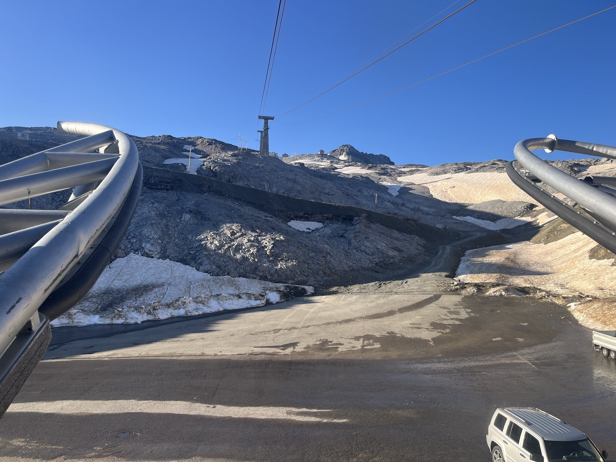 Die Kabinen mussten wohl erneuert werden und sie werden ja auch in Zukunft ihre Existenzberechtigung haben, auch ohne Skibetrieb. Fussgänger, Motorradfahrer und Biker wird es da auch noch in Unmengen haben, wenn der Gletscher nicht mehr zum Skifahren taugt.