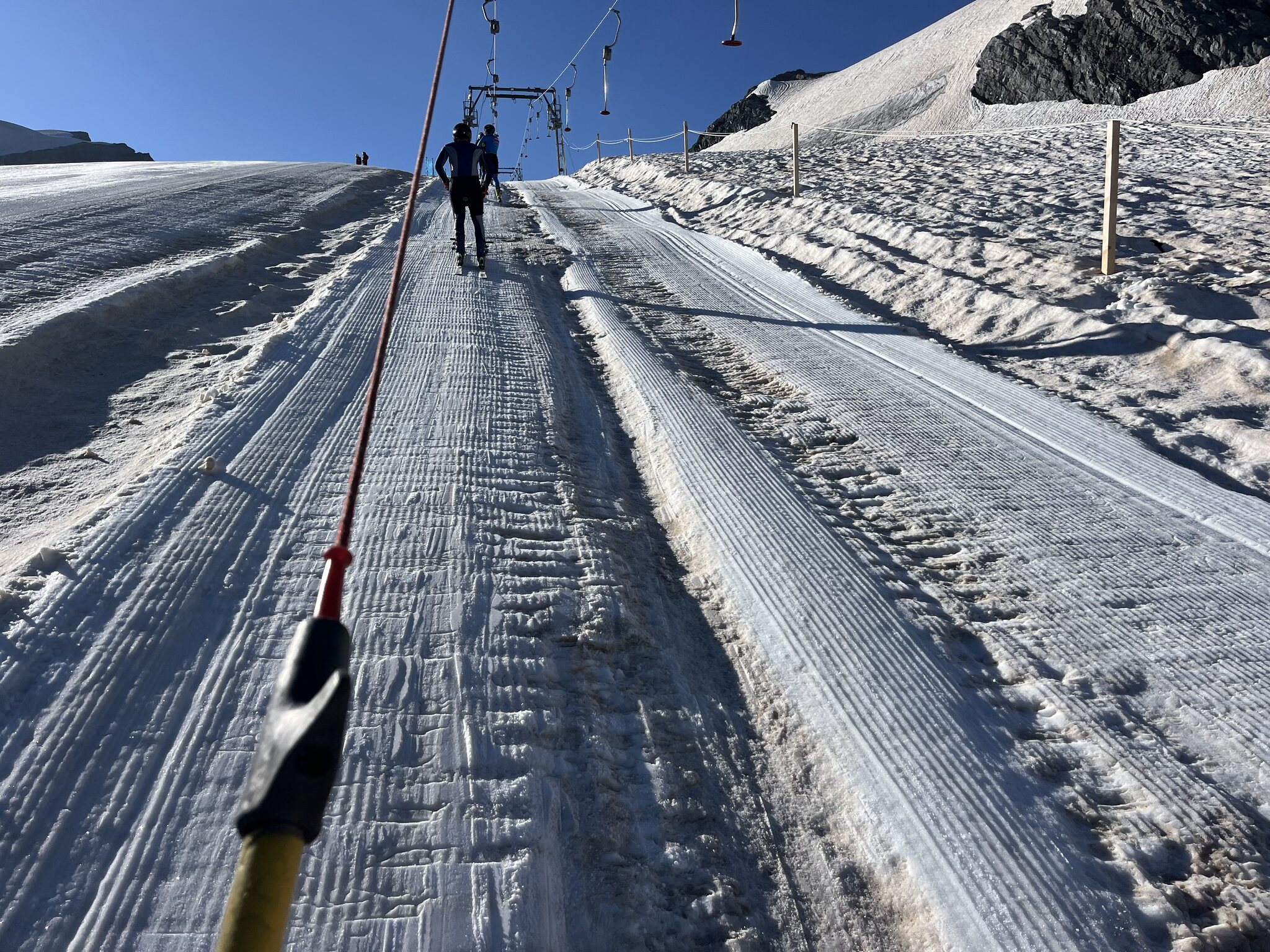 Je nach Gelände unter dem Gletscher kann ich mir schon vorstellen, dass es irgendwann entweder einen Skibetrieb Mai-Juni-Oktober(Depotschnee) oder Mai bis Oktober mit Depotschnee ab Mitte Juli geben wird. Theoretisch könnten sie ja mit den Schneemassen vom Winter enorme Depots machen, und so die Schwäche des fehlenden Winterbetriebs zu einer Stärke machen.
