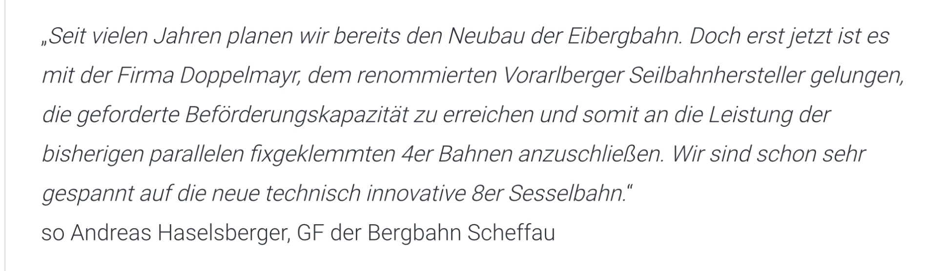 Ganz einfach - die Eibergbahn eine der Verbindungsungsanlagen von Scheffau Richtung Brixen / Hopfgarten / Söll / Westendorf. Sie liegt zentral und damit quasi an einer Schlüsselposition in der Schiwelt.mic hat geschrieben: 04.08.2024, 09:22 Aber ich kann mir eh nicht erklären was die Leute an dem kurzen Berg so fasziniert. Eventuell der unterbaute Blick zum Wilden Kaiser.