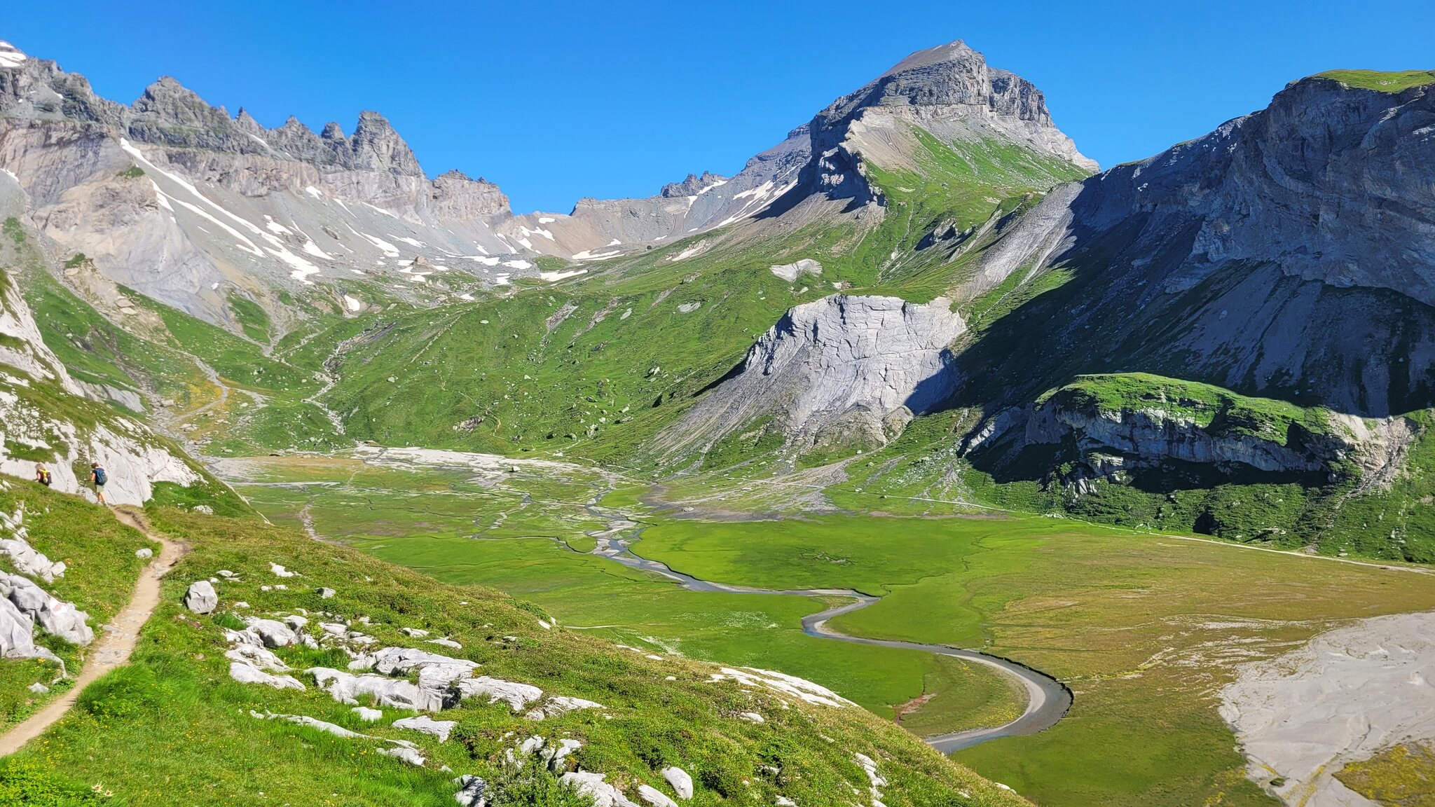 Am Talende sieht man die Tschingelhörner mit ihrer markanten Trennlinie:
