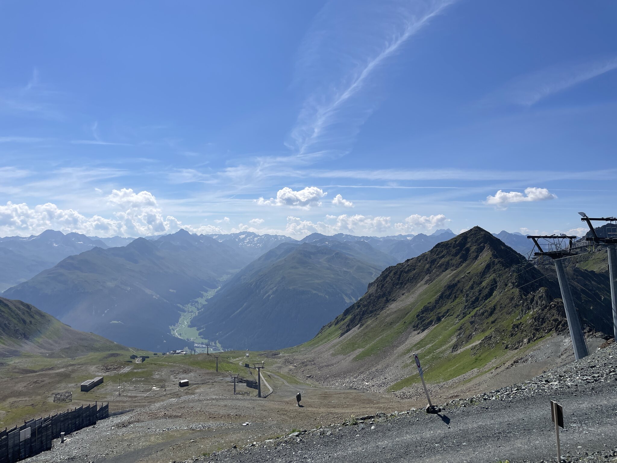Auf dem Urdenfürggli startet die lange und lustige Trailabfahrt nach Lenzerheide. Ab hier sind es über 1000 Höhenmeter nur auf Trails - cool! <br />Das Bild lässt erahnen, wie viel Schnee es hier im Winter braucht, um die Piste in Betrieb nehmen zu können.