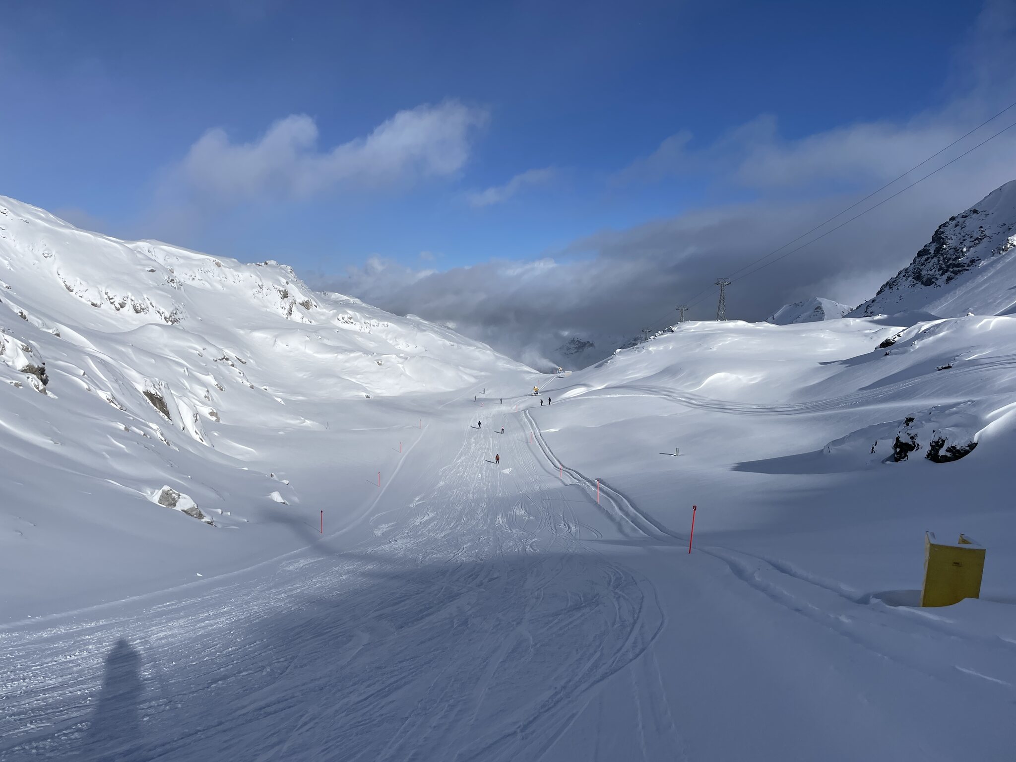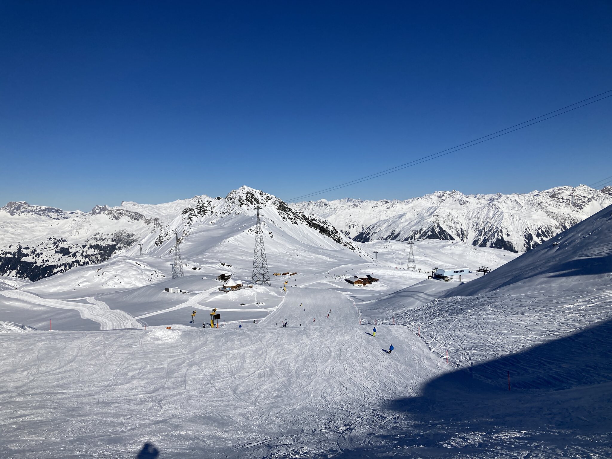 Auf dem Hörnli starten im Winter viele Pisten. Hier zu sehen ist die 2. Und es fällt mir auf, wie schwach frequentiert die Piste an diesem Tag war.