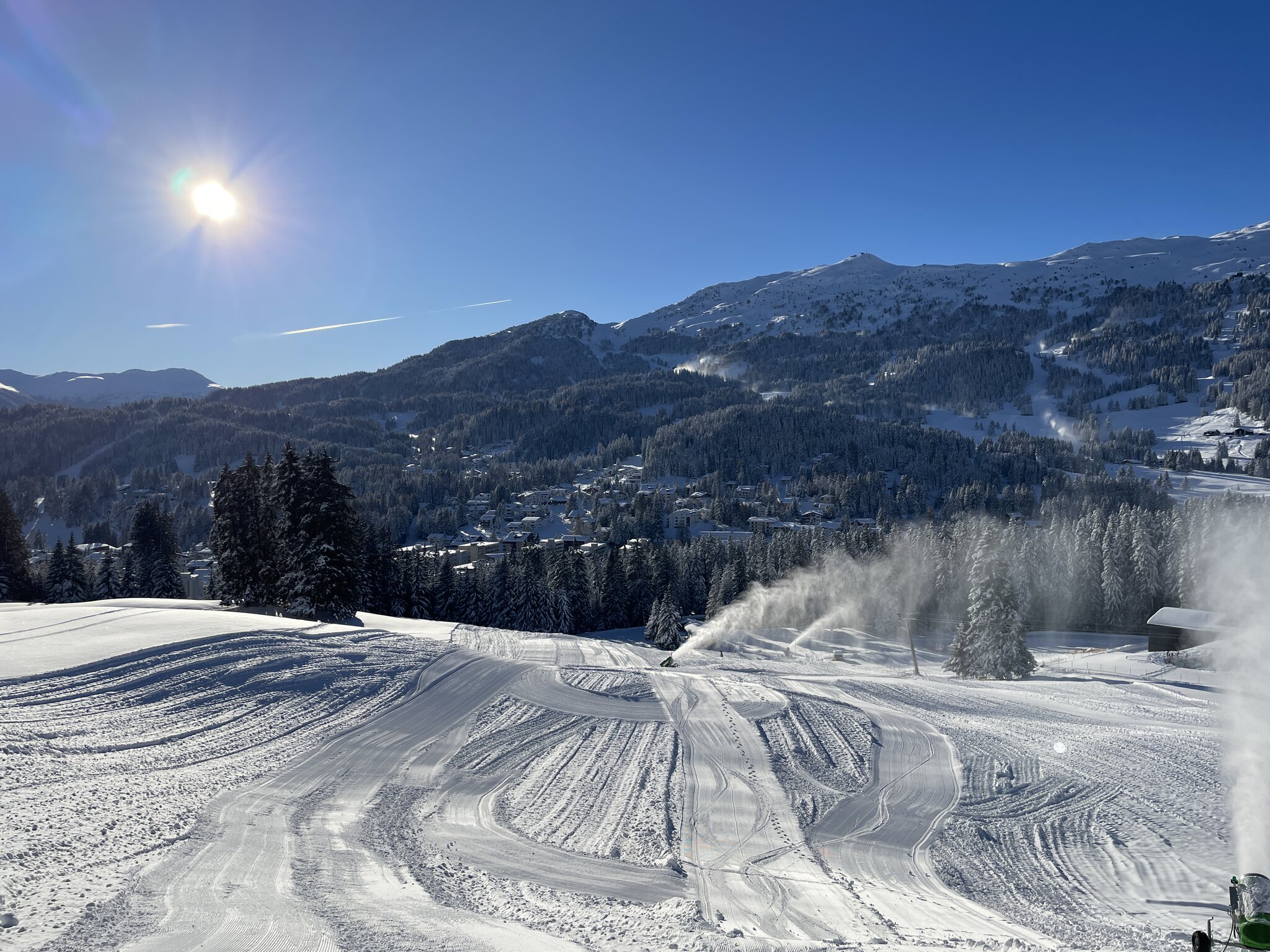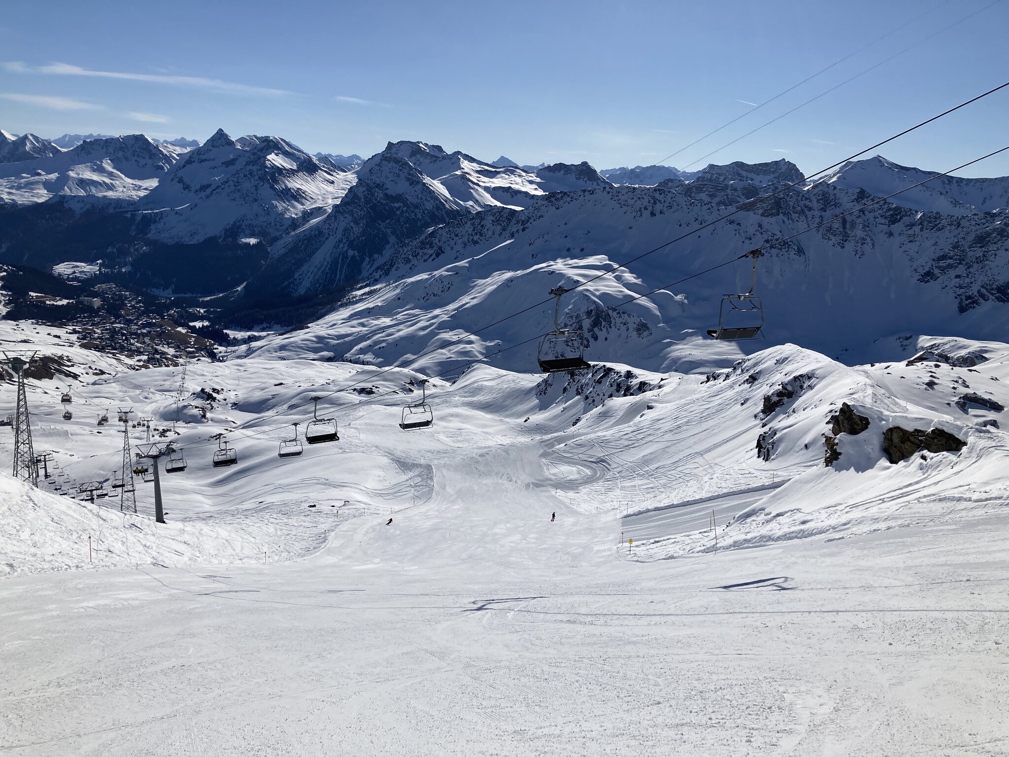 Das Positive in Arosa ist, dass wenn man mit dem Zug ankommt, man sehr schnell in der Gondel und folglich auf dem Berg ist. 20 Minuten nach Ankunft am Bahnhof befinden wir uns bereits auf der Abfahrt zum Hörnliexpress.