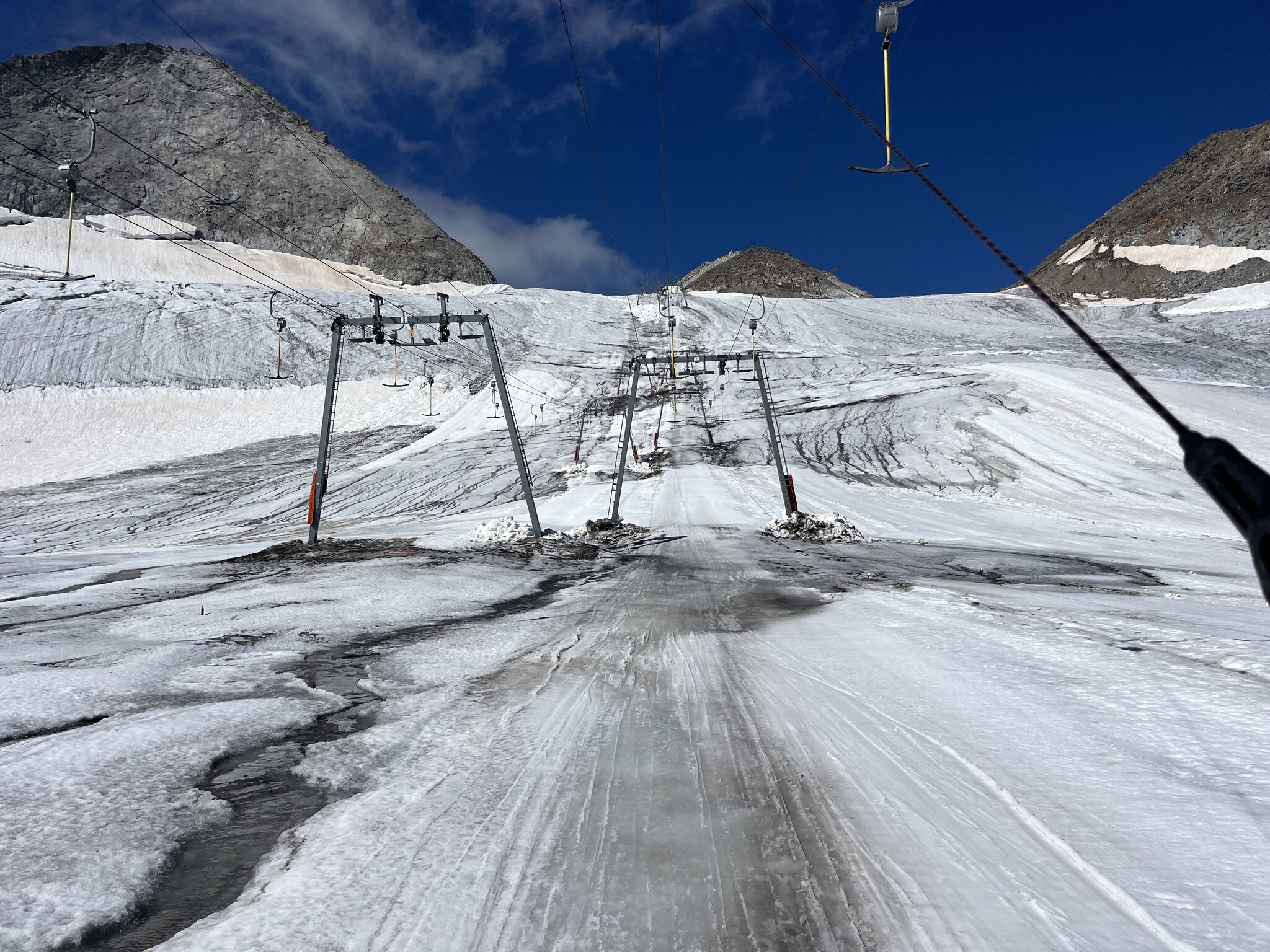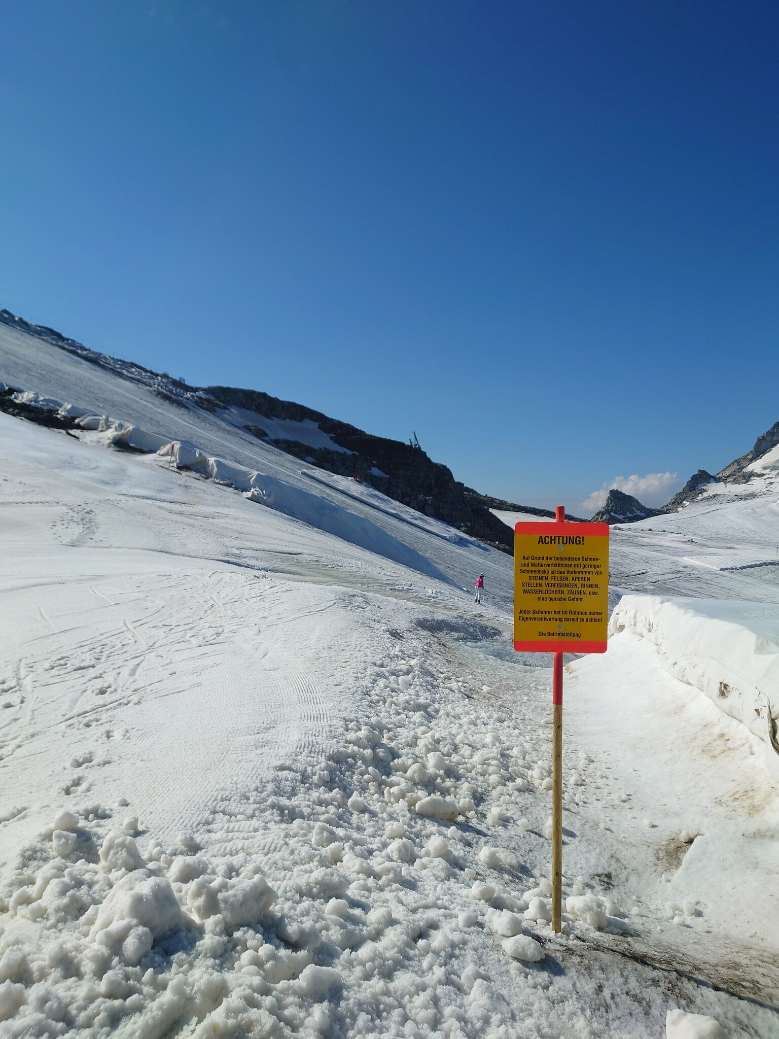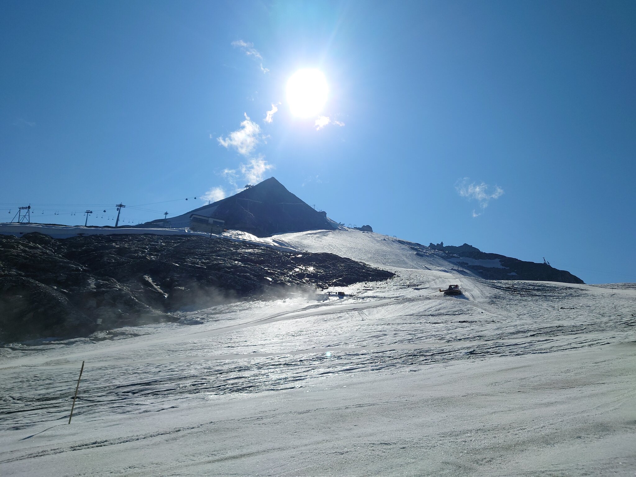 Dann wollen sie wohl wirklich den Schnee für den Herbst bewahren. Die letzten Jahre haben sie es ja bei viel schlechteren Bedingungen noch durchgezogen, aber da gab es auch nichts mehr zu bewahren. Jetzt waren die Pisten noch teilweise sehr gut, teilweise musste man natürlich auf die Wasserrillen aufpassen.