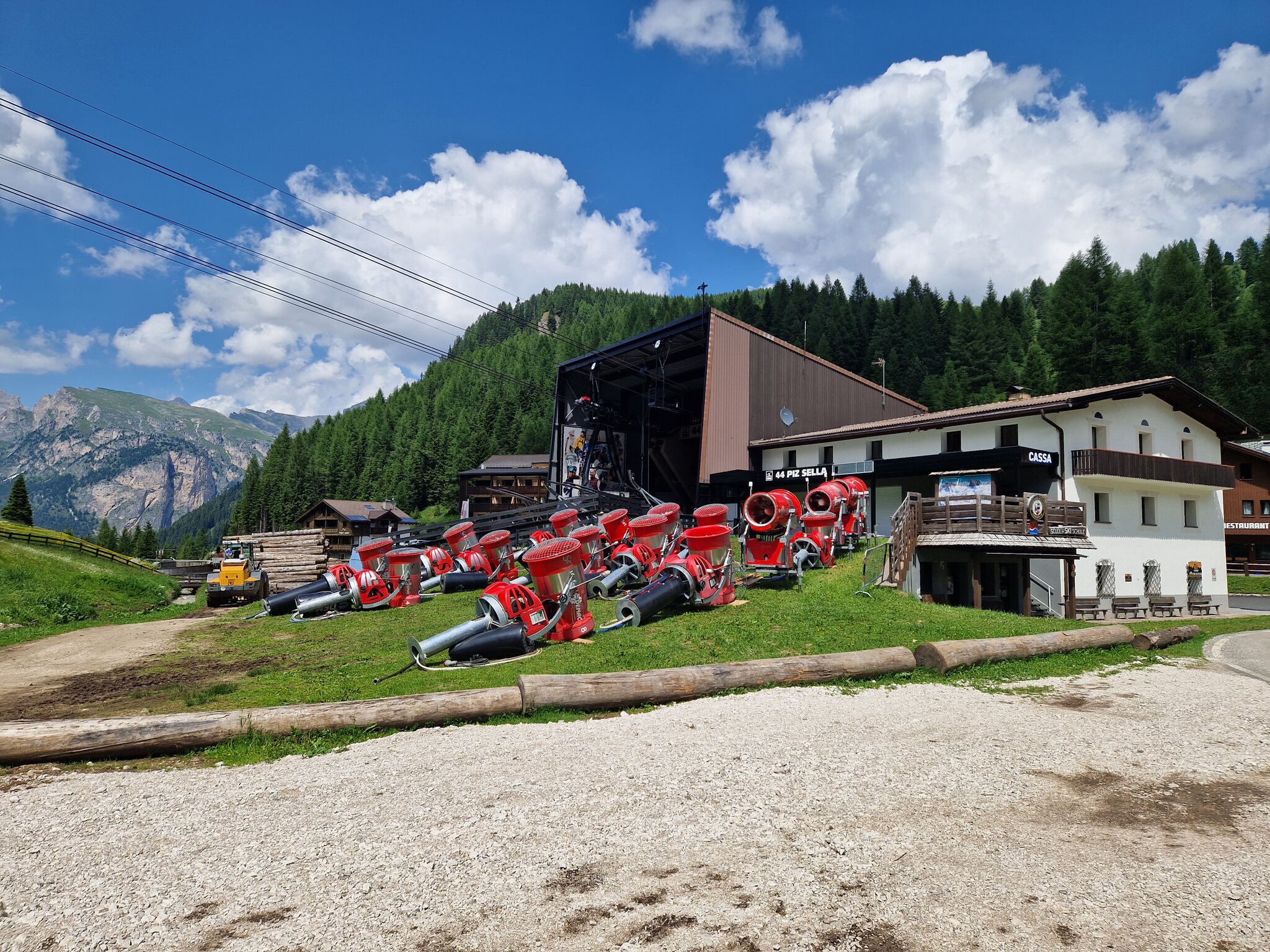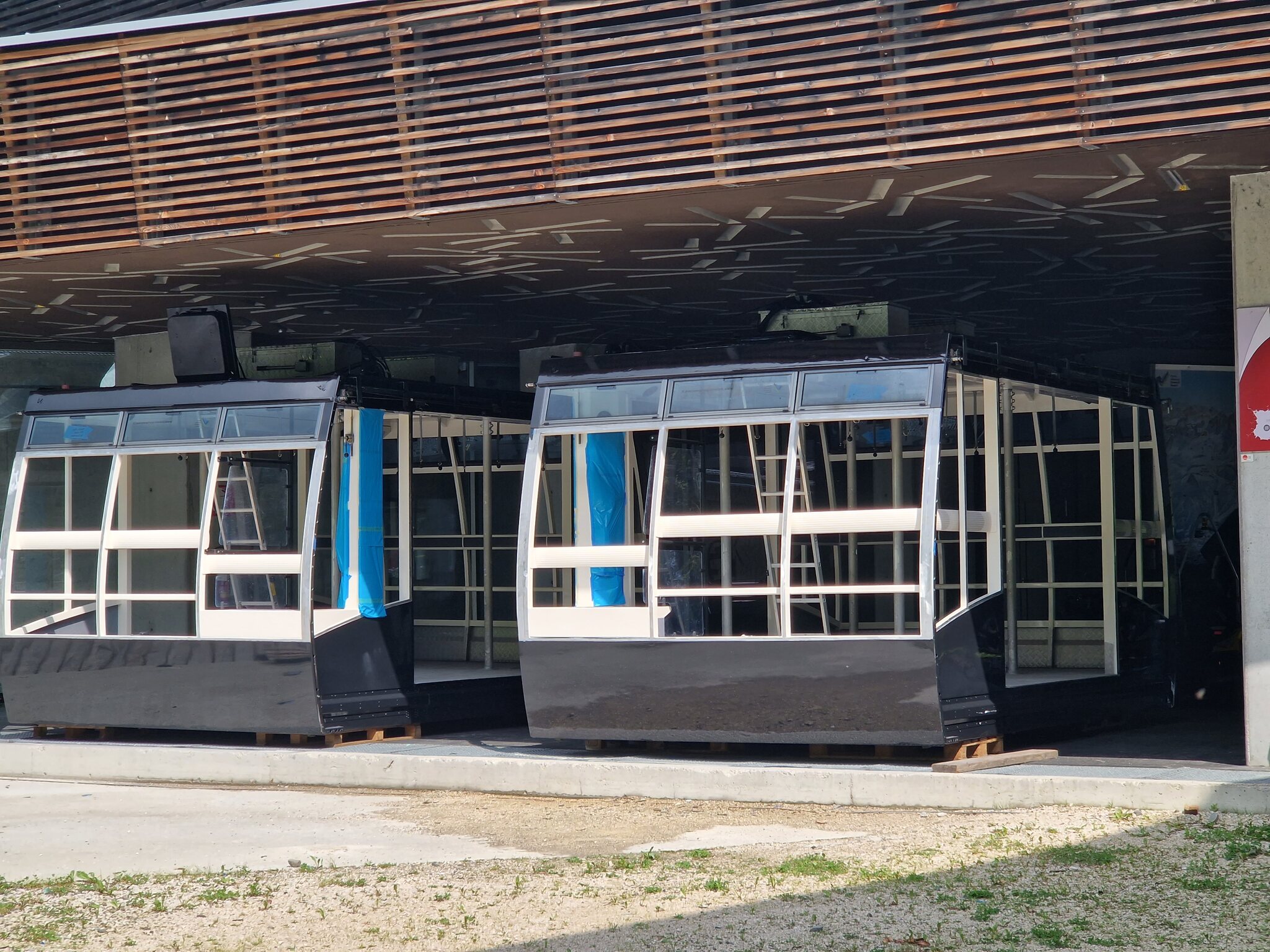 Dort werden die Kabinen des Funifor gerade erneuert Über einen Fahrweg auf der Piste ging es hinauf bis zur Talstation der Fodom EUB.