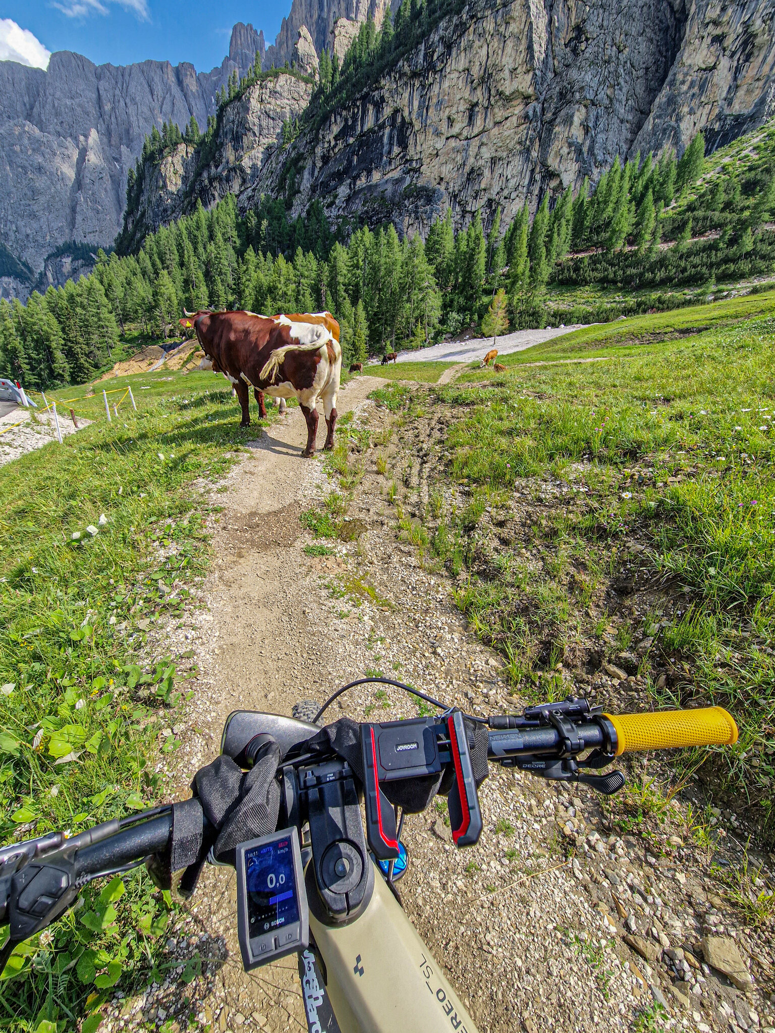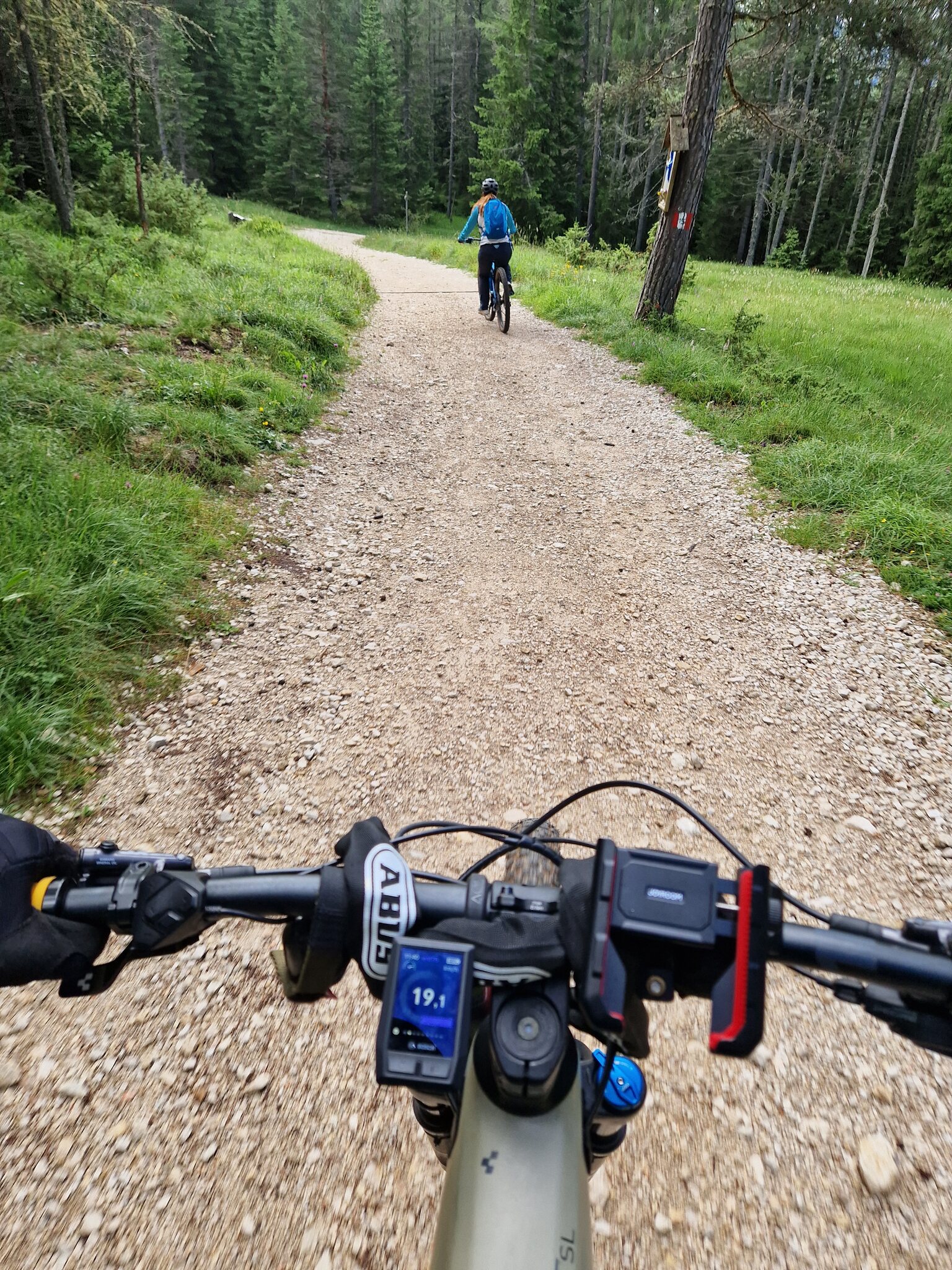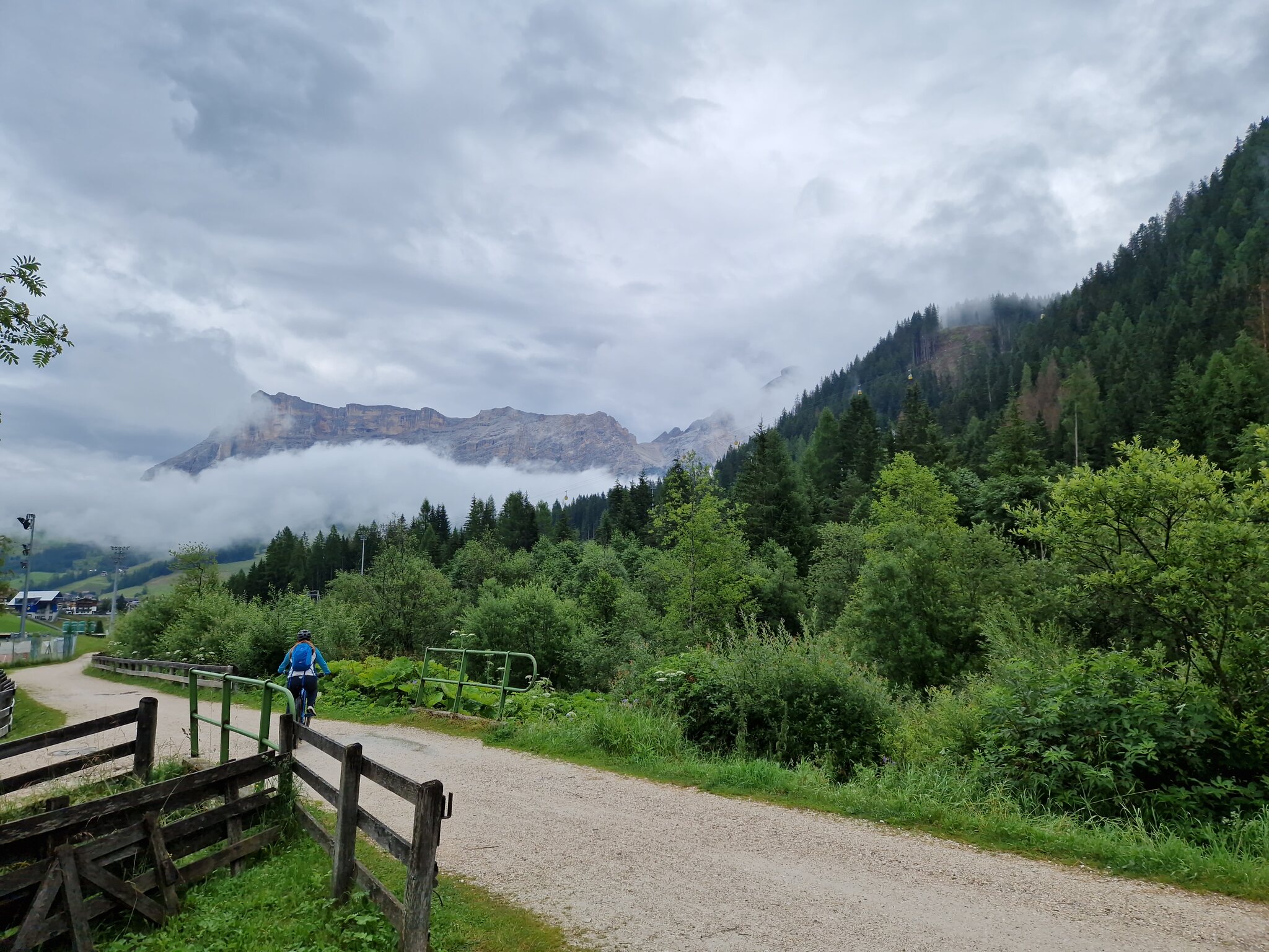 In der Abfahrt vom Campolongo zeigte sich zum ersten mal die Schwäche meiner Planung. Der laut Komoot fahrbare Weg stellte sich mit dem Bike für uns als unpassierbar heraus.