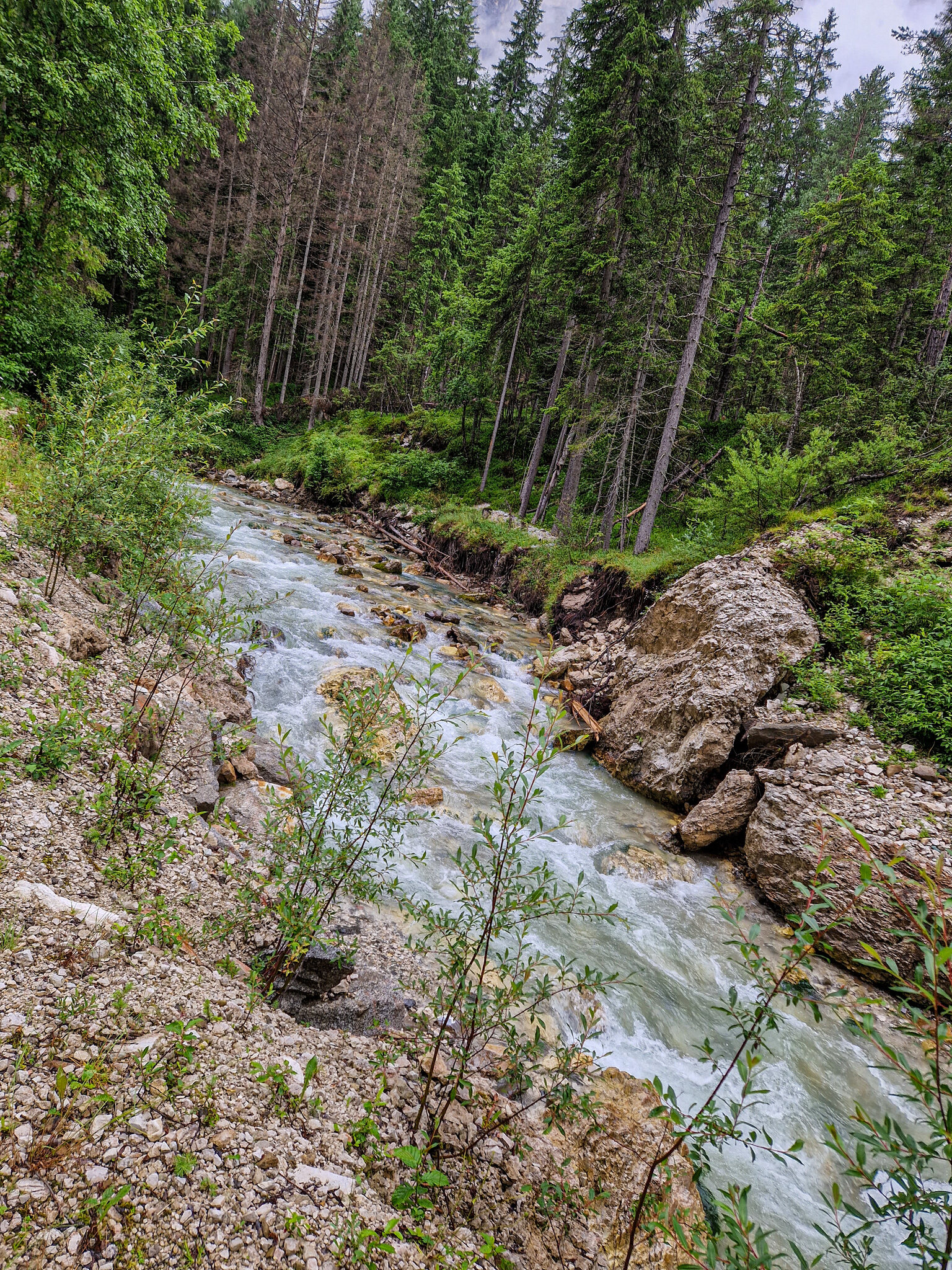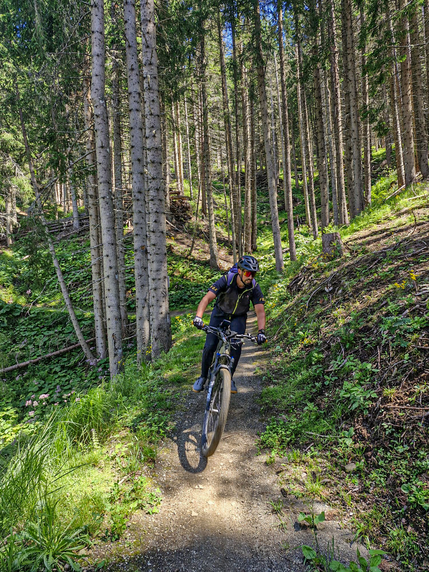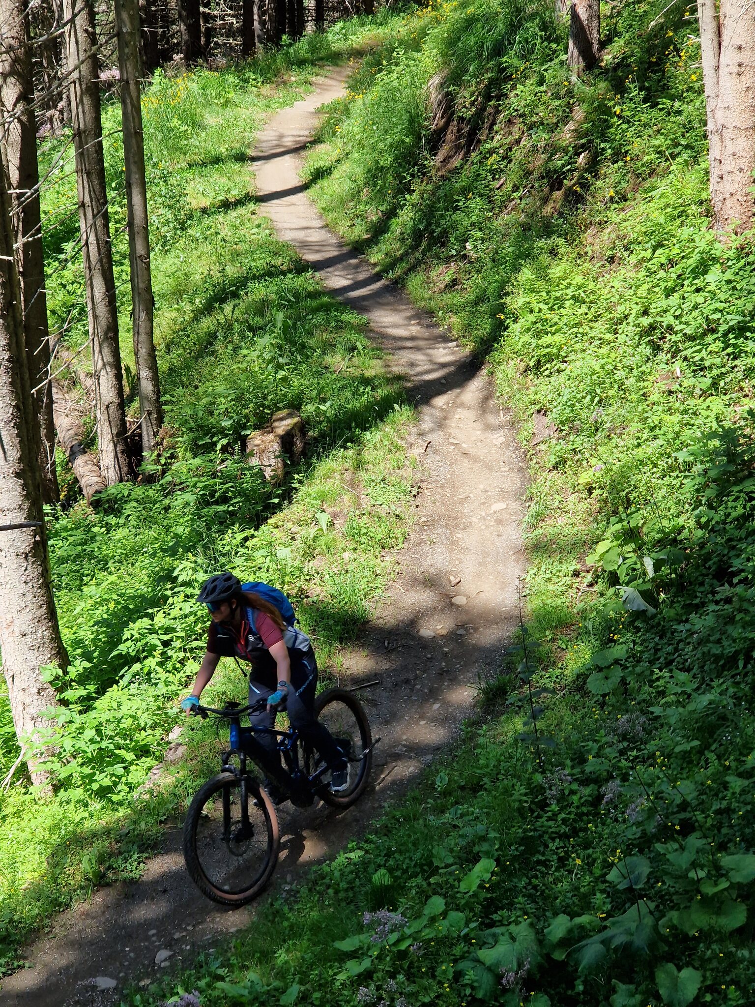In der Abfahrt vom Campolongo zeigte sich zum ersten mal die Schwäche meiner Planung. Der laut Komoot fahrbare Weg stellte sich mit dem Bike für uns als unpassierbar heraus.