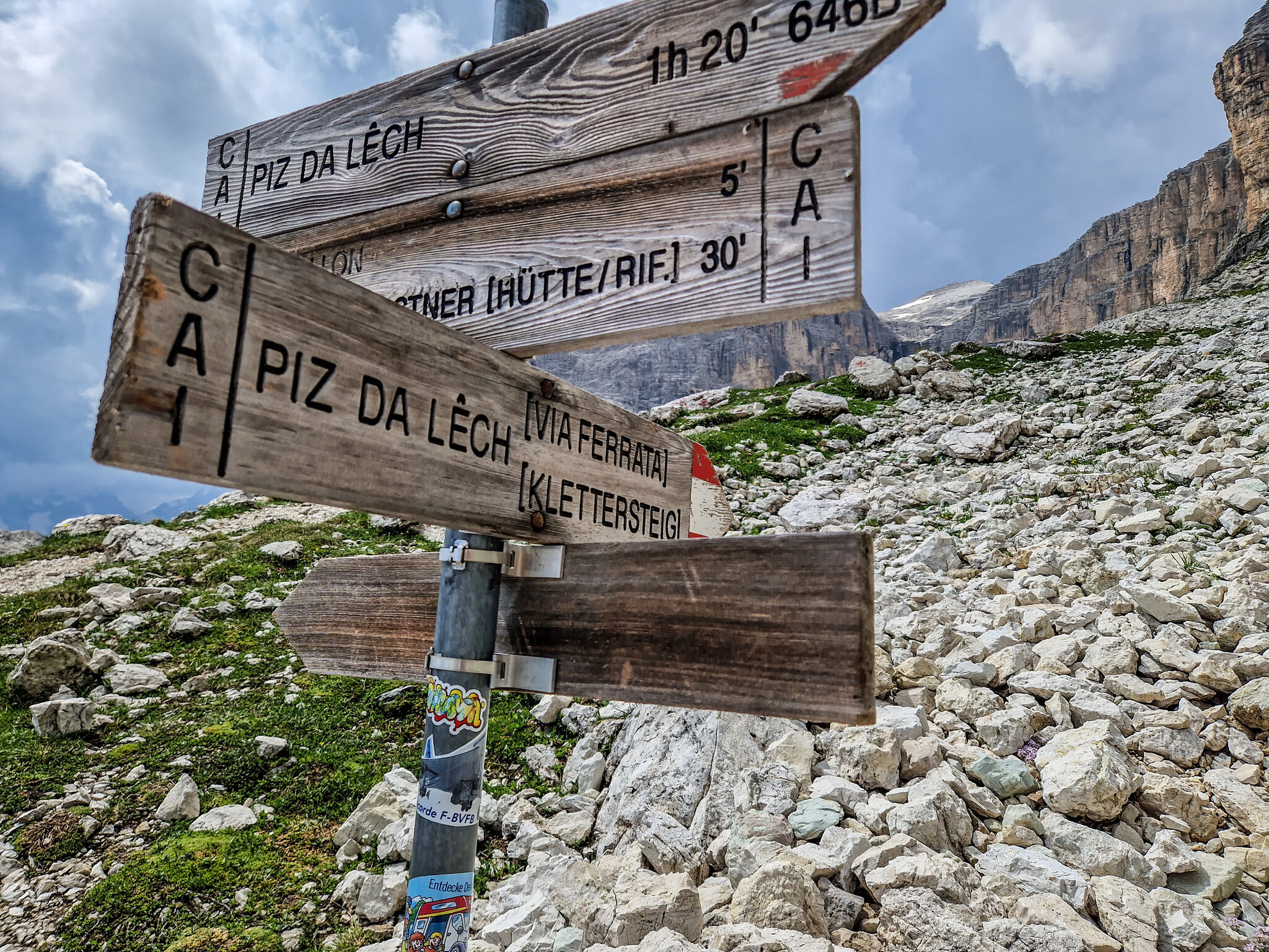 Somit navigierte mich meine geplante Route zunächt zum Rifugio La Marmotta und dann über einen (neuerdings für Bikes gesperrten Trail) zum Campolongo