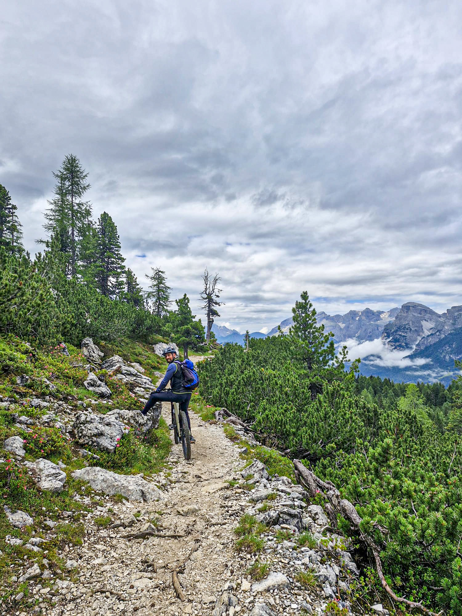 Von da an geht es nur via Passstraße zum Pordoijoch Das lassen wir hinter uns und bewegen uns Richtung Belvedere Doch auch hier müssen wir schnell feststellen, dass der ausgwiesene Trail die Bike-Affinität meiner Begleitung überschreitet und wir die Passstraße bis nach Lupo Bianco nehmen müssen.