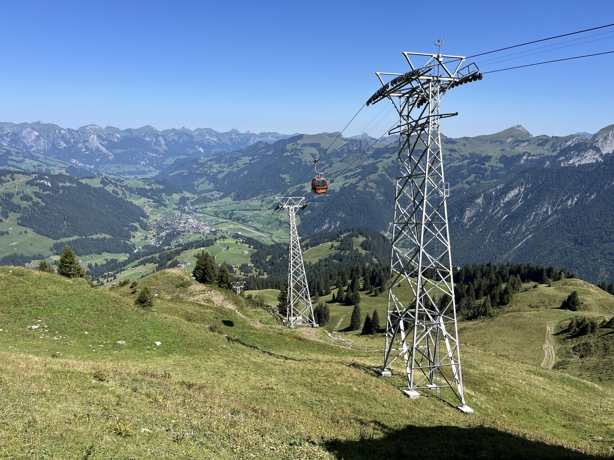 Danach sind es nur noch 20min zur Bergstation der Horneggli 3KSB. Da hat man einen schönen Blick auf den Flugplatz Saanen. Würde sich auch noch für ein Fly&Hike eignen.