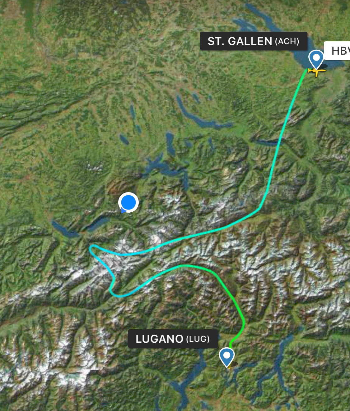 nach Münster (DE) und der zweiten 2023 nach Tanger (Marokko) stand heute ein besonderer Leckerbissen an: Ein VFR-Alpenflug von Altenrhein nach Lugano. Der Pilot, der fast nur IFR fliegt, war heute froh, mich als VFR-„Profi“ dabei zu haben. Die zwei über 90jährigen Passagiere freuten sich riesig über diesen wunderbaren Flug und hatten danach Tränen in den Augen vor Freude. Und ich hatte natürlich auch wieder riesig den Plausch. Ansich alles wie gewohnt, nur viiiiiel schneller: Und oben drauf konnte ich Hin- und Rückweg nach St.Gallen auch über den Luftweg bestreiten. Einfach viiiiiel langsamer.