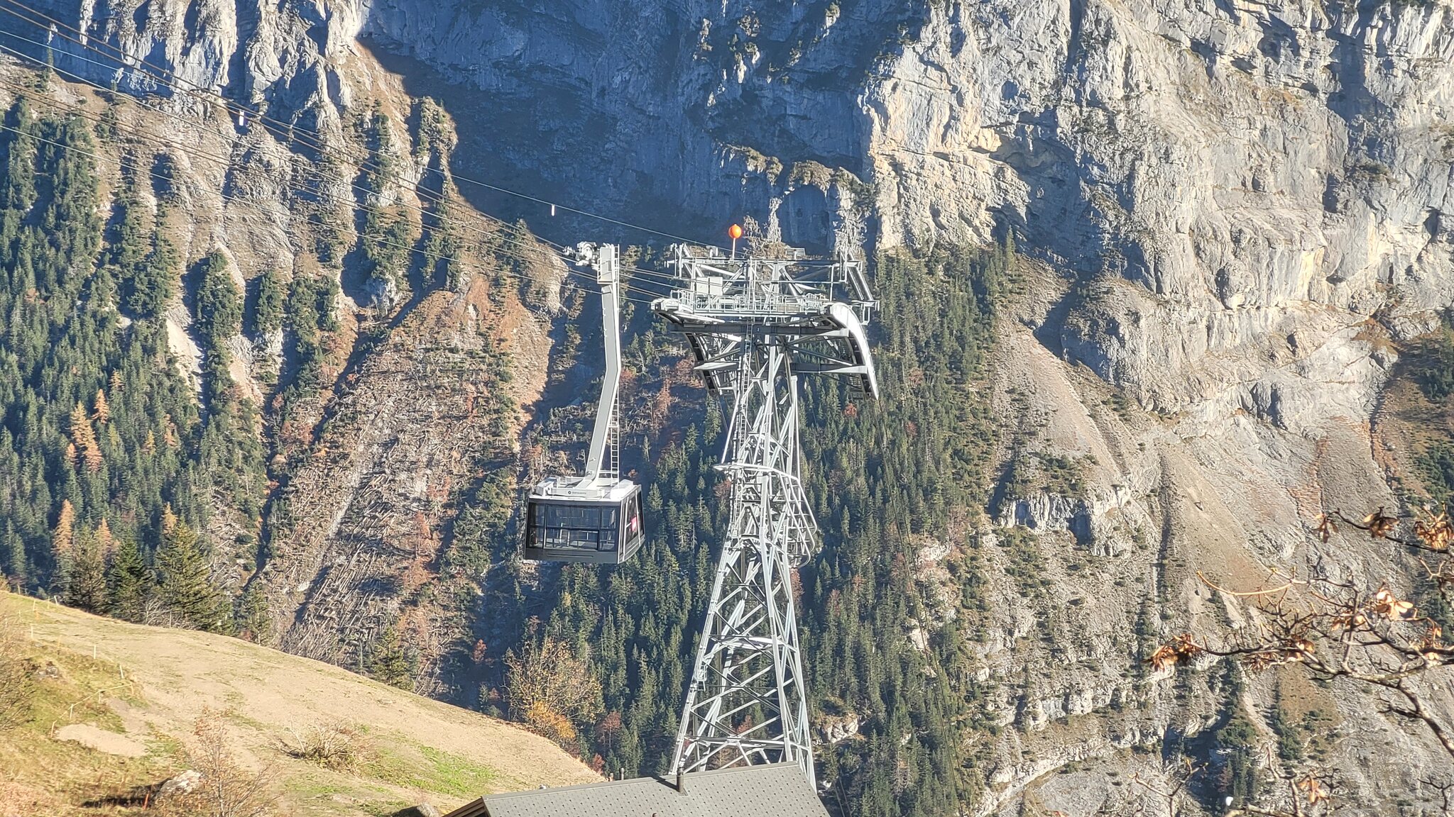 Ansonsten war die Fa Fatzer auf Birg noch am Seil ziehen. Zwischen Birg und Mürren ist die rechte Funi-Spur schon gezogen.