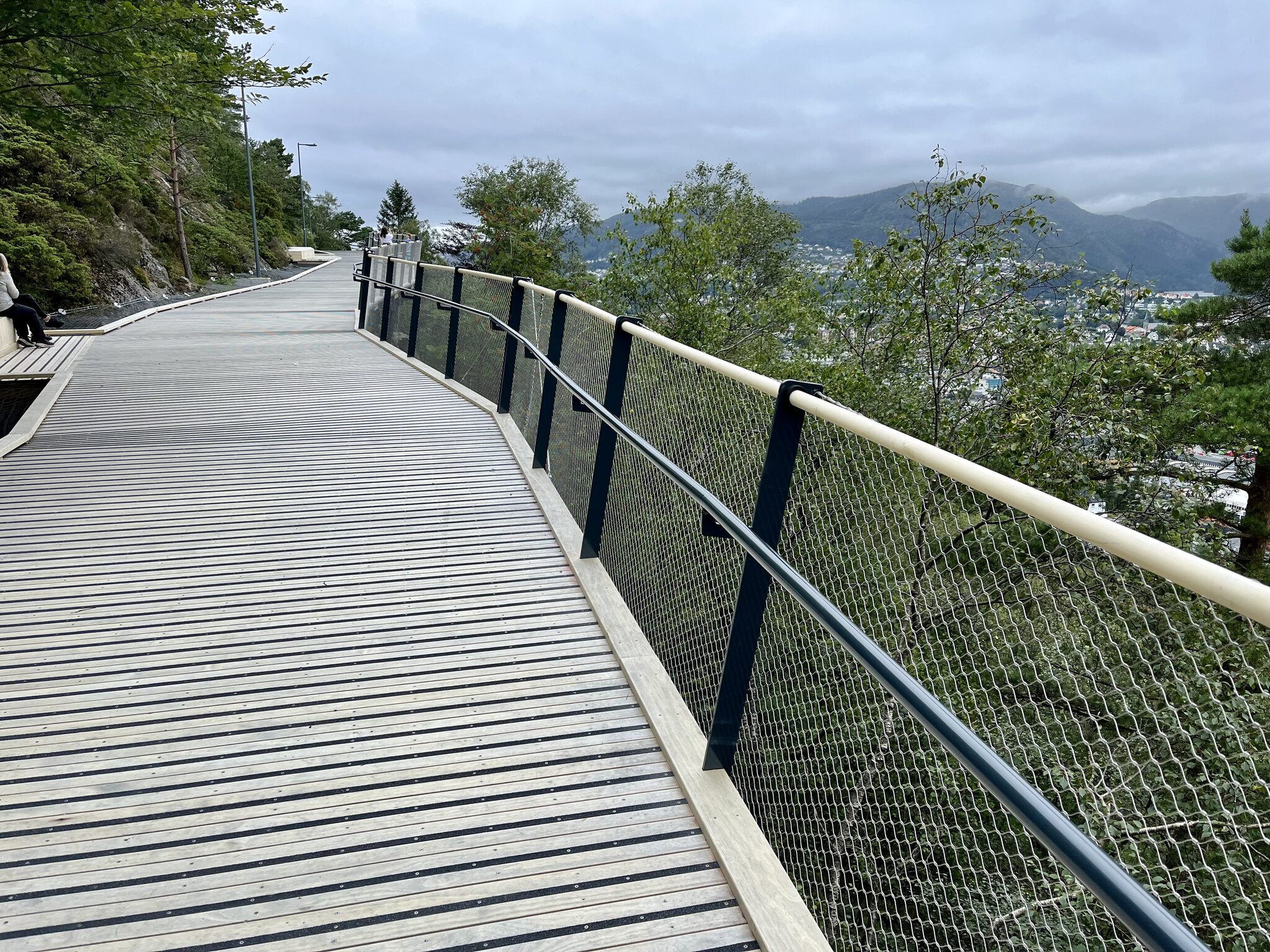 Die Überfahrt mit der Fähre nach Bergen verlief völlig unspektakulär. Inspiriert von Sheridans Norwegen Bericht viewtopic.php?p=19657#p19657 wollten wir in Bergen den Ulriken begehen, da er aber komplett in Wolken gehüllt war, haben wir einen Spaziergang über die für uns neue Løvstien bro gemacht.