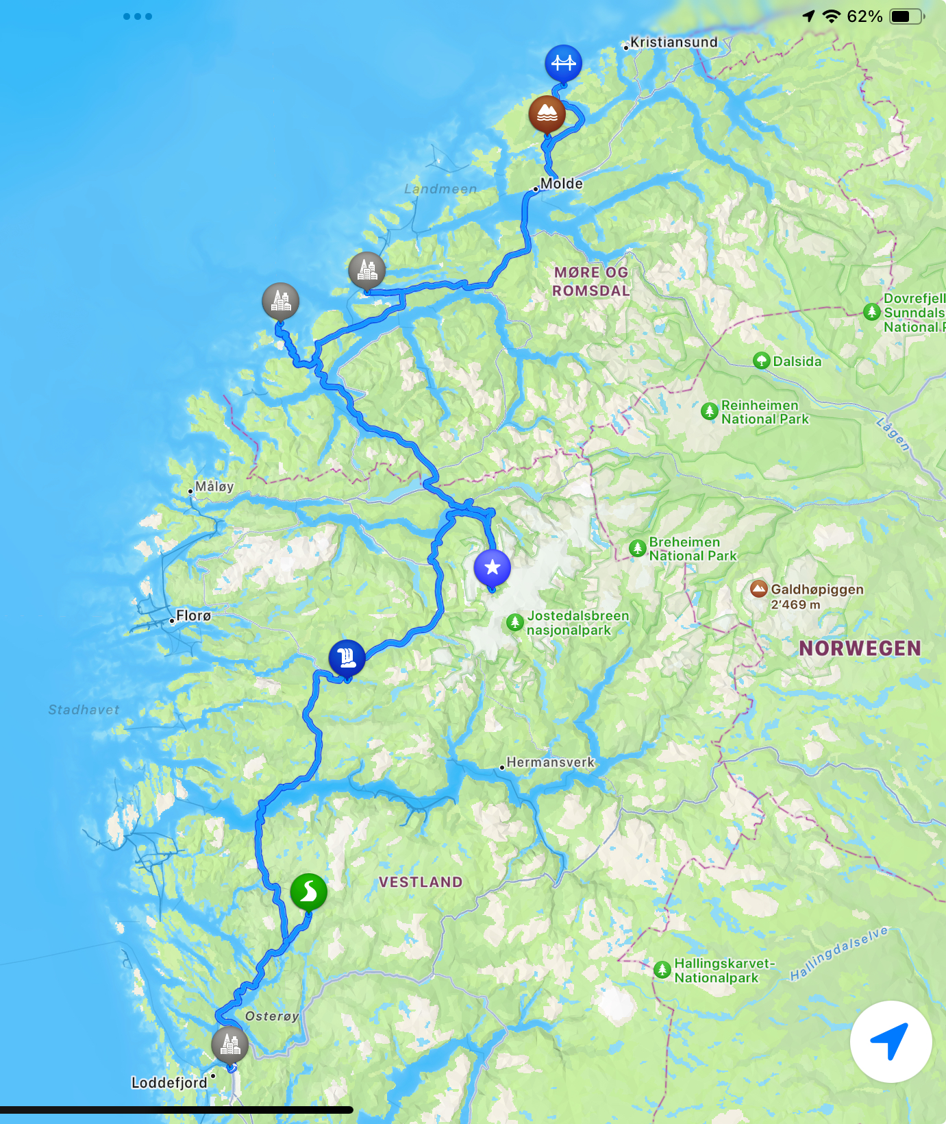3 Wochen mit dem Wohnmobil nordwärts - Huldefossen und Briksdalbreen