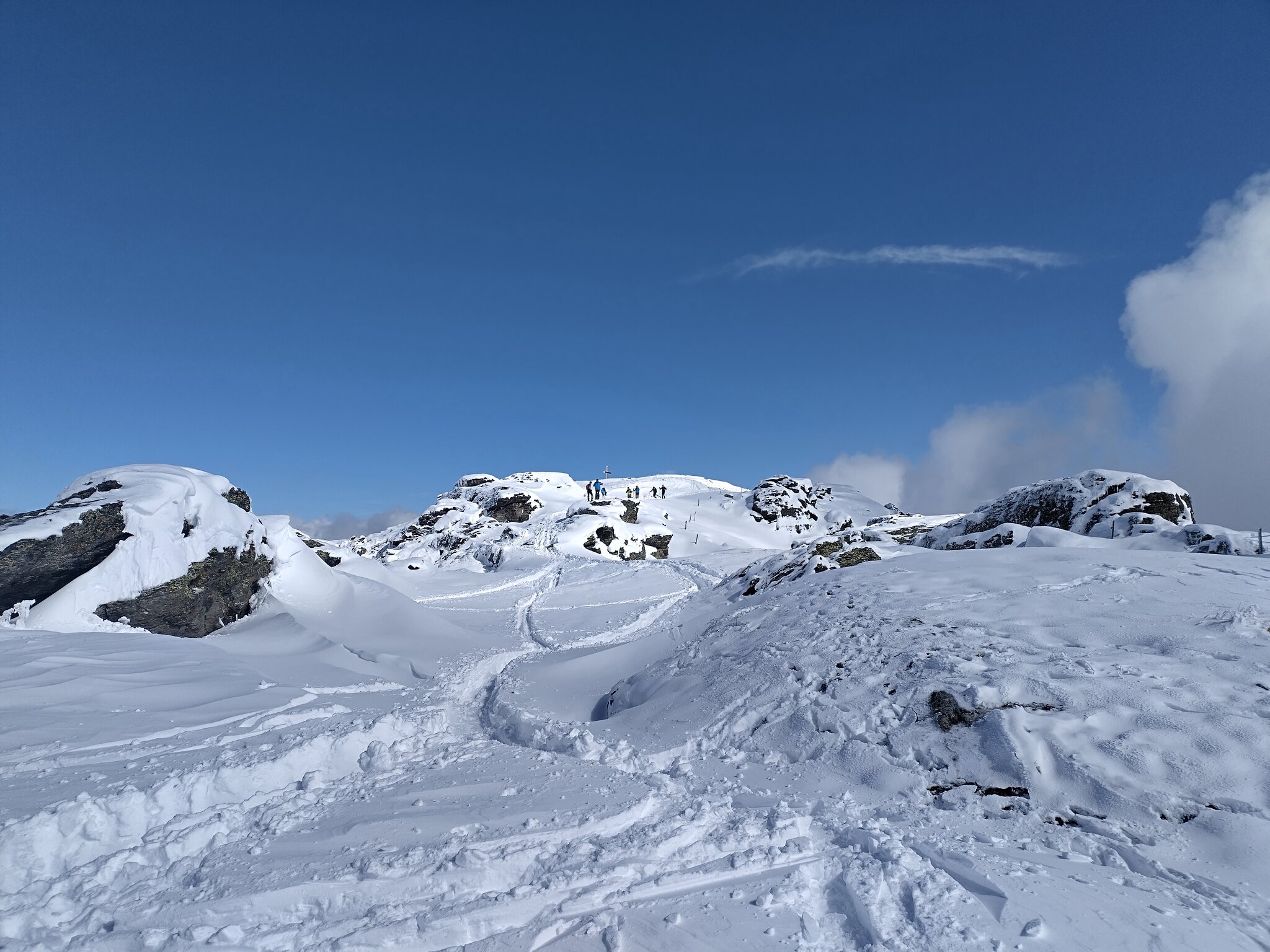 Inzwischen fahren ein paar Skifahrer weiter ab, also beschliesse ich es ihnen gleich zu tun und mein