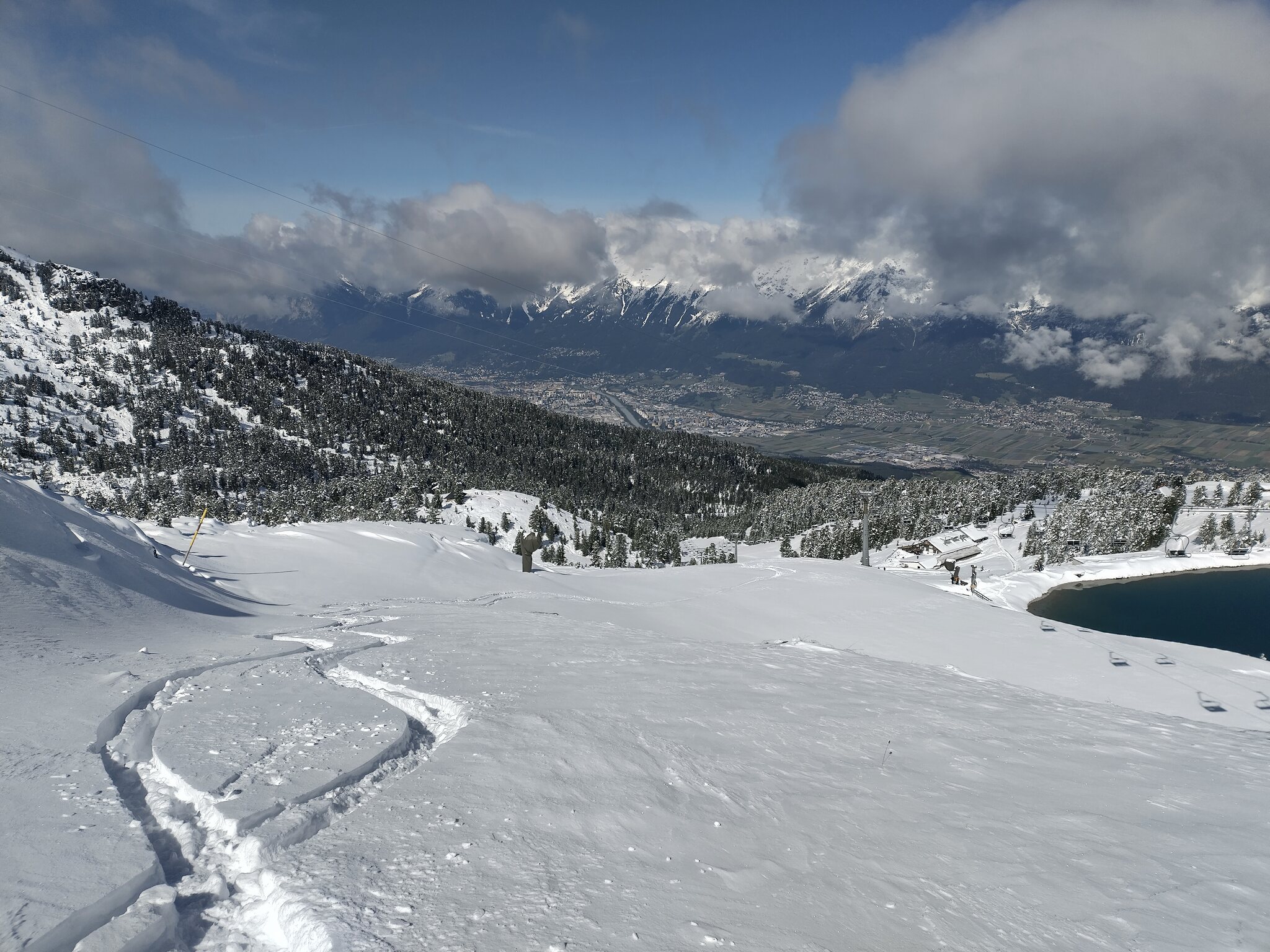Der Schlusshang ist inzwischen auch schon etwas sehr grün, aber gerade noch fahrbar. Ein Photo davon habe ich nicht, es wurde jetzt etwas hektisch damit ich den Bus nach Innsbruck noch erreichen konnte.