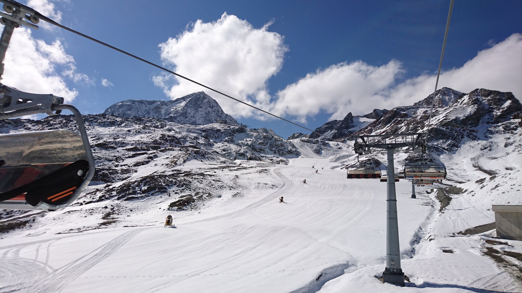 sie hatten bereits die Schneekanonen an der Abfahrt zur Mittelstation zur Dresdner Hütte laufen lassen,