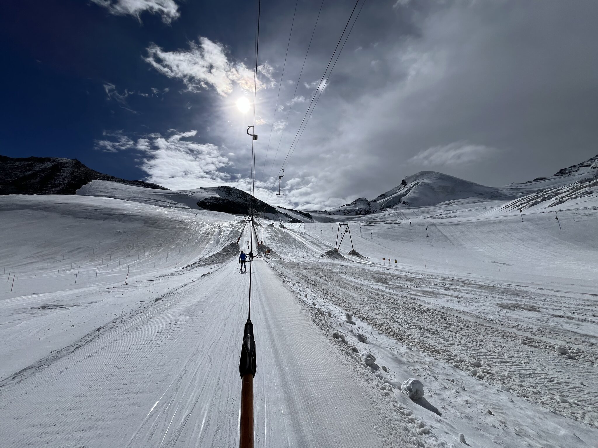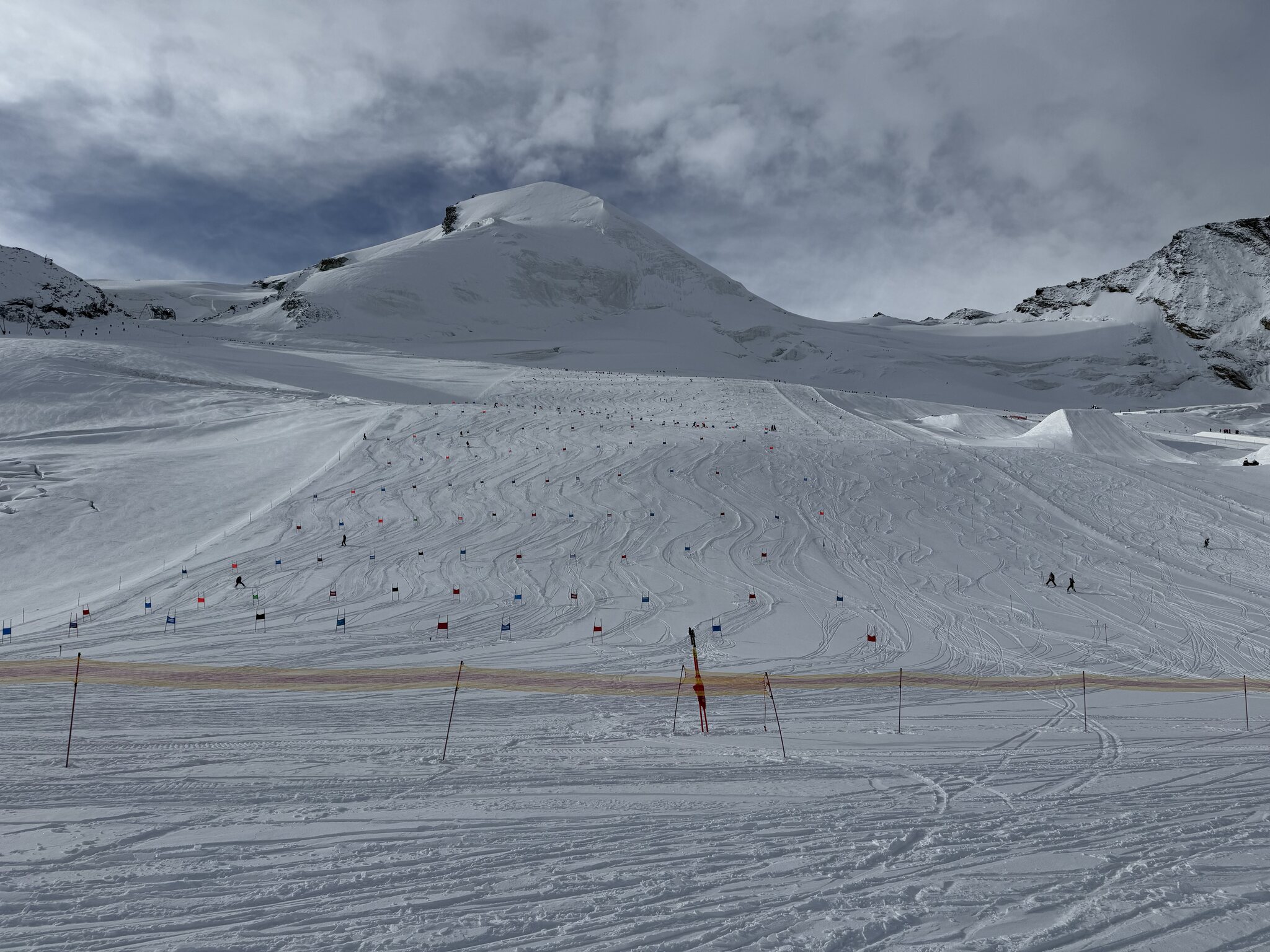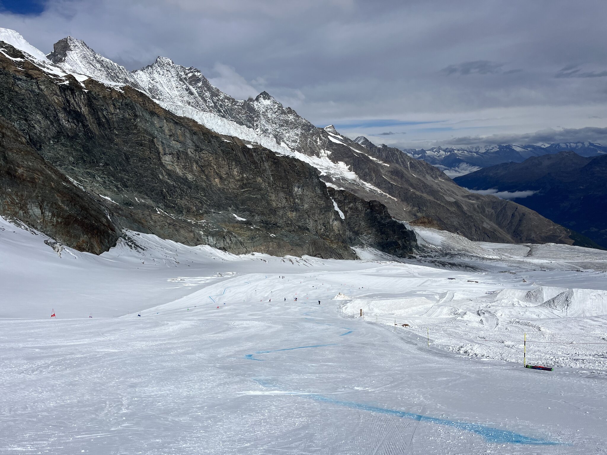 Wegen den vielen Skiteams sind am oberen Allalin nur 2 Pisten offen, am unteren sogar nur eine. Das Schweizer Frauen Speed-Team ist am trainieren, die Männer sind noch in Chile.