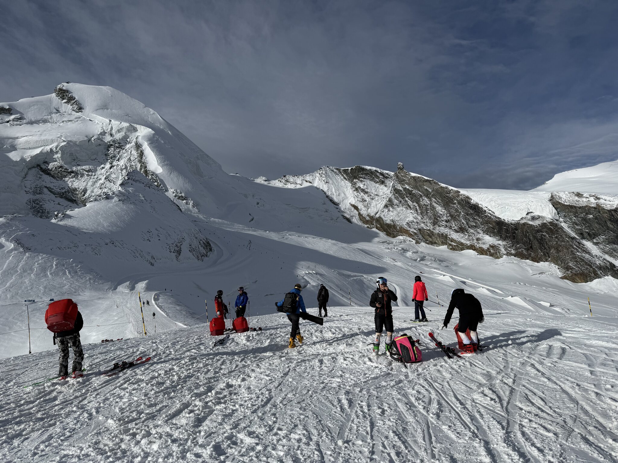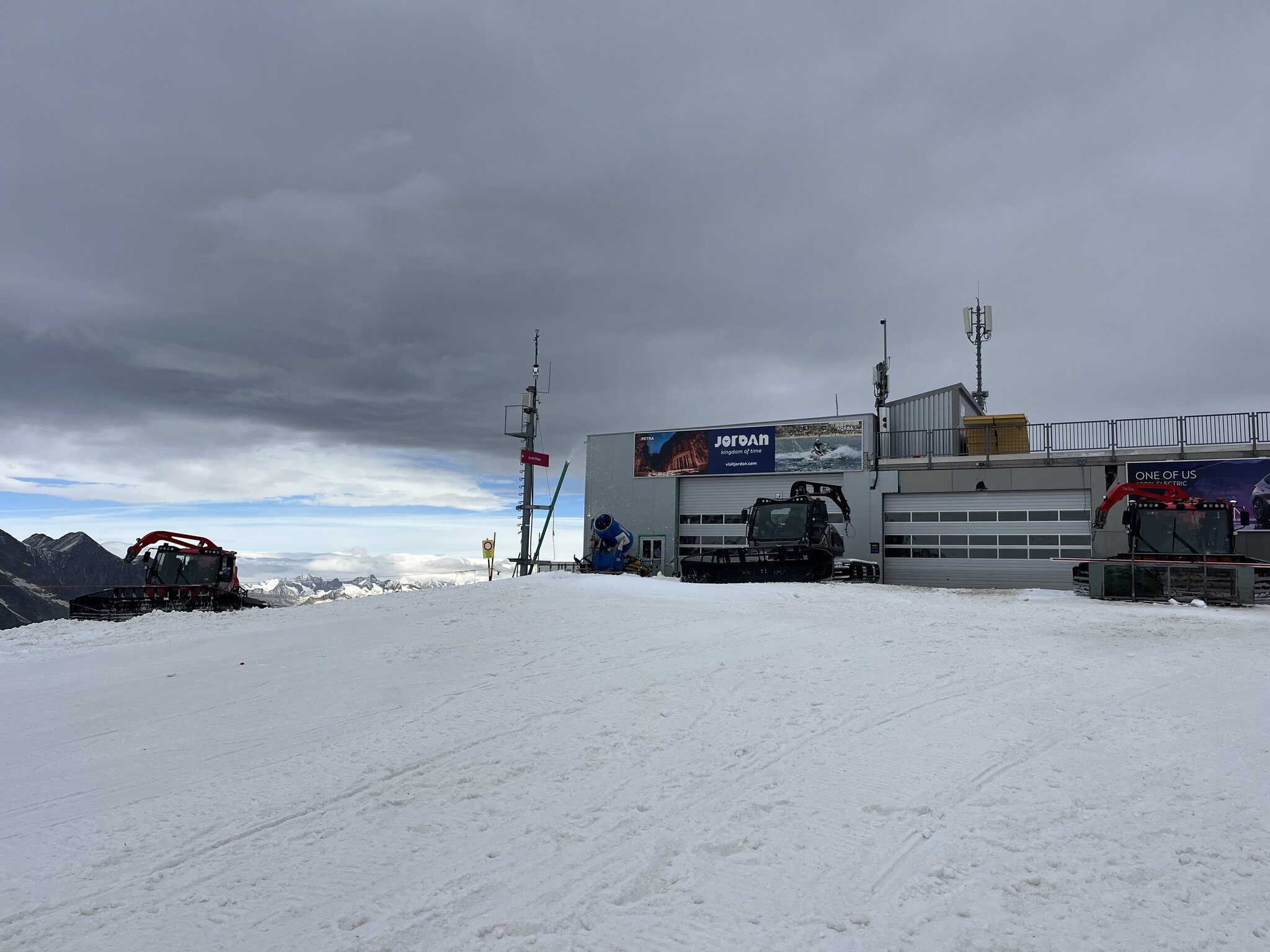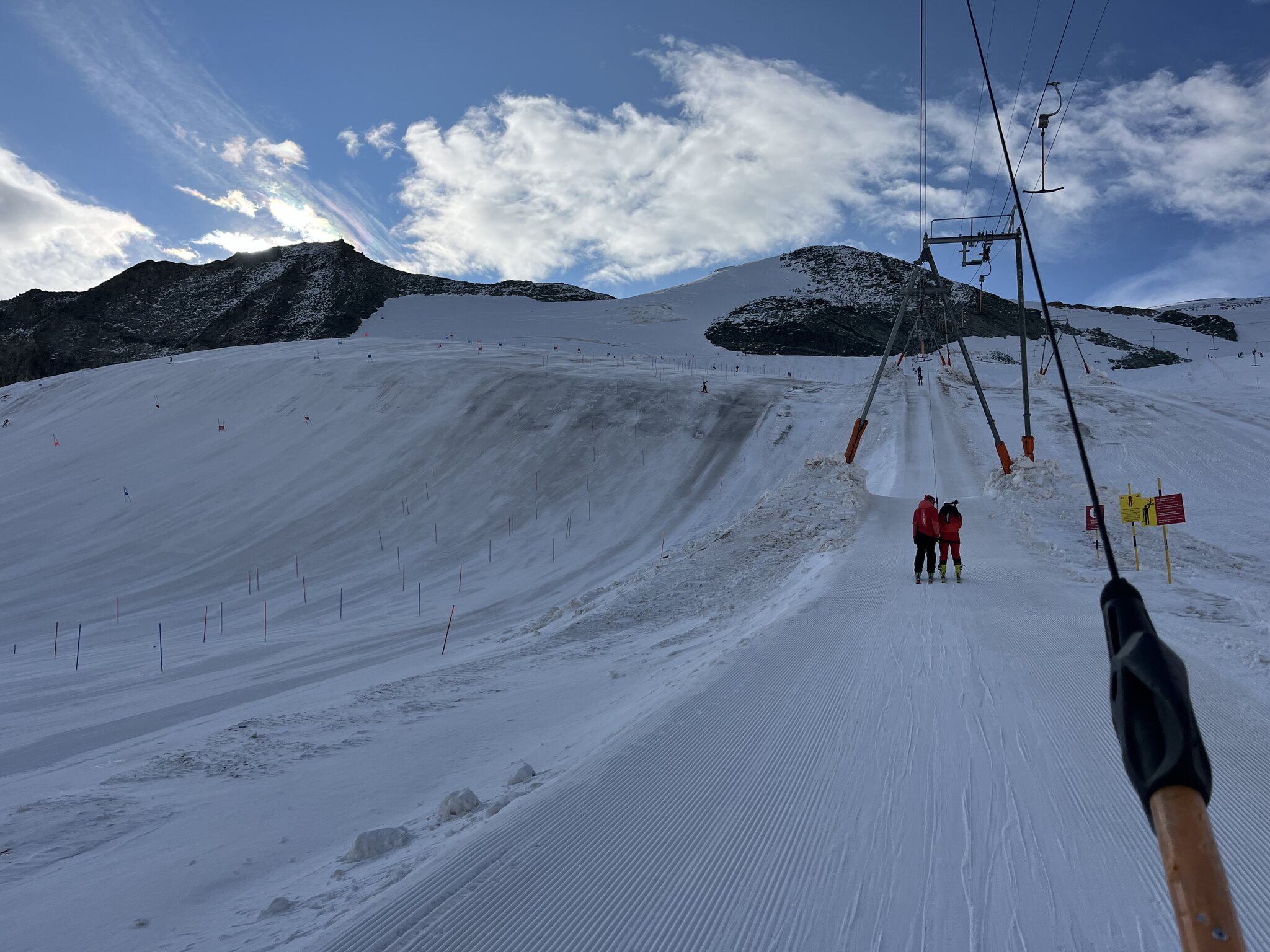 Wegen den vielen Skiteams sind am oberen Allalin nur 2 Pisten offen, am unteren sogar nur eine. Das Schweizer Frauen Speed-Team ist am trainieren, die Männer sind noch in Chile.