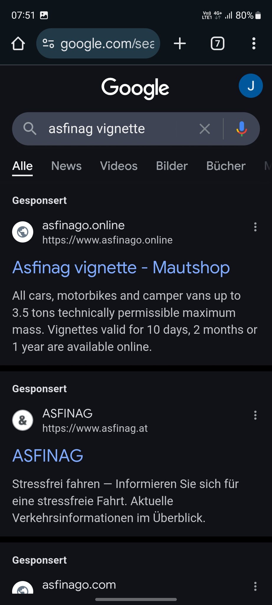 Bei meiner letzten Österreich-Tour ist mir aufgefallen, dass das 1. und 3. Suchresultat auf Google mit "asfinag vignette" eine Scammer-Seite ist, die die originale Seite täuschend echt nachgebaut haben. Das Original ist ausschließlich unter