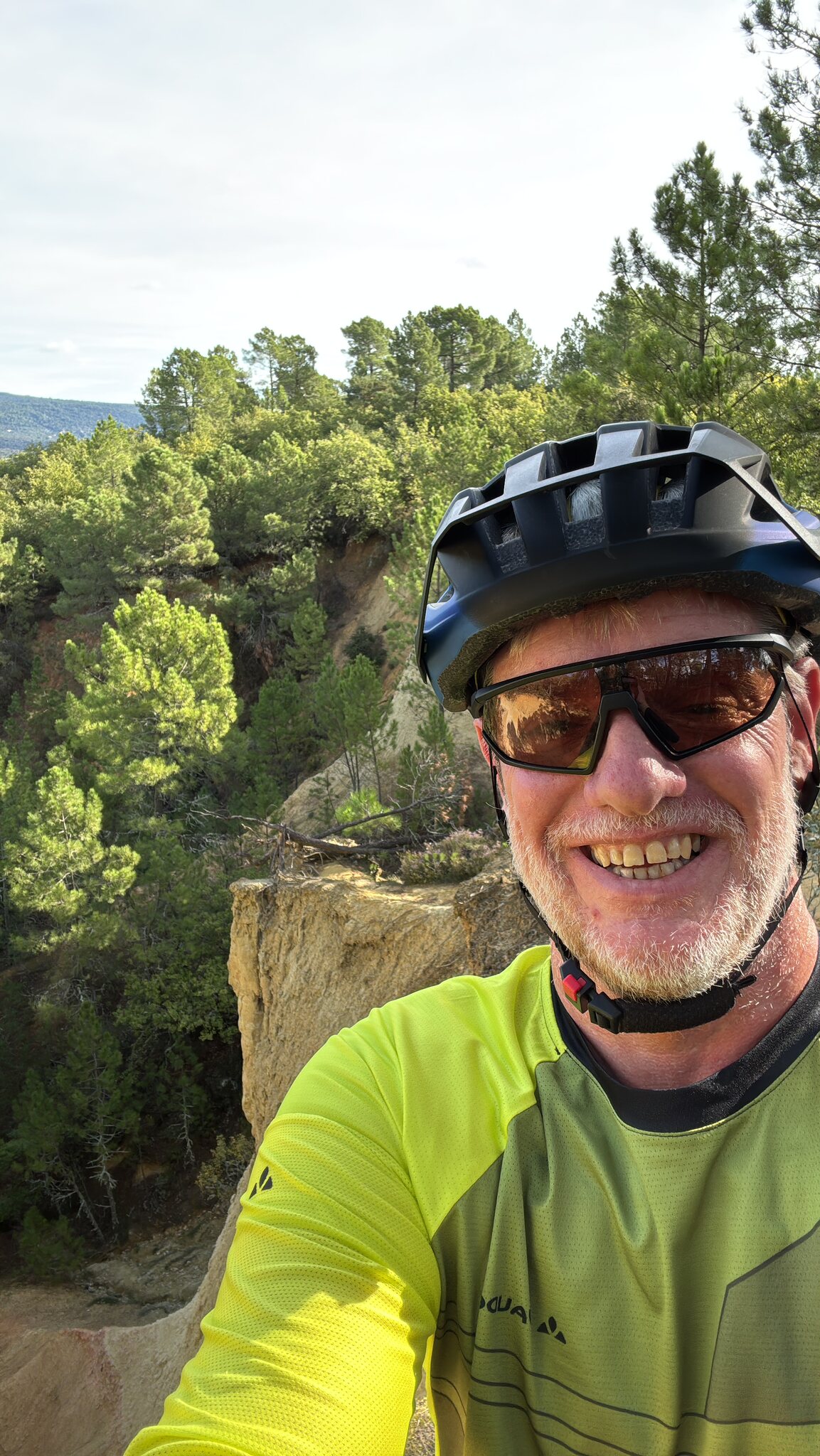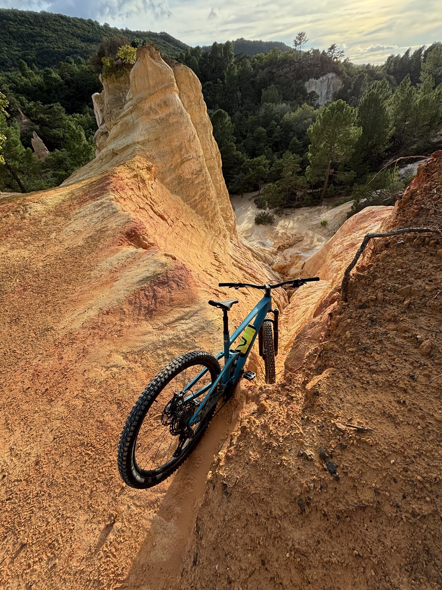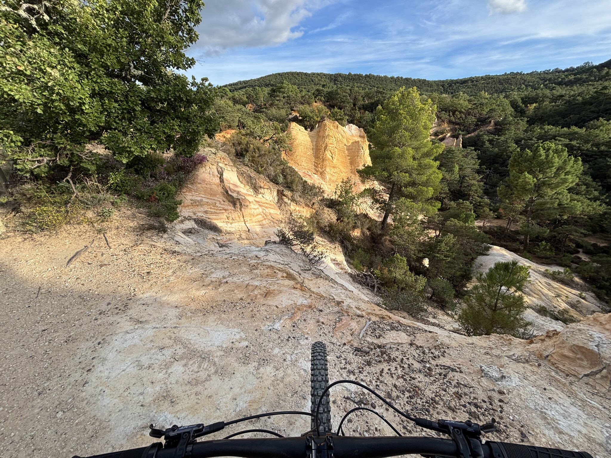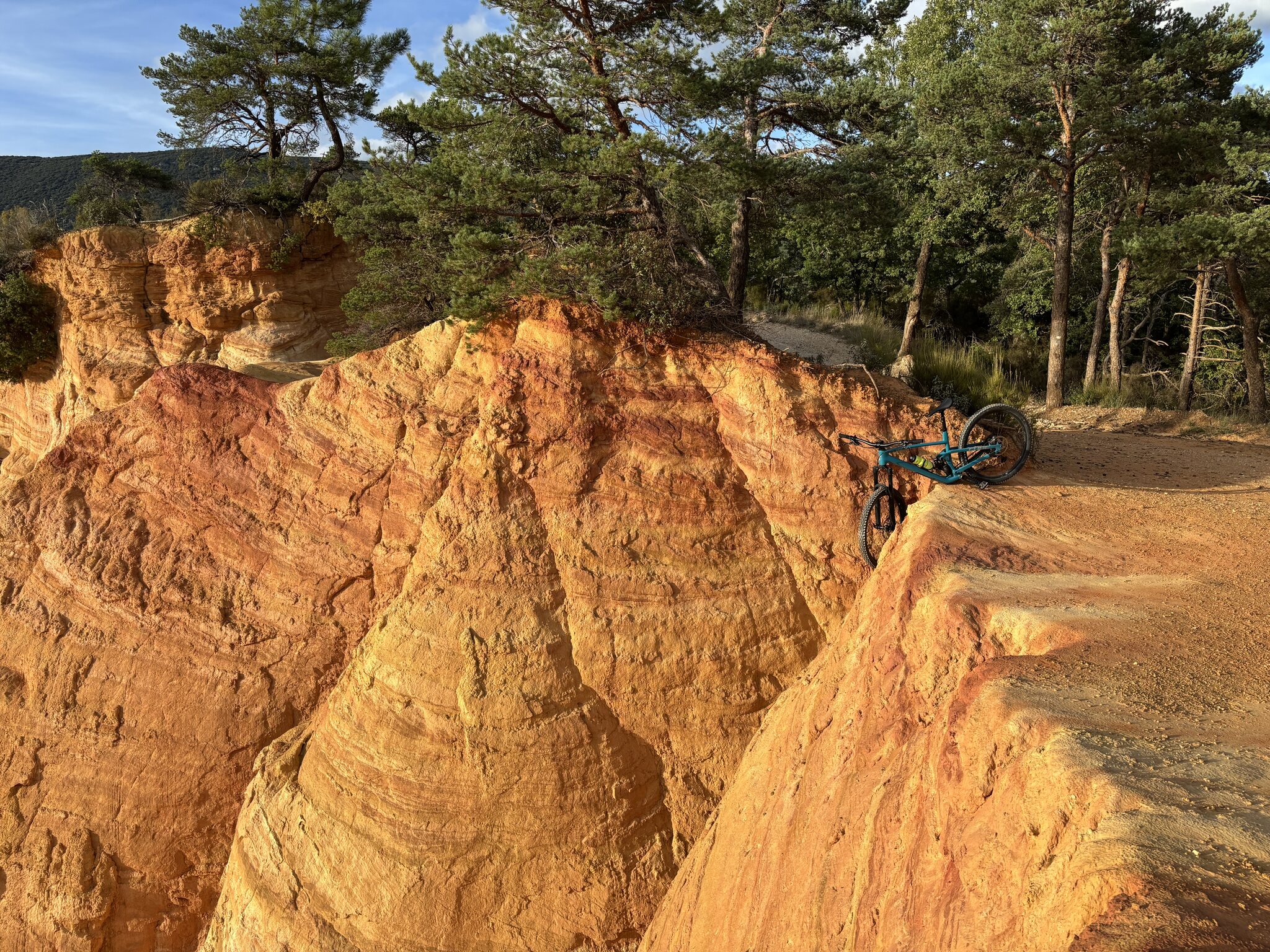 habe ich nach einigem auf und ab mein Ziel erreicht. Das Gebiet des Colorado Provençal ist in Privatbesitz und man muss Eintritt bezahlen wenn man zu Fuss direkt an die Felsen gehen möchte. Es führt aber auch eine offizielle Radroute aussen herum, von wo man die Ockerfelsen von oben betrachten kann.