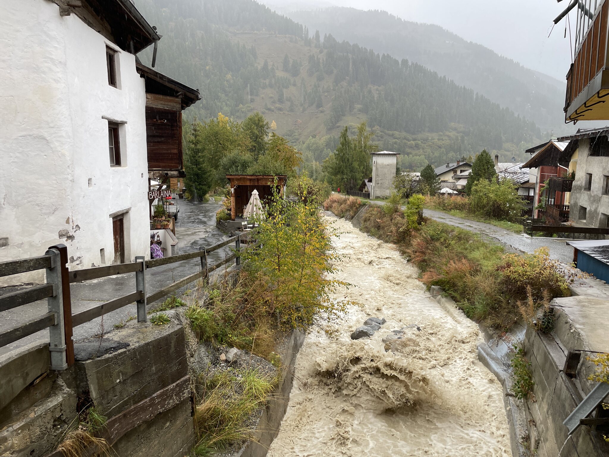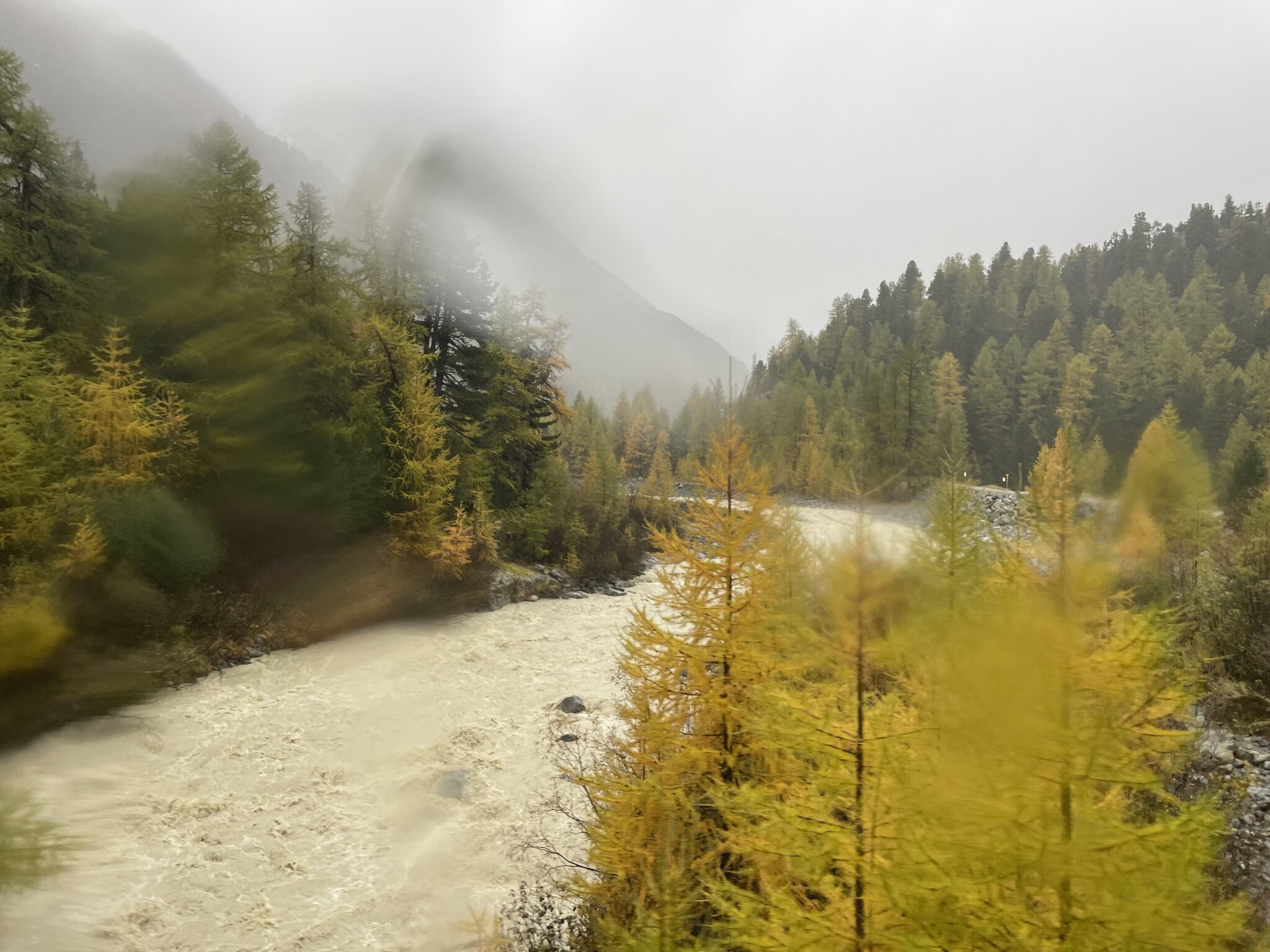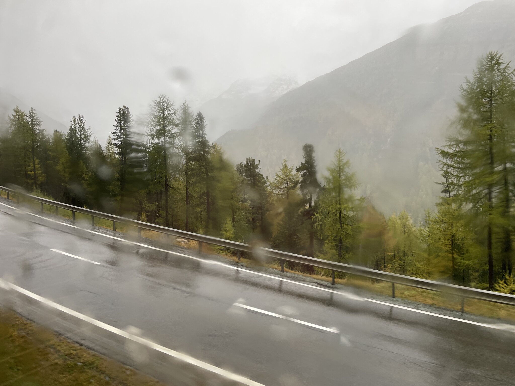 Nicht zu früh, dafür bei strömendem Regen, machten wir uns zu Fuss auf zur Post Lenzerheide, wo das Postauto nach Tiefencastel fuhr. Der Regen sollte heute ein konstanter Begleiter bleiben.