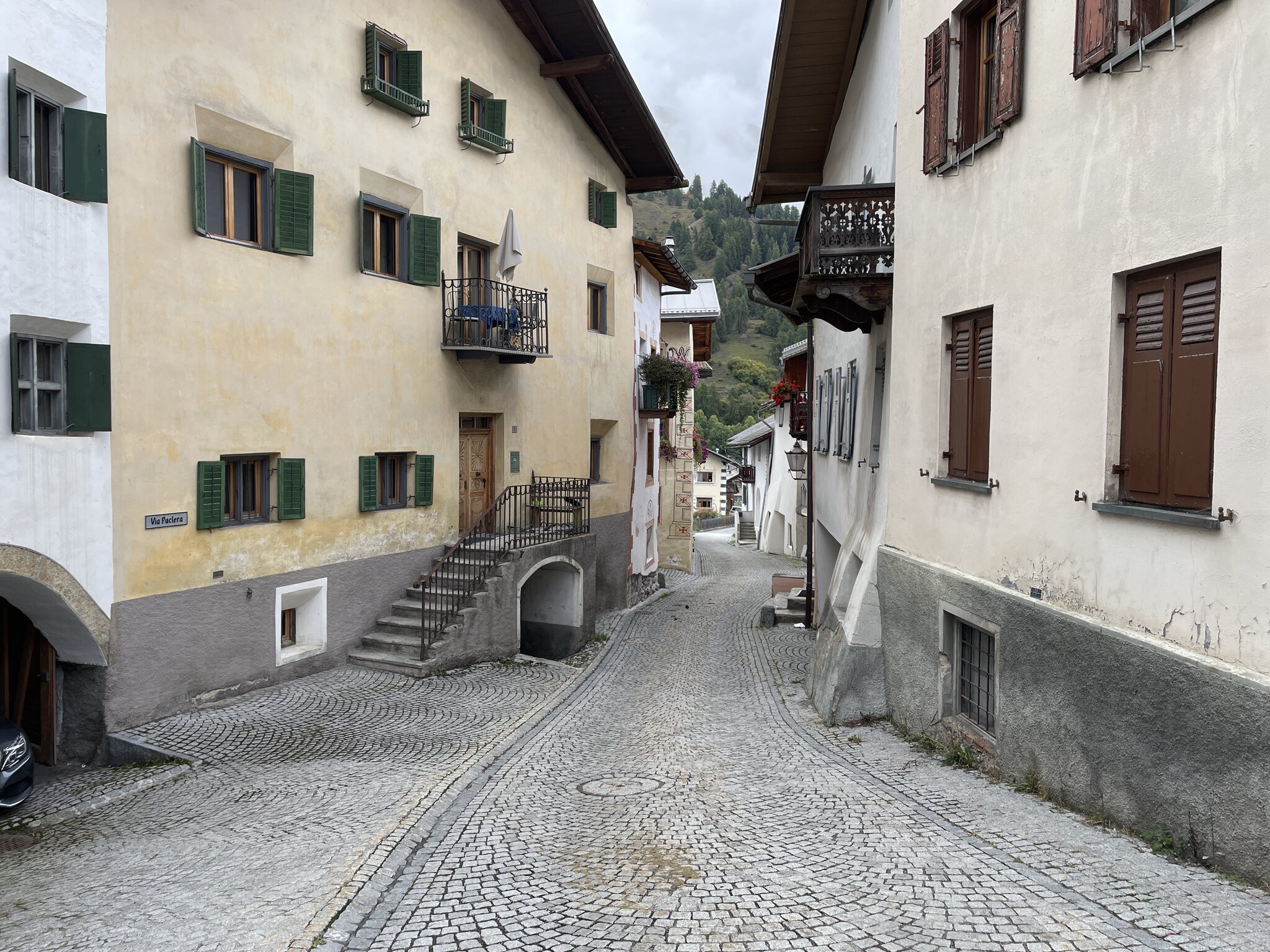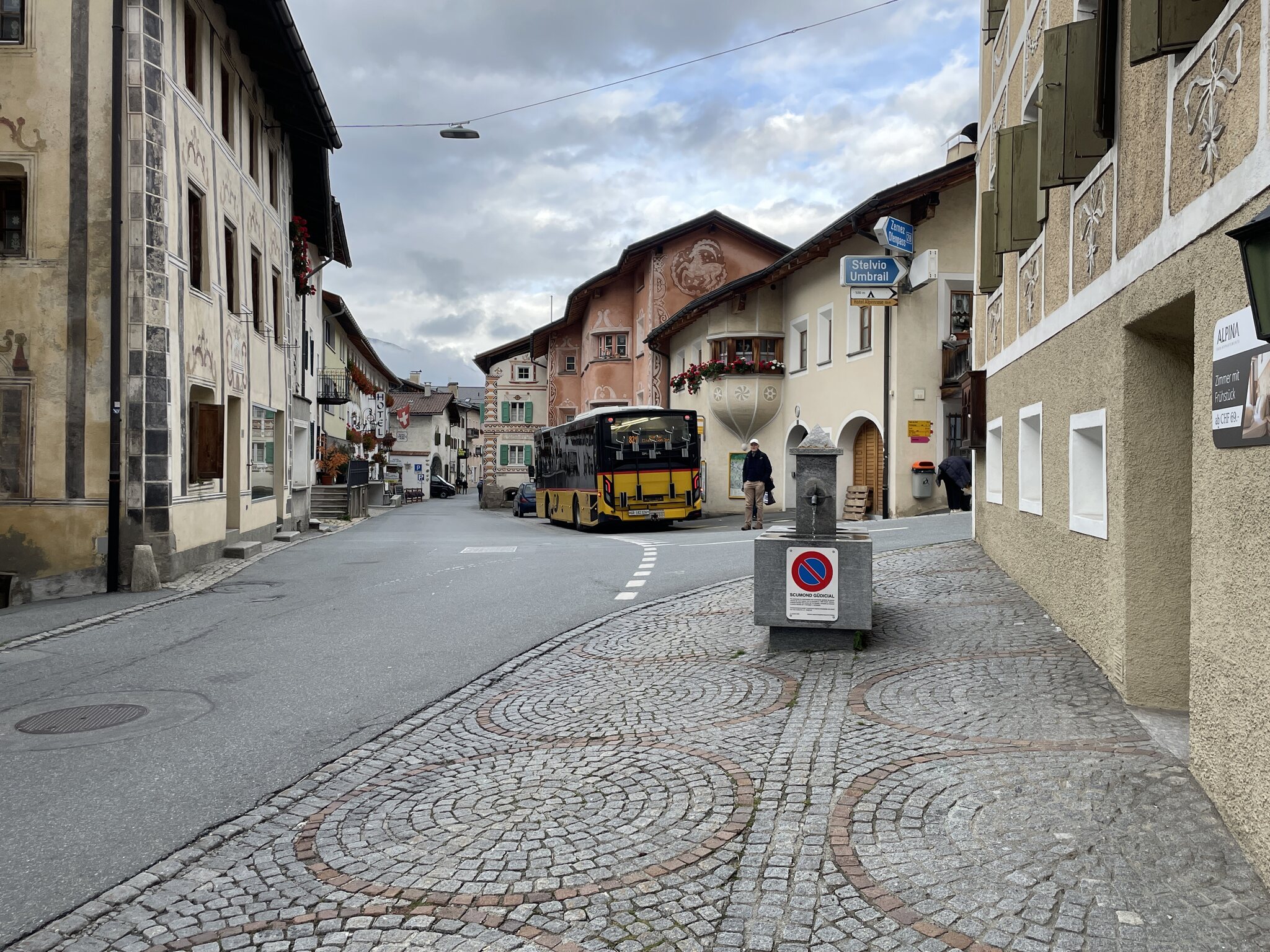 Die Abfahrt über den Umbrail ist landschaftlich sehr schön und die Strasse ebenfalls sehenswert, wenn auch jene auf der italienischen Seite meinem Empfinden nach eindrücklicher ist. Fürs Auge finde ich die Schweizer Seite allerdings ansprechender. Blick auf Santa Maria: Ankunft in Santa Maria, wo wir einmal übernachten: Spaziergang durch das schöne Dorf: